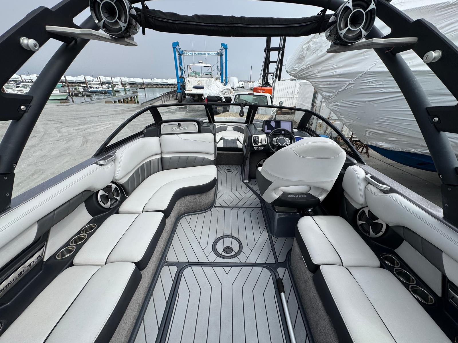 At the heart of the Wakesetter 25 LSV is a powerful single engine delivering an impressive 450 horsepower. This robust engine ensures exhilarating acceleration, smooth cruising, and the ability to create massive, customizable wakes for wakeboarding and surfing. The advanced hull design enhances stability and maneuverability, allowing you to carve through the water with precision and confidence. Whether you are towing skiers, wakeboarders, or simply enjoying a high-speed cruise, this Malibu boat for sale offers the performance you need to make every outing memorable.