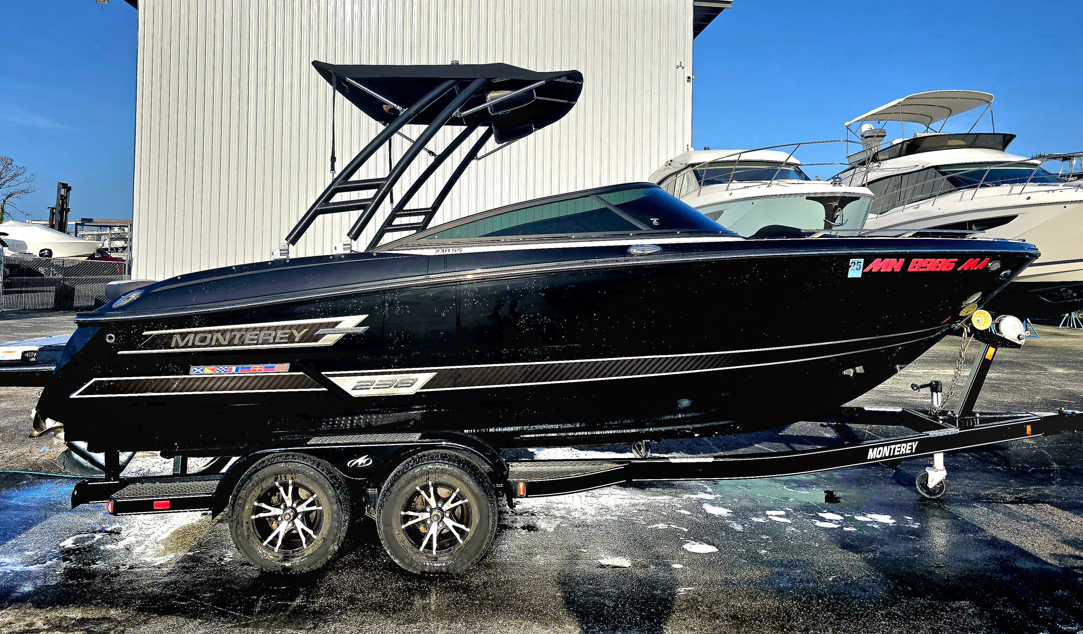 Owning a Monterey 238SS Dual Console means enjoying the best of both worlds – exhilarating performance and unmatched comfort. The dual console design offers protection from the elements, allowing you to extend your boating season and enjoy the water in a variety of conditions. The spacious layout encourages socializing, making it easy to host friends and family for a day of fun in the sun.The powerful 350-horsepower engine ensures that you have the speed and agility to explore new destinations, participate in water sports, or simply cruise at your own pace. The boat’s stability and smooth ride provide peace of mind, whether you are navigating calm waters or tackling more challenging conditions. With its combination of performance, style, and comfort, the Monterey 238SS is the ultimate choice for those who demand more from their boating experience.