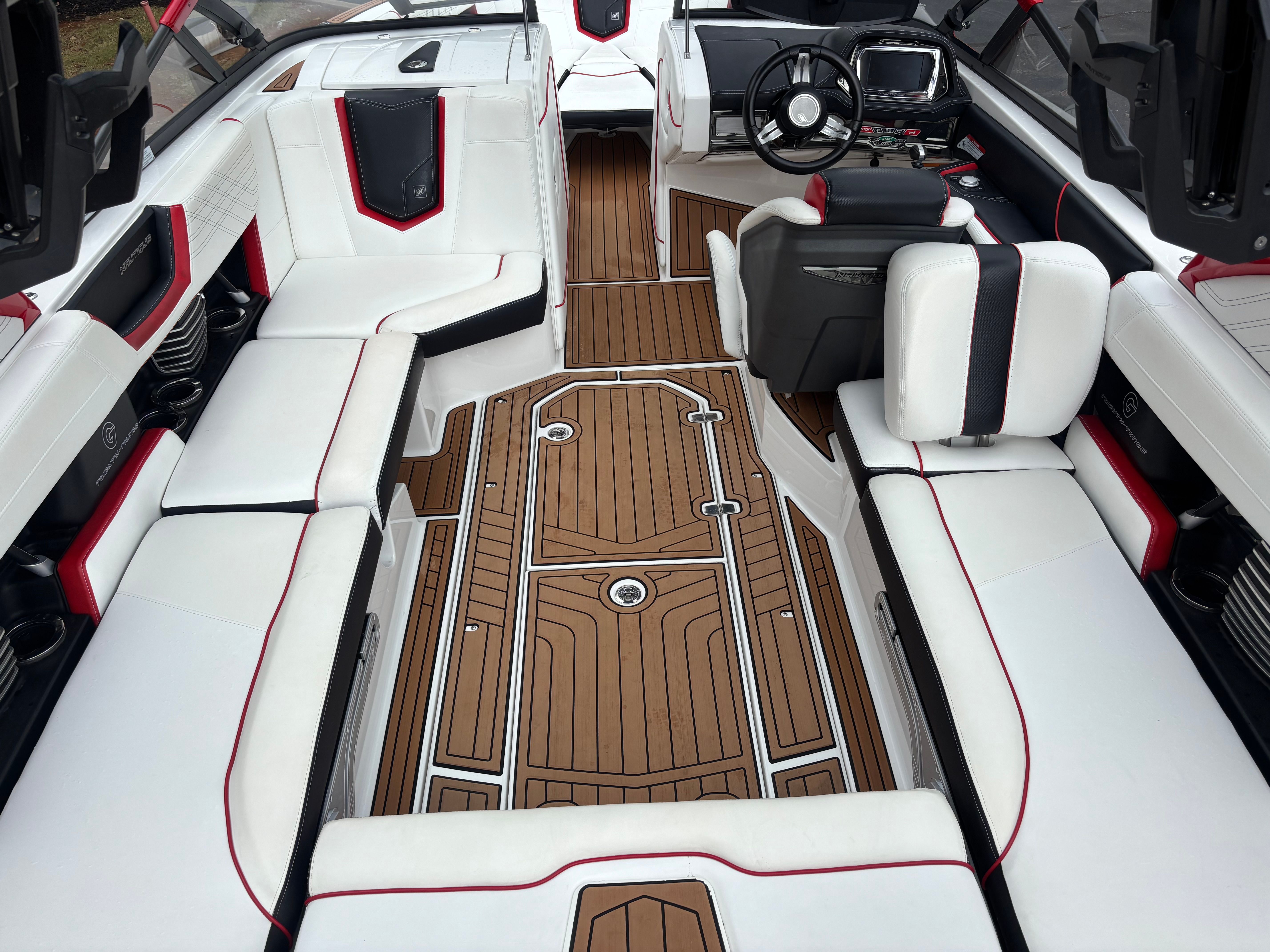 The Nautique G23 is packed with features that set it apart as a top-tier Ski & Wakeboard boat for sale. Its spacious 23-foot layout is designed to maximize comfort and functionality, offering plenty of room for passengers to relax, socialize, and gear up for their next ride. The ergonomic seating arrangement ensures that everyone on board has a great view of the action, while the intuitive helm puts the captain in complete control. The G23’s innovative hull design is engineered specifically for watersports, creating perfectly shaped wakes and waves that can be customized to suit riders of all skill levels. This makes it an ideal choice for families, friends, and enthusiasts who want to get the most out of every session on the water.