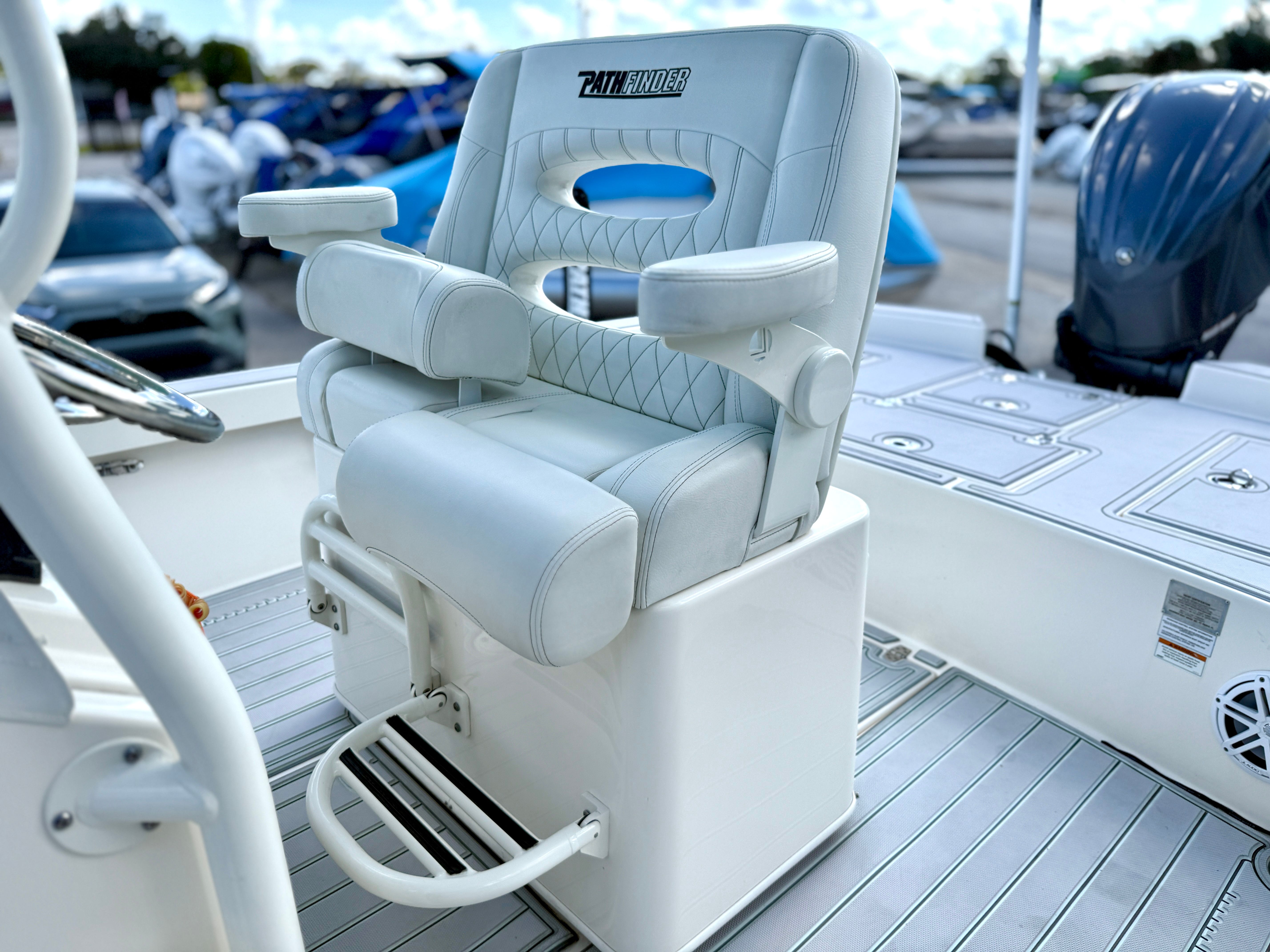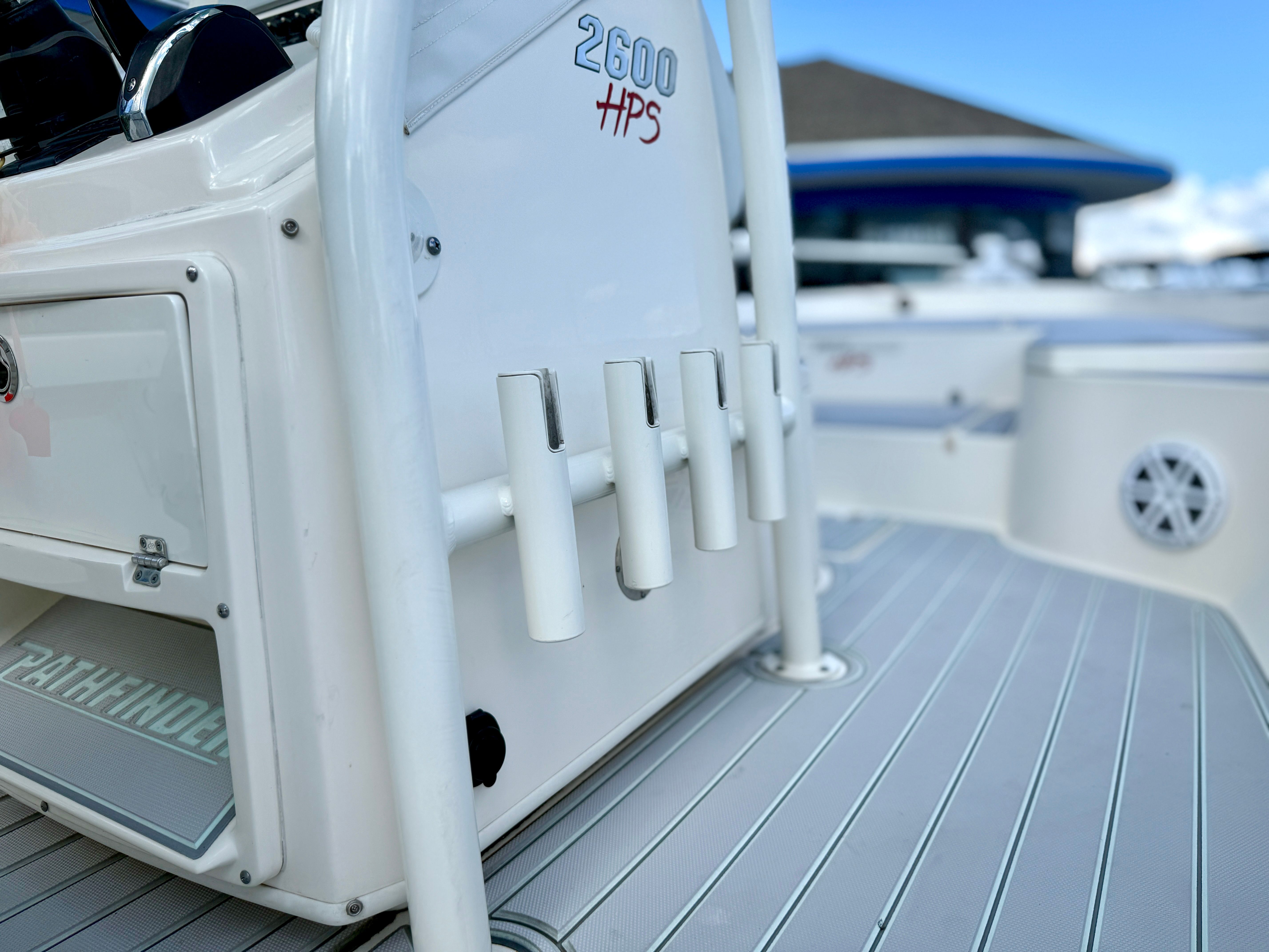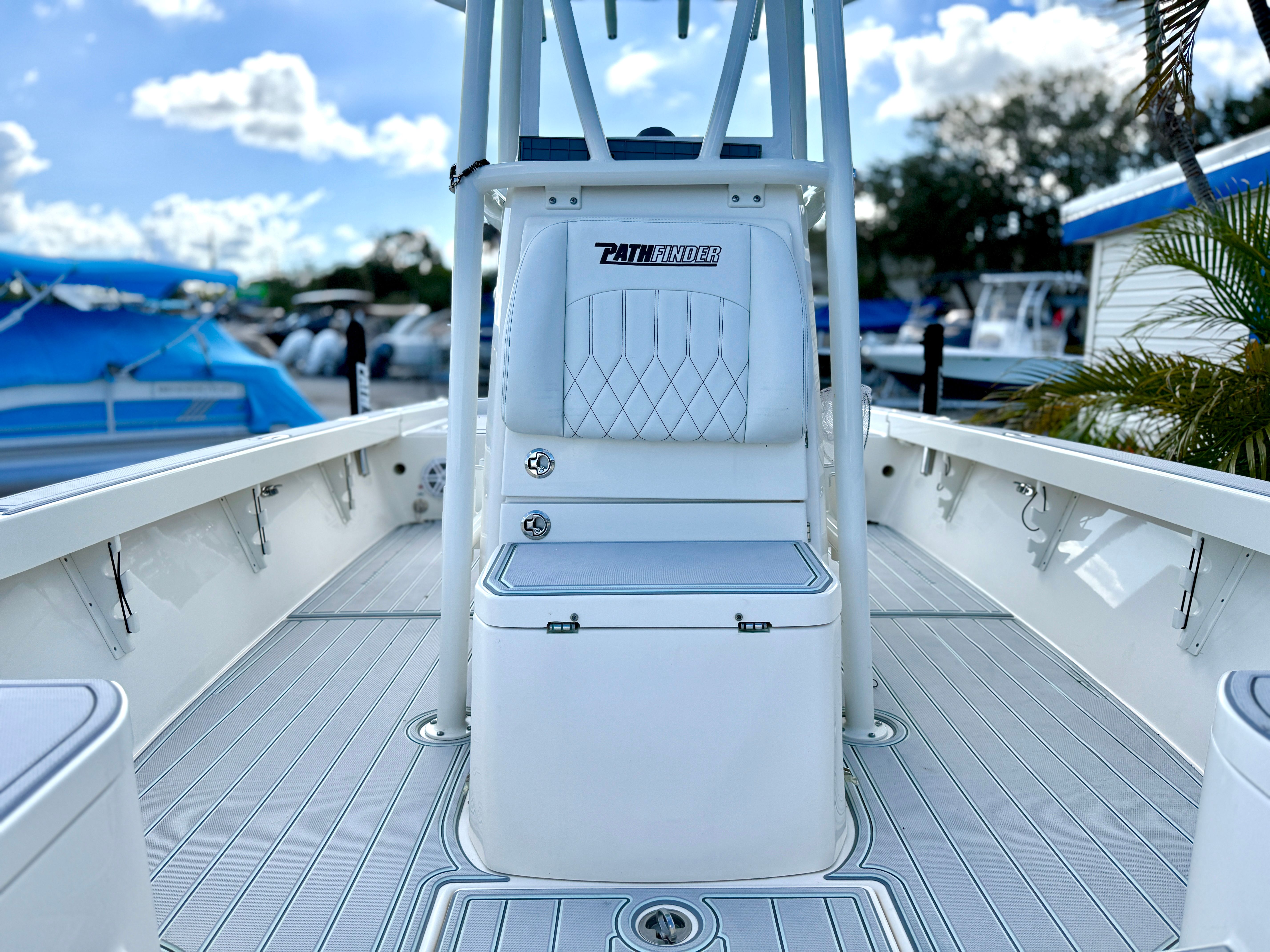The 2023 Pathfinder 2600 HPS Center Console is packed with features that cater to both fishing enthusiasts and leisure seekers. Its spacious deck layout allows for easy movement and unobstructed access to all areas of the boat, making it perfect for casting lines or socializing with guests. The Center Console design provides excellent visibility and control, while the ergonomic helm ensures comfortable navigation during long outings.Special features of the Pathfinder 2600 HPS include advanced hull construction for a smooth and stable ride, ample storage compartments for gear and personal items, and a thoughtfully designed seating arrangement that maximizes comfort for everyone on board. The boat’s layout is optimized for both fishing and relaxation, with plenty of room for coolers, tackle boxes, and other essentials. The durable materials and quality craftsmanship are evident throughout, reflecting Pathfinder’s commitment to building boats that stand the test of time.