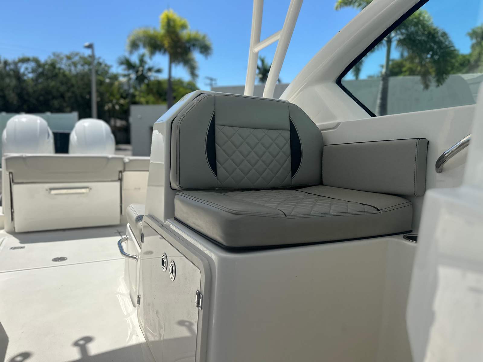 Turnkey and ready for delivery, this 2023 Pursuit DC 266 is the perfect dual console for family cruising, or fishing. Powered by reliable twin Yamaha 200’s with 255 hours, she offers smooth performance and confident handling in all conditions. Finished in a clean white hull with an elegant Platinum boot stripe, this DC 266 stands out with timeless style and classic Pursuit lines. The spacious layout includes plush bow seating, a convertible aft lounge, portside head compartment, and ample storage throughout—ideal for long days on the water.