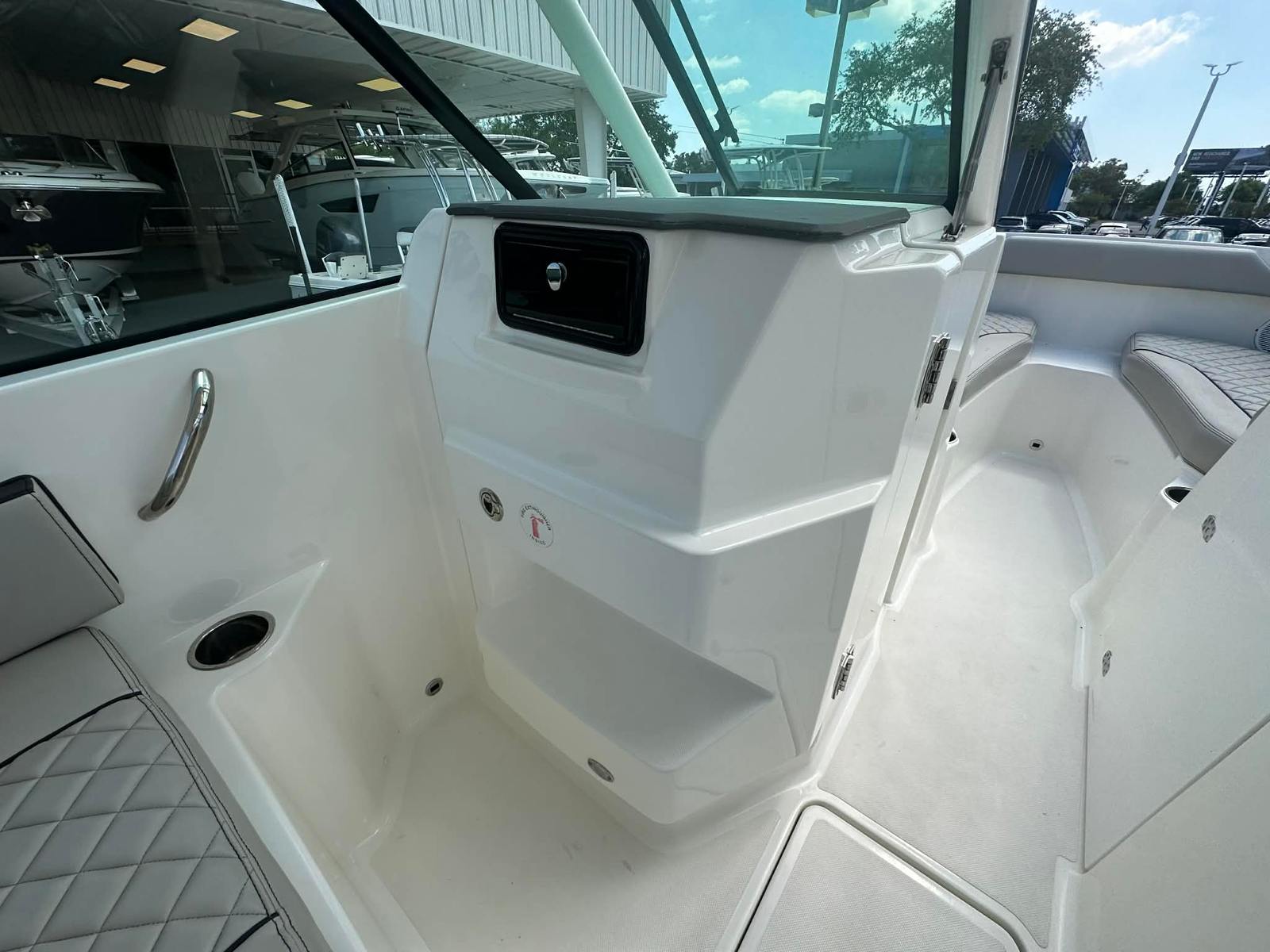 The Pursuit DC 266 is designed with versatility and comfort in mind, making it a standout option among Dual Console boats for sale. Its spacious layout includes ample seating in both the bow and cockpit areas, allowing guests to spread out and enjoy the ride. The dual console design offers protection from the elements, with a sturdy windshield and well-placed handrails for added safety. Storage is abundant throughout the boat, with dedicated compartments for gear, life jackets, and other essentials, keeping the deck clutter-free and organized.The helm is thoughtfully arranged, providing easy access to controls and gauges, ensuring a stress-free boating experience. The Pursuit DC 266 also features a convenient walk-through windshield, allowing seamless movement between the bow and cockpit areas. This design not only enhances safety but also encourages social interaction, making it ideal for entertaining guests or spending quality time with family.