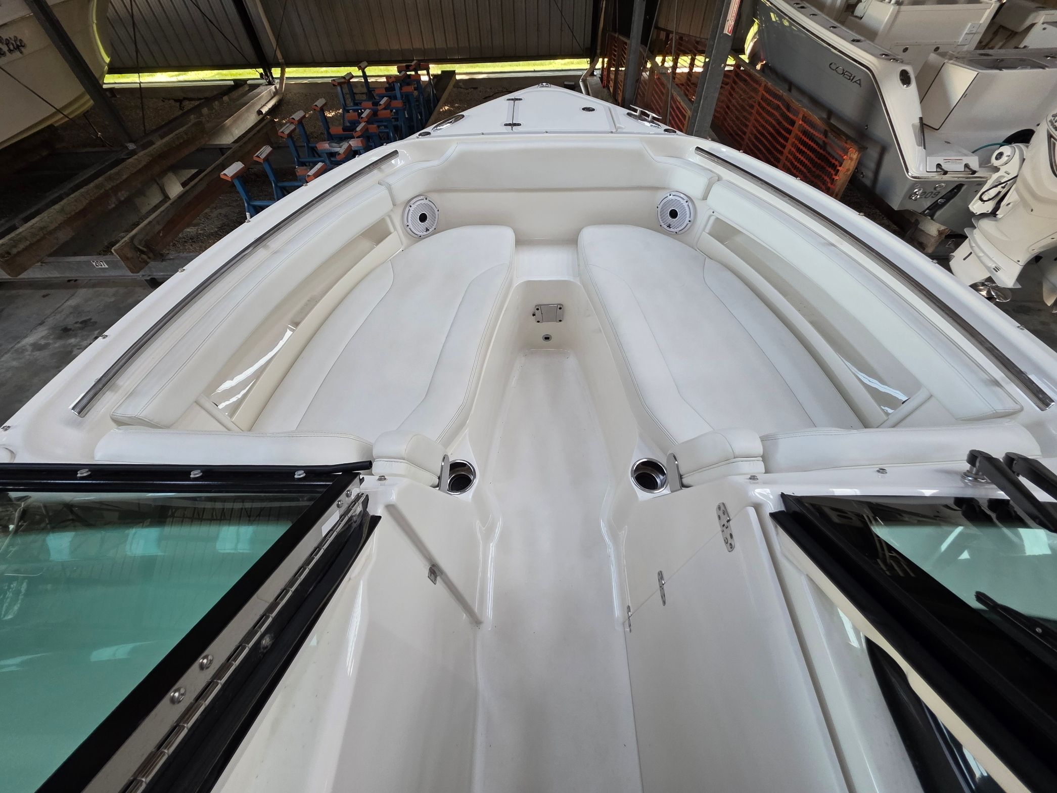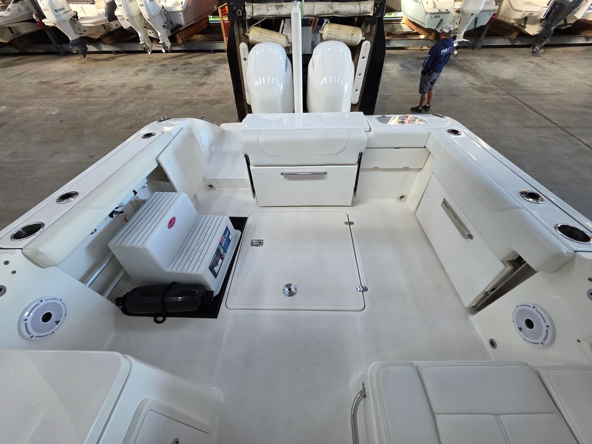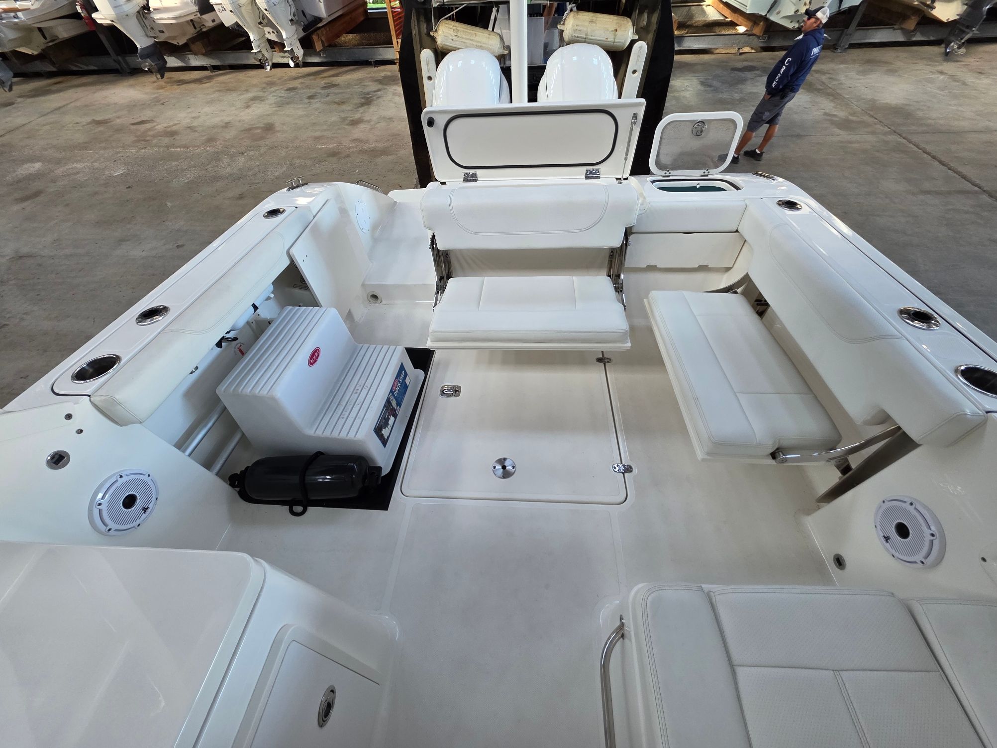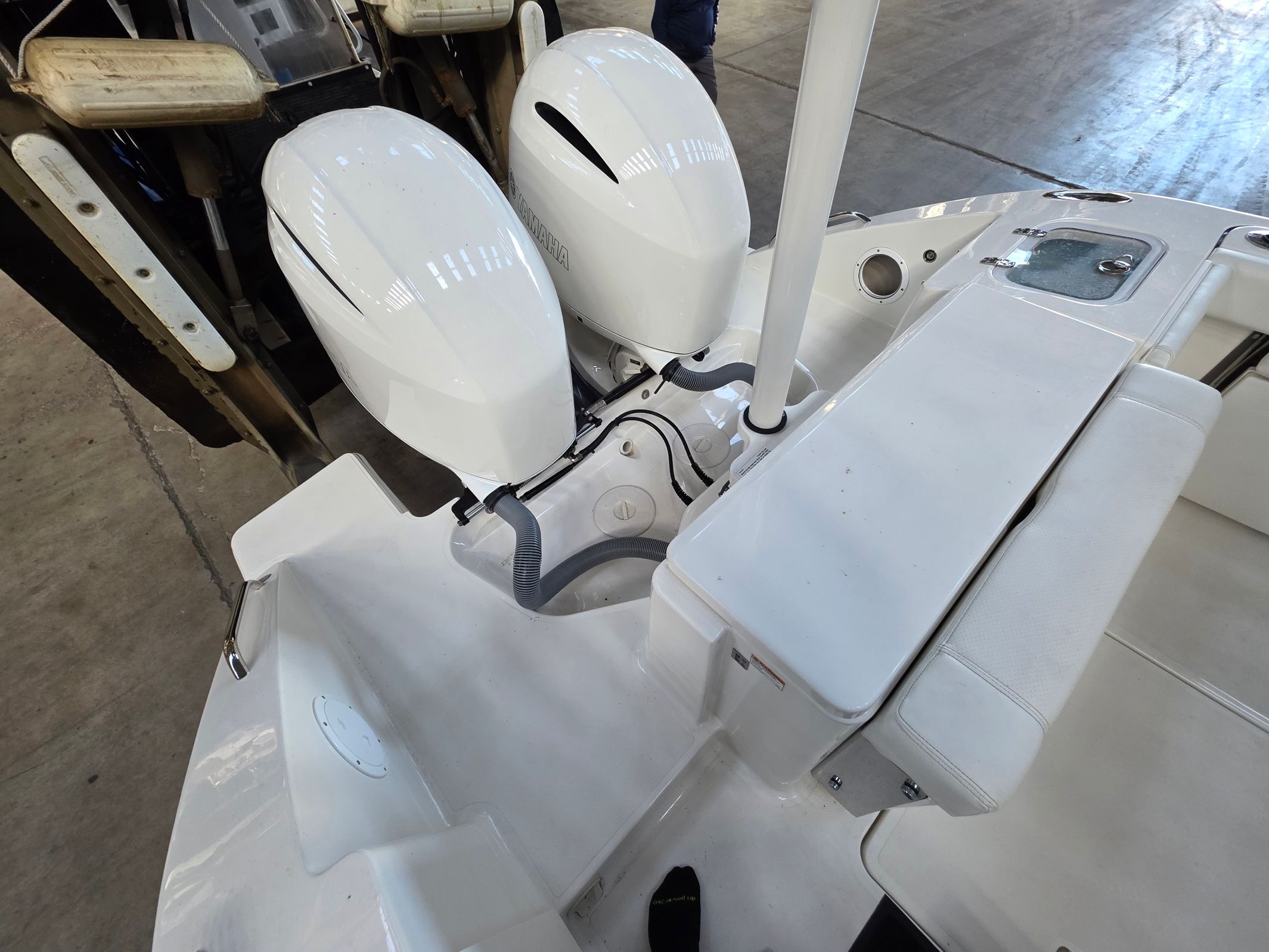 The Pursuit DC 266 Dual Console boat is thoughtfully designed to maximize comfort, convenience, and versatility. Its spacious deck layout allows for easy movement and socializing, while the dual console configuration provides protection from the elements and flexible seating options. The boat’s generous length of 27.33 feet ensures plenty of room for passengers, gear, and recreational equipment. Pursuit’s attention to detail is evident in every aspect of the DC 266, from the quality of the materials to the ergonomic design of the helm and seating areas. With two powerful engines and a robust hull, this boat is ready to tackle a variety of activities, from fishing and water sports to leisurely cruises and entertaining guests.