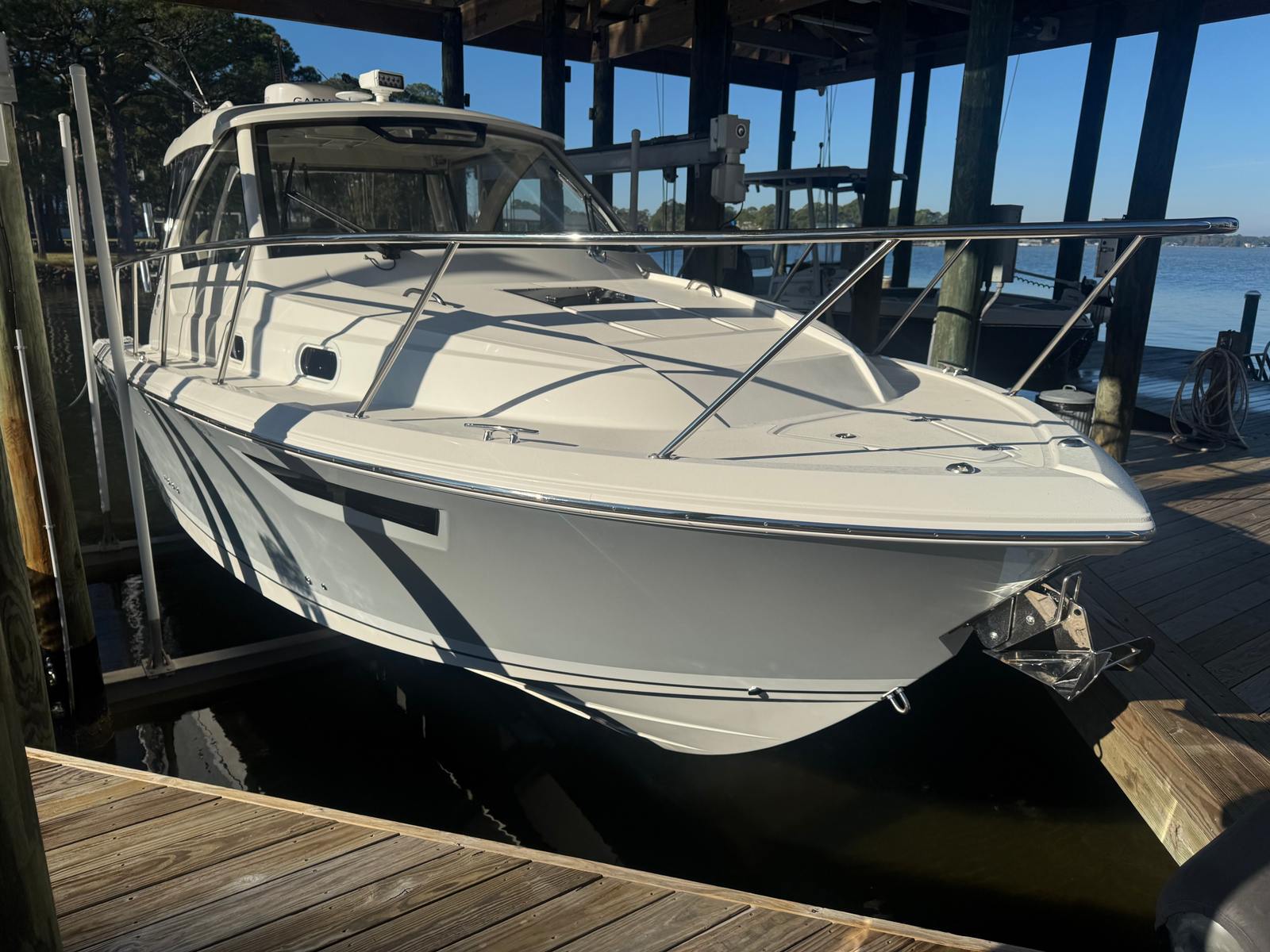 The Pursuit OS 325 Cruiser shines in a variety of scenarios, making it a versatile choice for boaters of all interests. For families, it’s the perfect platform for fun-filled outings, offering plenty of space for kids to play and adults to relax. Fishing enthusiasts will appreciate the boat’s stability and performance, making it easy to reach prime fishing spots and enjoy a productive day on the water. If you’re seeking a luxury getaway, the OS 325’s elegant design and comfortable amenities provide a private retreat where you can unwind and escape the everyday. Whether you’re hosting a sunset cruise, exploring hidden coves, or embarking on a multi-day adventure, this Pursuit boat for sale adapts to your needs and exceeds your expectations.