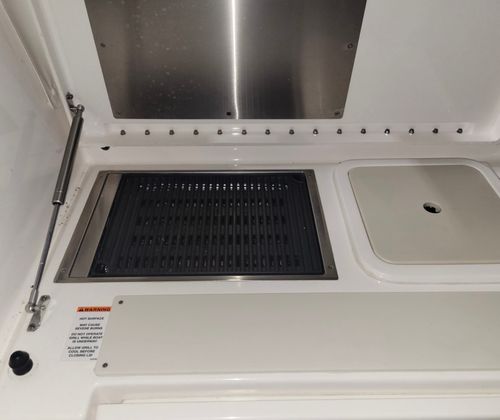 Step aboard the Pursuit 355 OS and you’ll immediately notice the attention to detail in its features and specifications. The aft bench seat provides a comfortable spot for guests to relax and take in the views, while the aft drop curtain offers protection from the elements, ensuring your outings remain enjoyable regardless of the weather. The cockpit is a true highlight, featuring a Sea Deck carpet that adds both style and comfort underfoot. The cockpit cover keeps your boat protected when not in use, preserving its pristine condition. For those who love to entertain, the cockpit grill is perfect for preparing delicious meals on the water, and the cockpit wet bar makes serving drinks a breeze. Ample cockpit storage ensures you have plenty of space to stow gear and supplies, keeping the deck clutter-free. The elegant cabinetry adds a touch of luxury to the interior, providing both functionality and aesthetic appeal. With a battery charger included, you can rest assured that your electronics and systems will remain powered throughout your adventures.