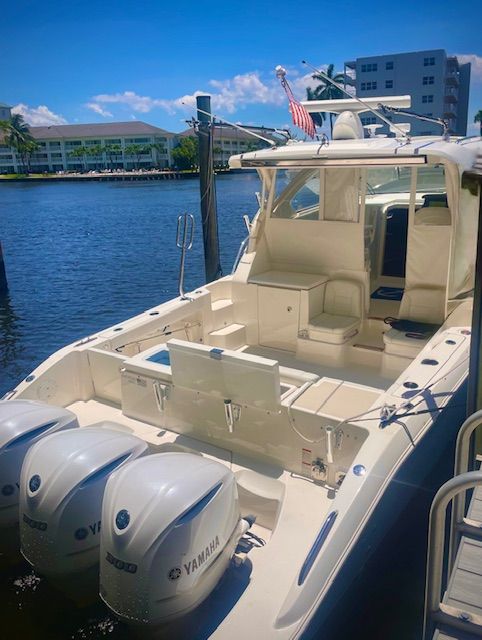 The Pursuit OS 355 is loaded with features that enhance both functionality and comfort. Its nearly 38-foot length provides a spacious deck and cabin area, allowing for easy movement and plenty of seating for guests. The triple-engine setup not only boosts performance but also offers redundancy and peace of mind during longer trips. The modern helm is designed for intuitive control, making navigation effortless for captains of all experience levels. Every detail of the Pursuit OS 355 is crafted to maximize your enjoyment on the water, from the high-quality materials used throughout to the thoughtful layout that encourages relaxation and socializing.