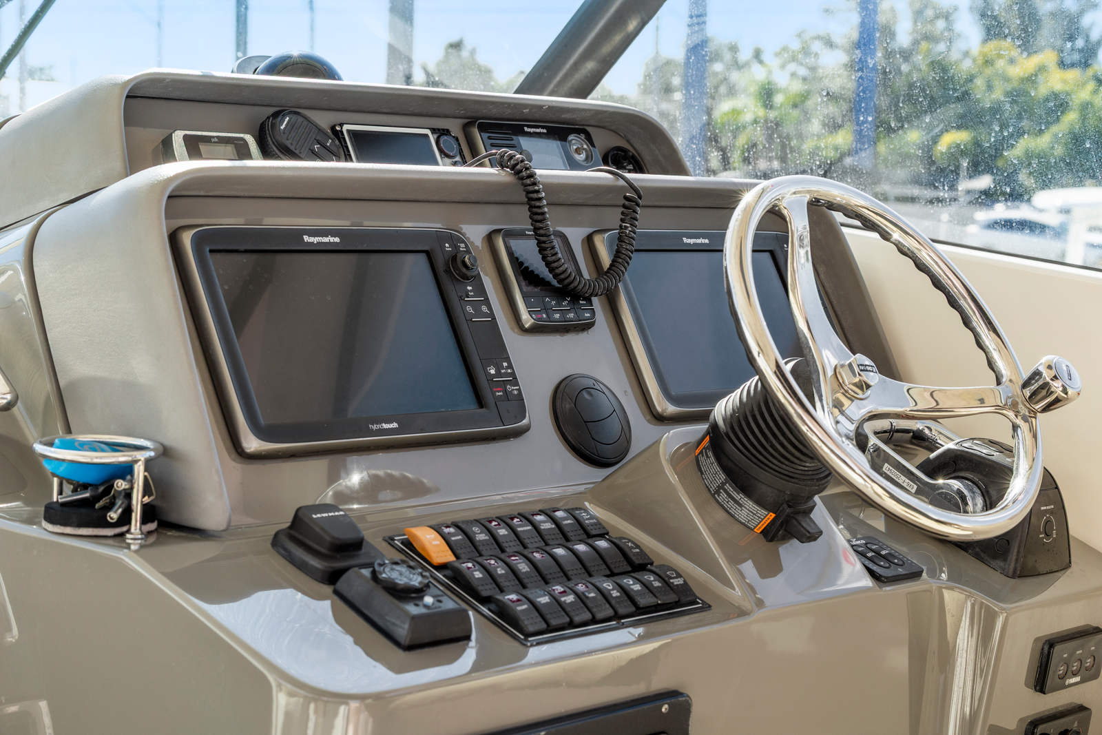 Powering the Pursuit OS 385 are three high-performance engines, delivering a combined 900 horsepower. With only 1,100 engine hours, these engines have plenty of life left, ensuring reliable and efficient operation for years to come. The triple-engine setup provides outstanding acceleration, impressive top speeds, and superior handling in a variety of sea conditions. Whether you’re heading out for a long-range fishing expedition or cruising along the coastline, this Pursuit boat for sale offers the muscle and agility needed for offshore adventures.