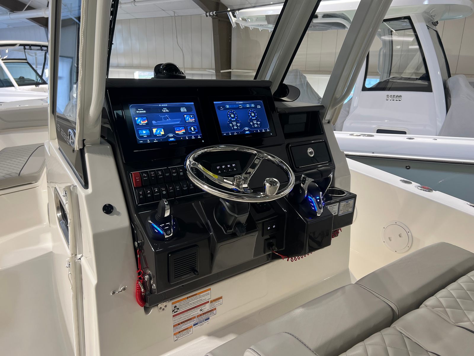 The Pursuit S 288 Center Console is packed with features that elevate your boating experience. Its spacious deck layout is designed for both relaxation and functionality, offering plenty of room for fishing, sunbathing, or socializing. The helm station is ergonomically arranged, providing easy access to controls and excellent visibility for the captain. The high-quality construction and attention to detail are evident throughout, from the sturdy hull to the premium finishes. Special features unique to this model enhance both safety and enjoyment, ensuring that every outing is memorable. With a length of 30 feet, this Pursuit boat for sale offers the perfect balance of size and manageability, making it suitable for both seasoned boaters and newcomers alike.