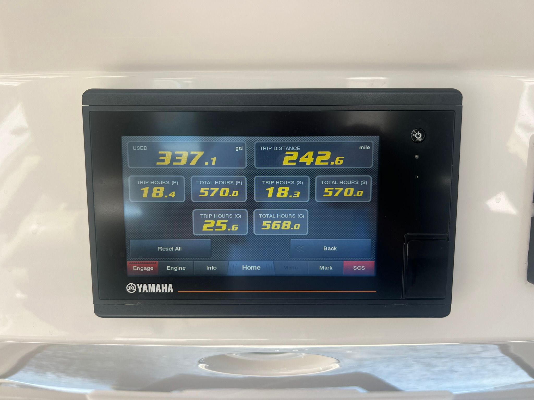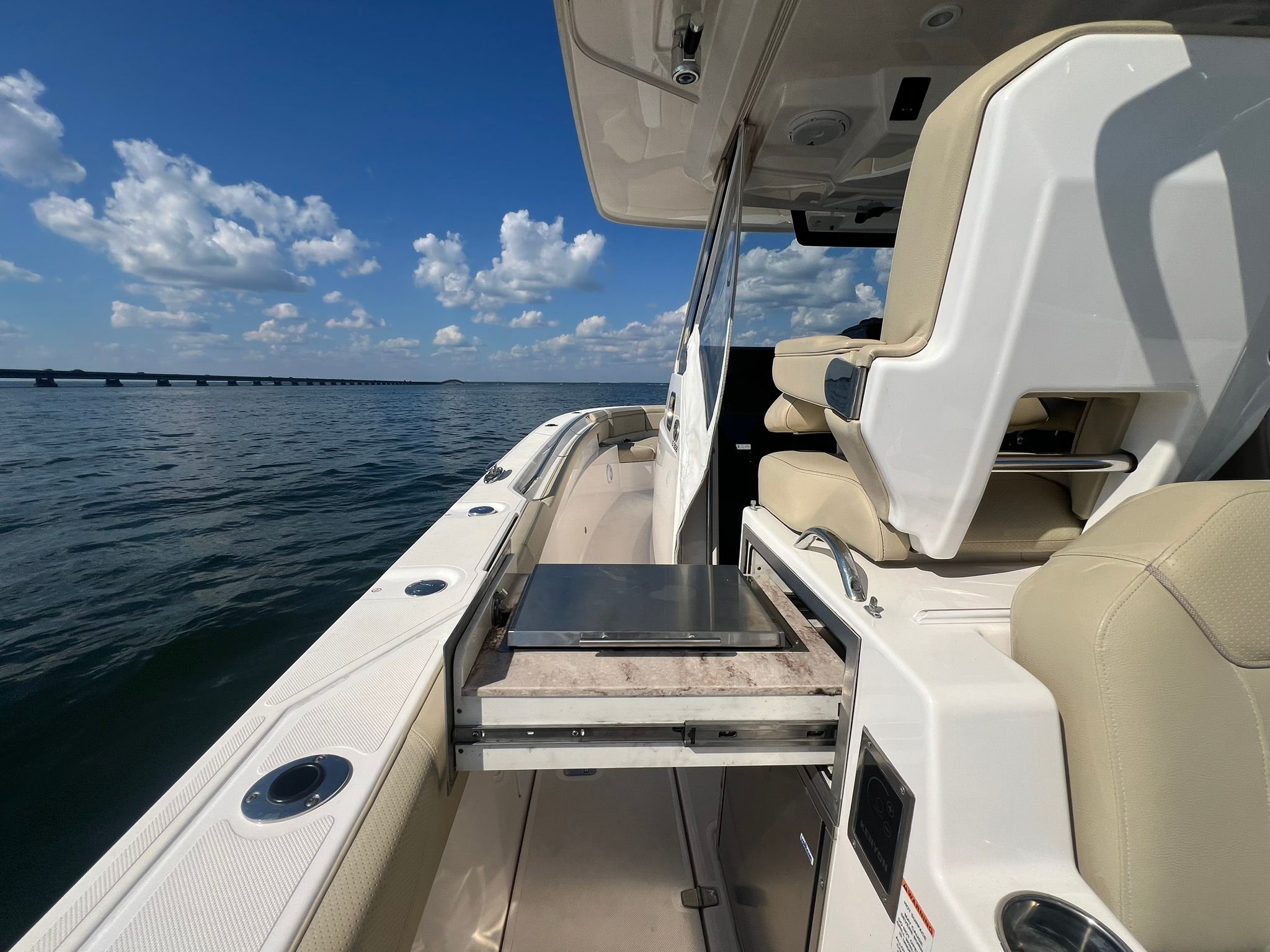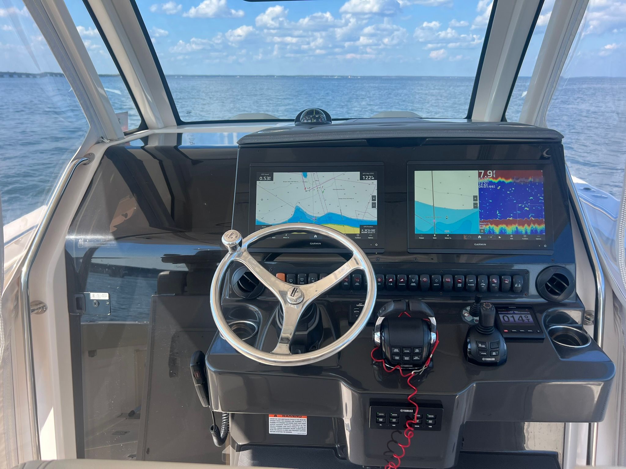 Powering the Pursuit S 368 are three reliable engines, delivering a combined 600 horsepower. With only 570 engine hours, these motors have plenty of life left, ensuring you can enjoy many more seasons of boating excitement. This triple-engine setup provides impressive acceleration, smooth handling, and the ability to reach your favorite destinations quickly and efficiently. The Pursuit S 368’s performance is ideal for those who value speed, agility, and responsive control, making it a standout choice among Center Console boats for sale. Whether you’re navigating tight marinas or venturing into open waters, the S 368’s power and precision make every journey enjoyable.