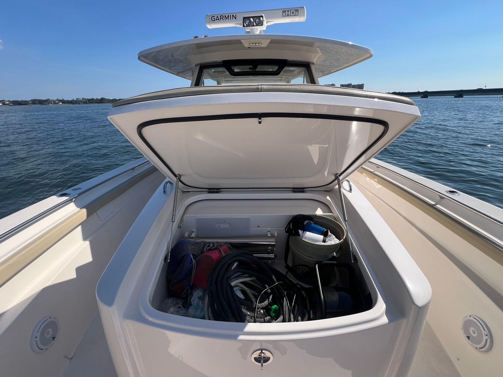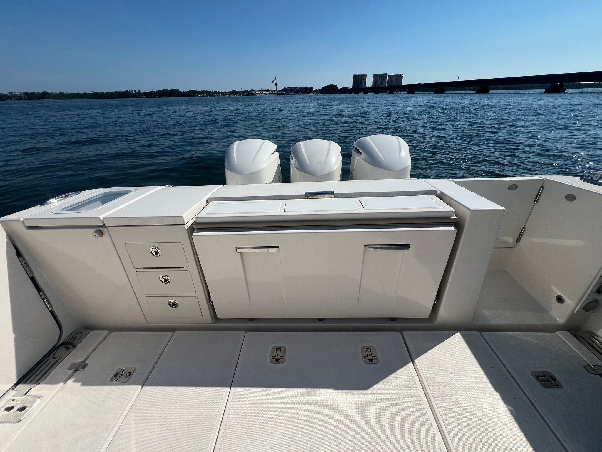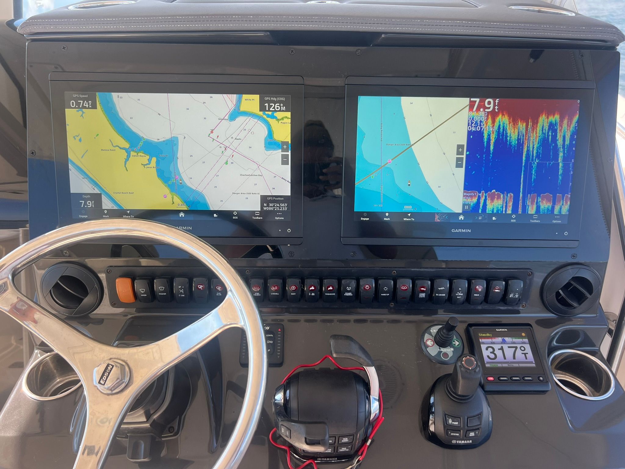 Powering the Pursuit S 368 are three reliable engines, delivering a combined 600 horsepower. With only 570 engine hours, these motors have plenty of life left, ensuring you can enjoy many more seasons of boating excitement. This triple-engine setup provides impressive acceleration, smooth handling, and the ability to reach your favorite destinations quickly and efficiently. The Pursuit S 368’s performance is ideal for those who value speed, agility, and responsive control, making it a standout choice among Center Console boats for sale. Whether you’re navigating tight marinas or venturing into open waters, the S 368’s power and precision make every journey enjoyable.