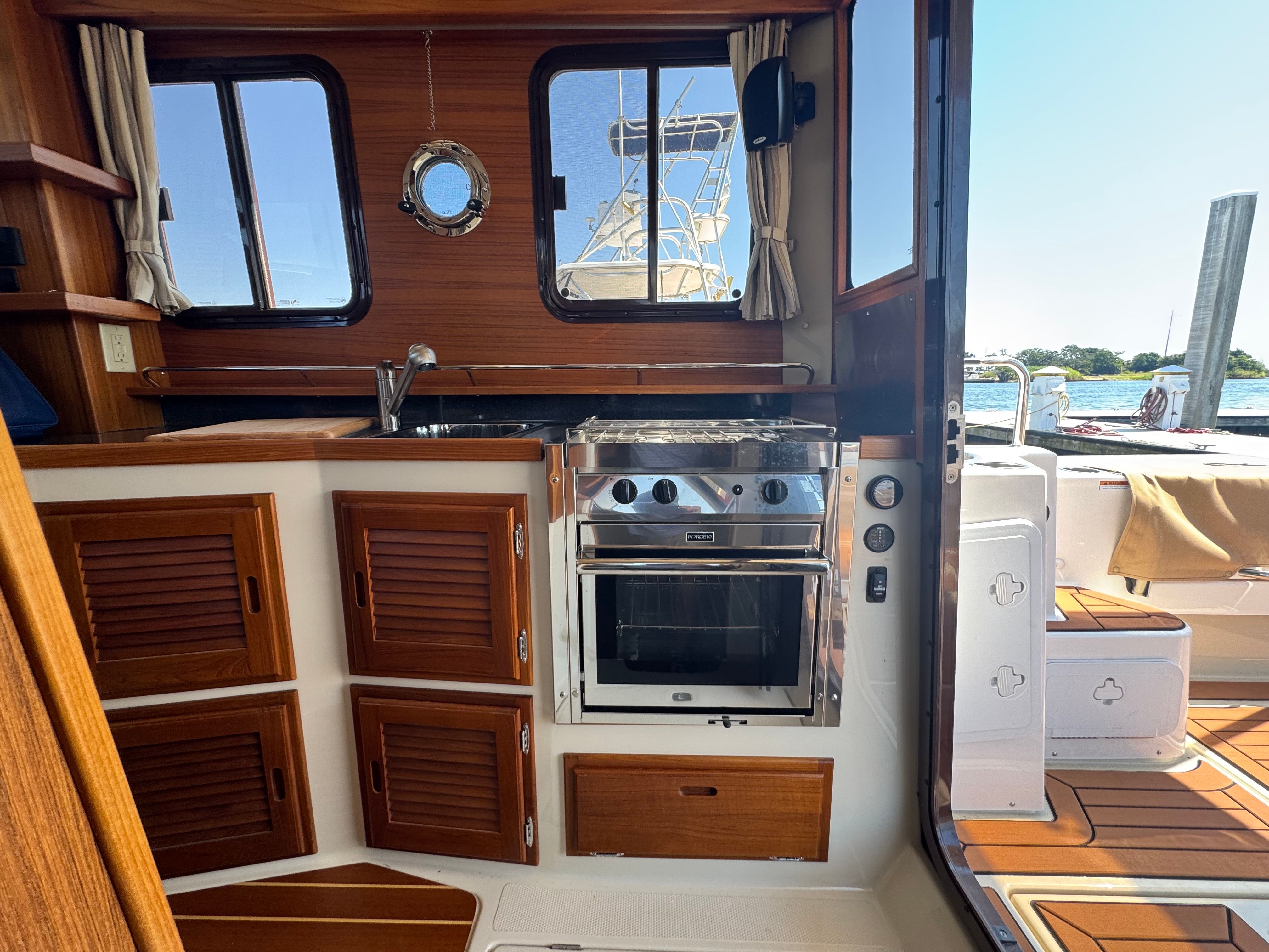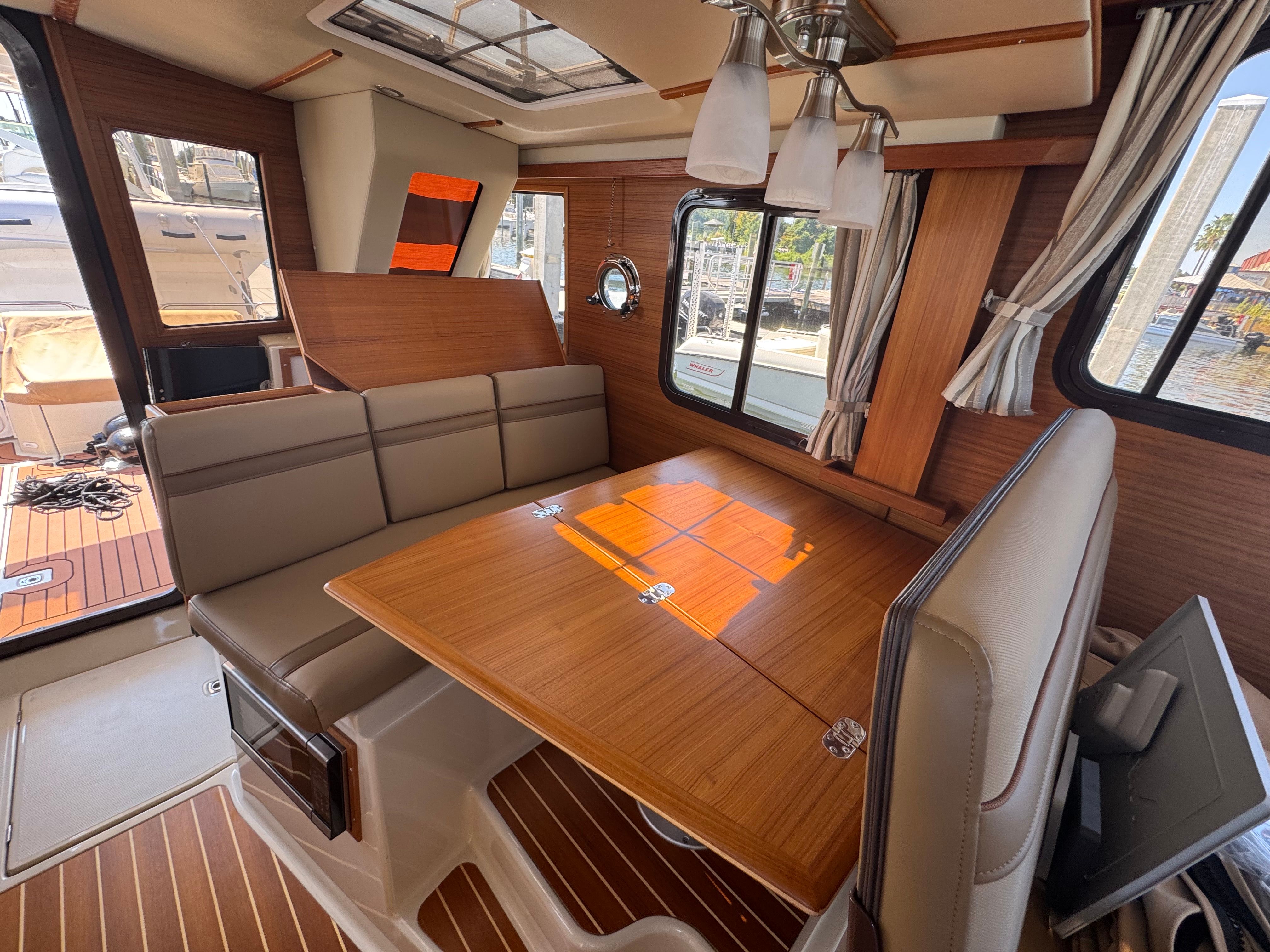 The Ranger Tugs R-31 CB is designed with practicality in mind, making ownership both enjoyable and convenient. Its manageable length and responsive handling make docking and maneuvering straightforward, even for those new to boating. The triple-engine setup provides added confidence when navigating busy marinas or tight waterways. Storage is ample throughout the boat, allowing you to bring along all the essentials for a day on the water or an extended cruise. The efficient engine configuration helps optimize fuel consumption, ensuring you can spend more time enjoying your adventures and less time refueling. The flybridge layout also adds versatility, offering additional space for relaxation or entertaining guests.