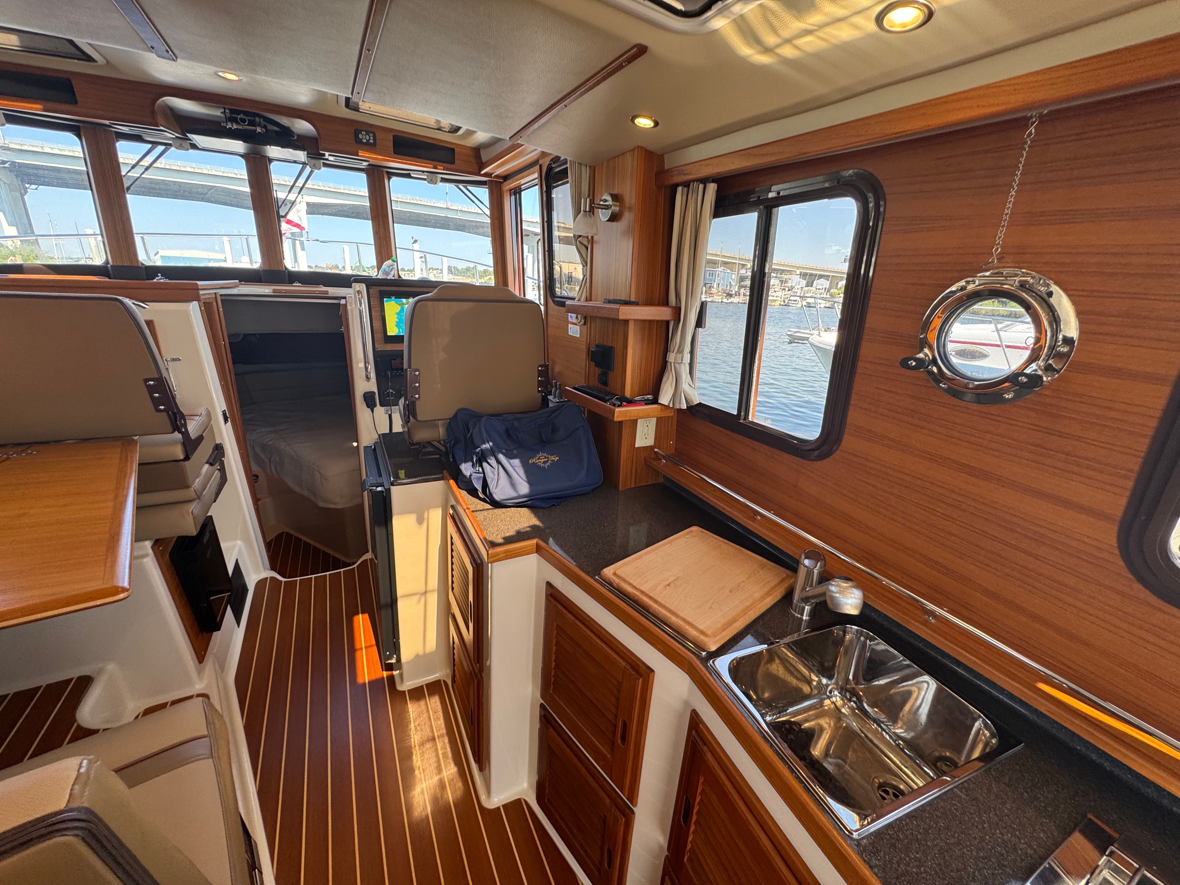 The Ranger Tugs R-31 CB flybridge boat is packed with features that cater to both leisure and practicality. Its spacious flybridge offers a comfortable seating area and a commanding view, perfect for socializing or simply enjoying the scenery. The boat’s 31-foot length ensures plenty of room for guests, gear, and amenities, making it an ideal choice for entertaining or relaxing on the water. With its modern design and attention to detail, the R-31 CB stands out among Ranger Tugs boats for sale. The flybridge layout not only enhances visibility but also adds a touch of luxury to your boating experience. The vessel’s overall condition and low engine hours further contribute to its appeal, providing peace of mind and reliability for future adventures.
