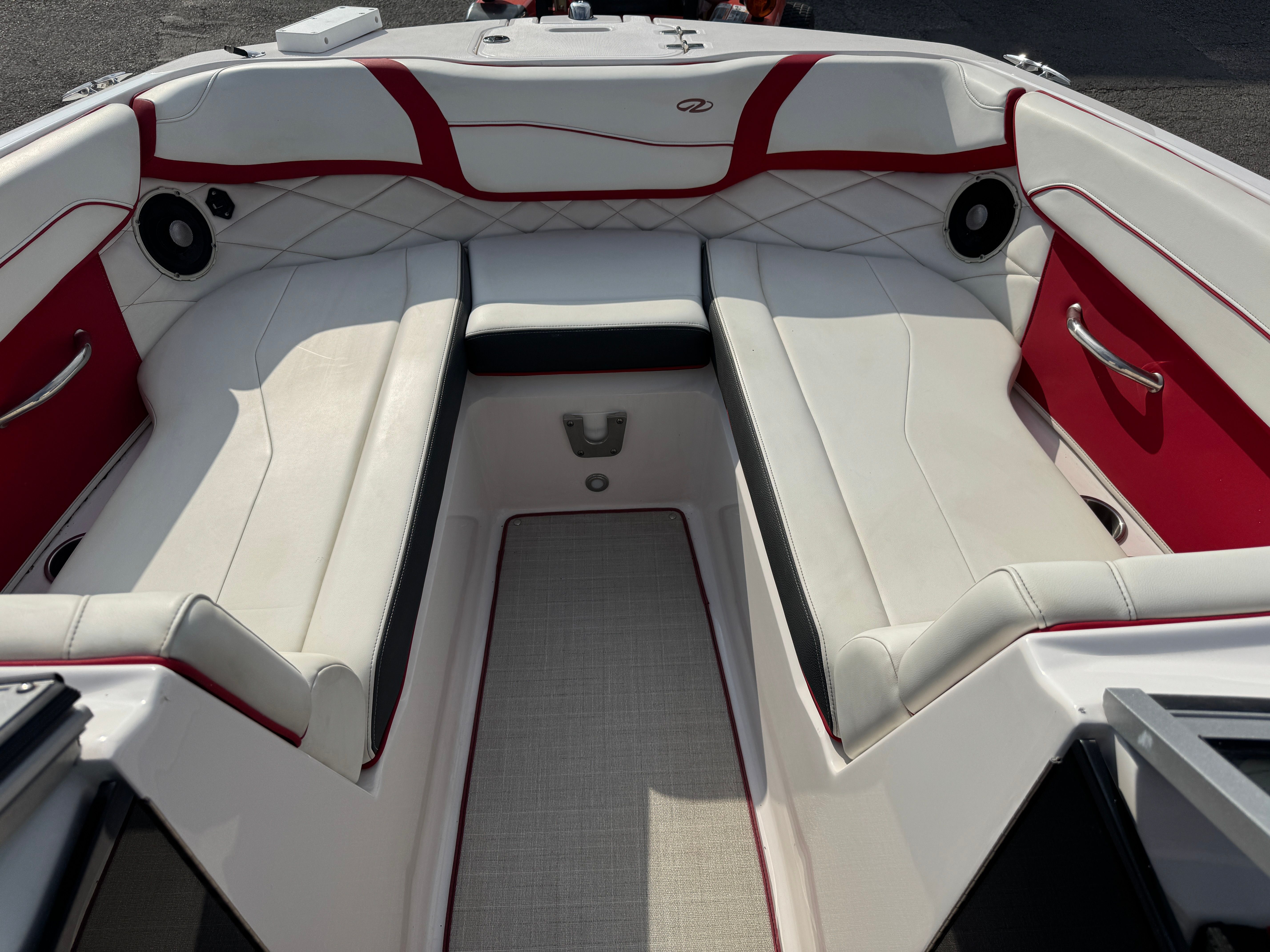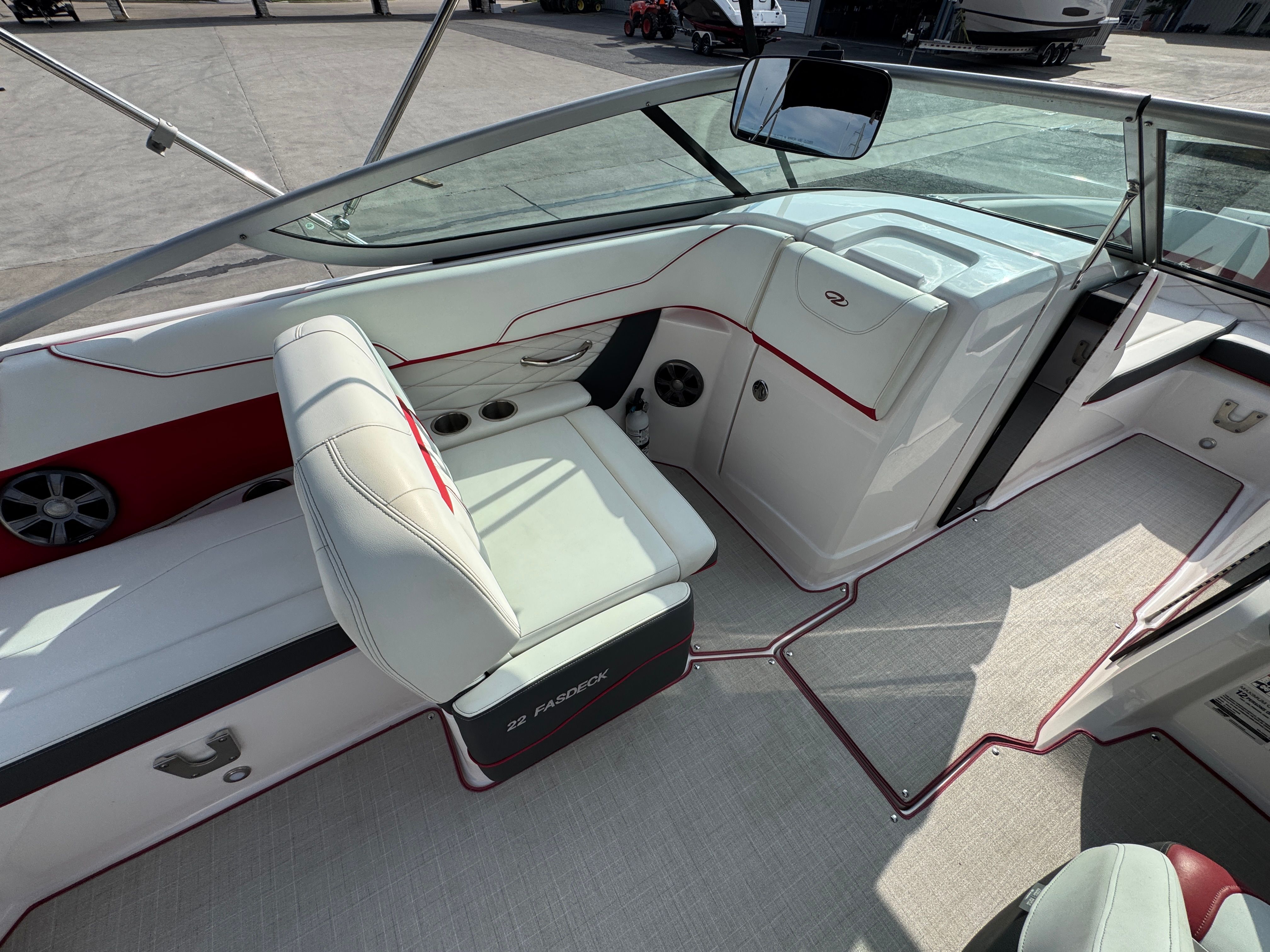 At the heart of the Regal 22 Fasdeck is a powerful single engine delivering an impressive 280 horsepower. This robust engine ensures exhilarating acceleration and smooth cruising, whether you’re gliding across calm lakes or tackling choppier waters. With only 59 engine hours, the performance of this Bowrider remains fresh and reliable, promising many more adventures ahead. The 22 Fasdeck’s hull design is engineered for stability and agility, making it a joy to pilot for both seasoned boaters and those new to the water. Whether you’re towing water toys, racing across the bay, or enjoying a leisurely cruise, the performance capabilities of this Regal boat for sale will not disappoint.