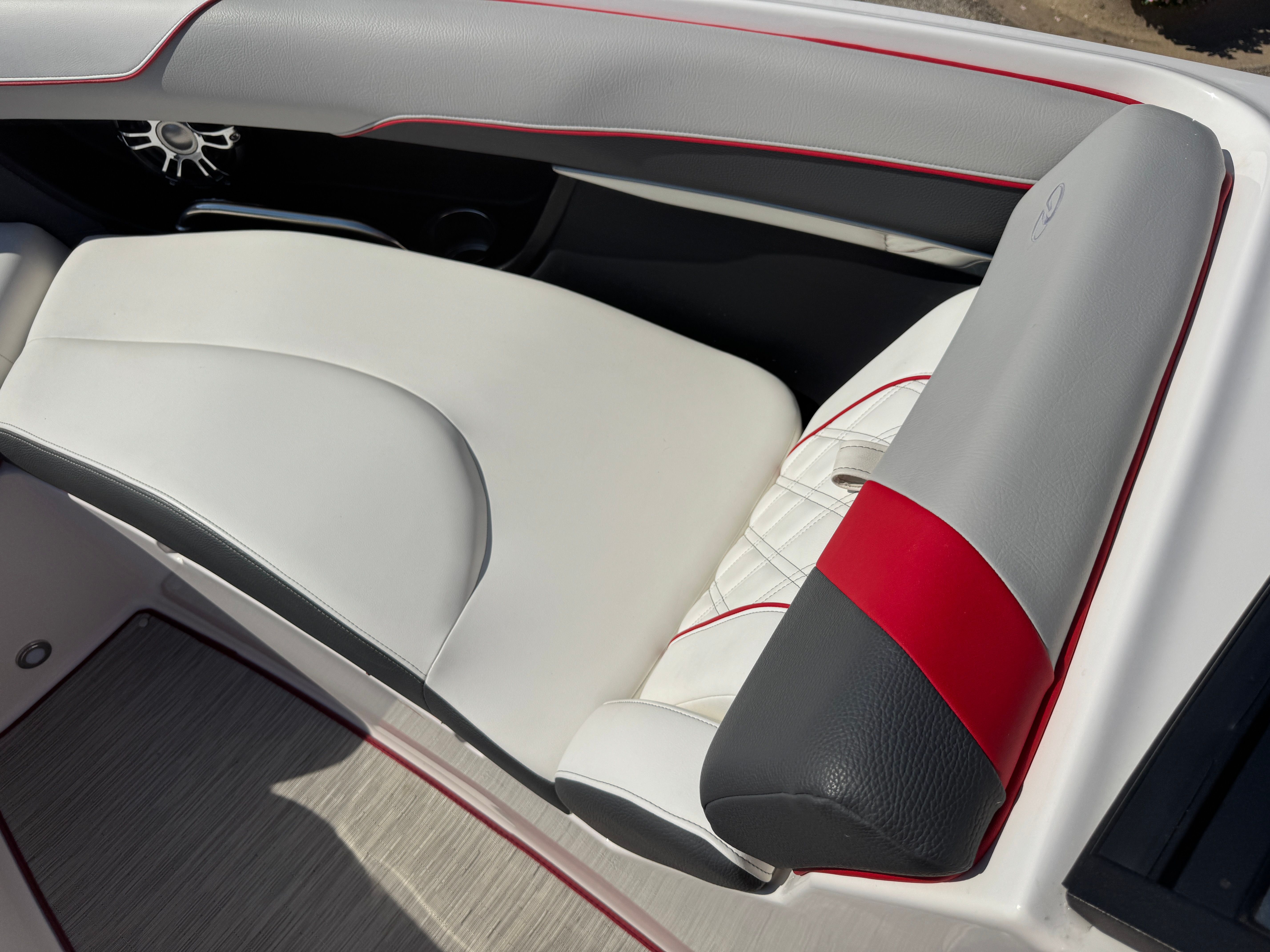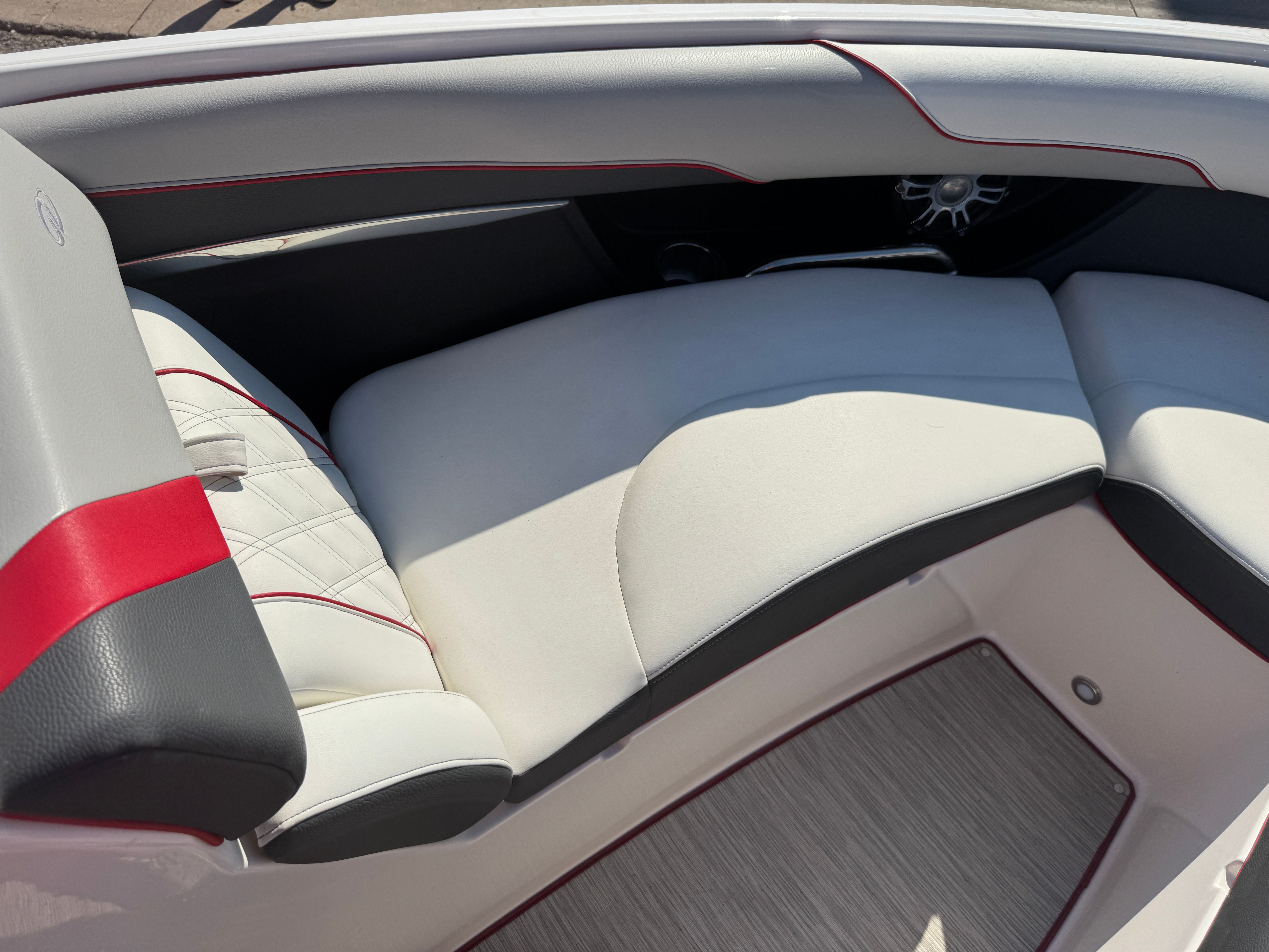 At the heart of the Regal 2300 RX is a single, robust engine delivering an impressive 300 horsepower. This powerful setup ensures exhilarating acceleration and smooth cruising, whether you’re towing water toys, slicing through choppy waves, or simply enjoying a leisurely ride. The engine’s low hours are a testament to its longevity and reliability, providing peace of mind and plenty of adventures ahead. The performance of this bowrider boat for sale is further enhanced by Regal’s innovative hull design, which delivers a stable, responsive ride and excellent fuel efficiency.