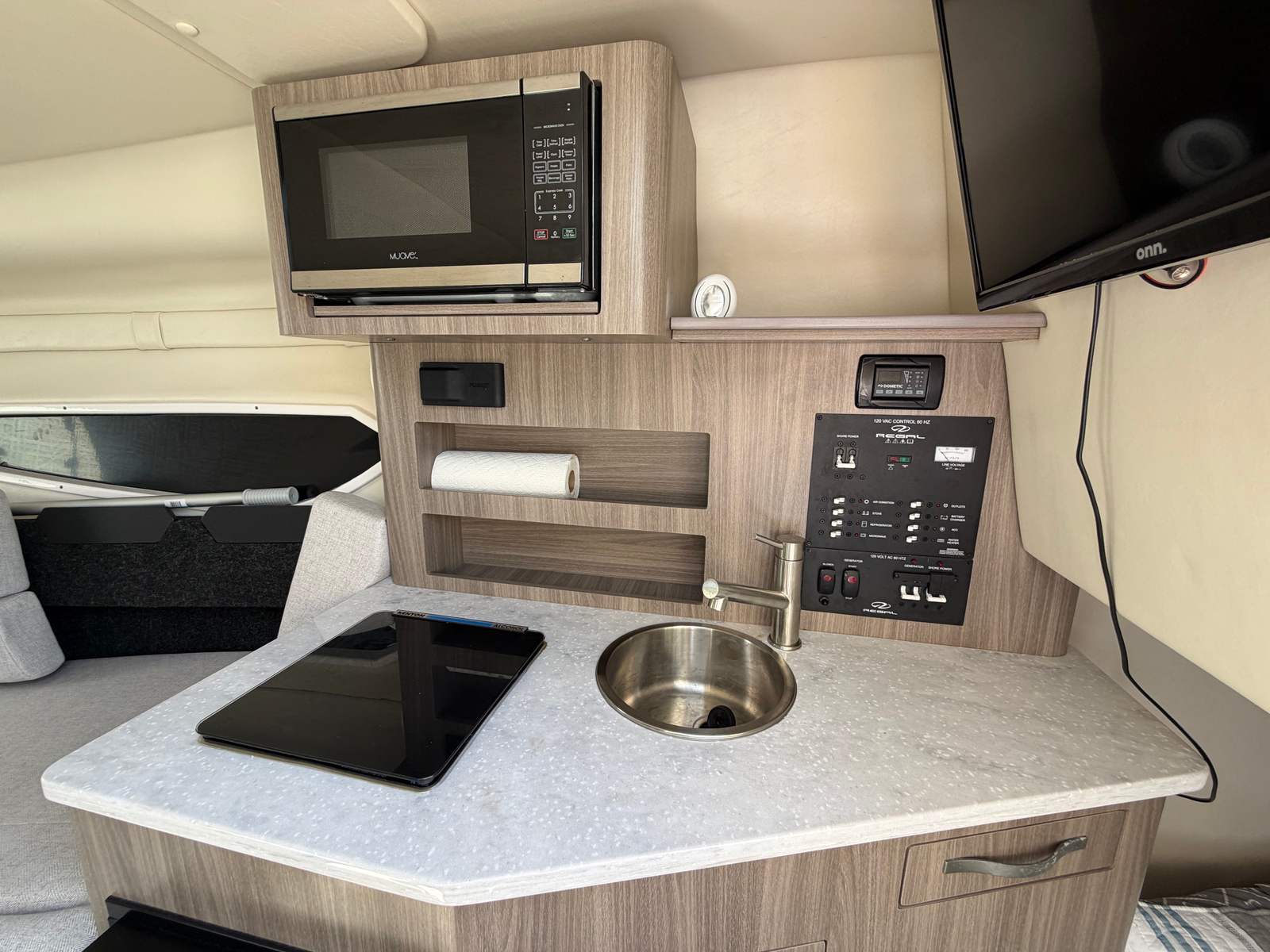 The spacious cockpit is perfect for entertaining, while the well-appointed and tasteful cabin includes a galley, head, and sleeping accommodations for overnight trips. Premium finishes, smart storage, and Regal’s signature attention to detail make this boat a standout. Ideal for weekend getaways or day cruising, she's ready to make memories with a new home.