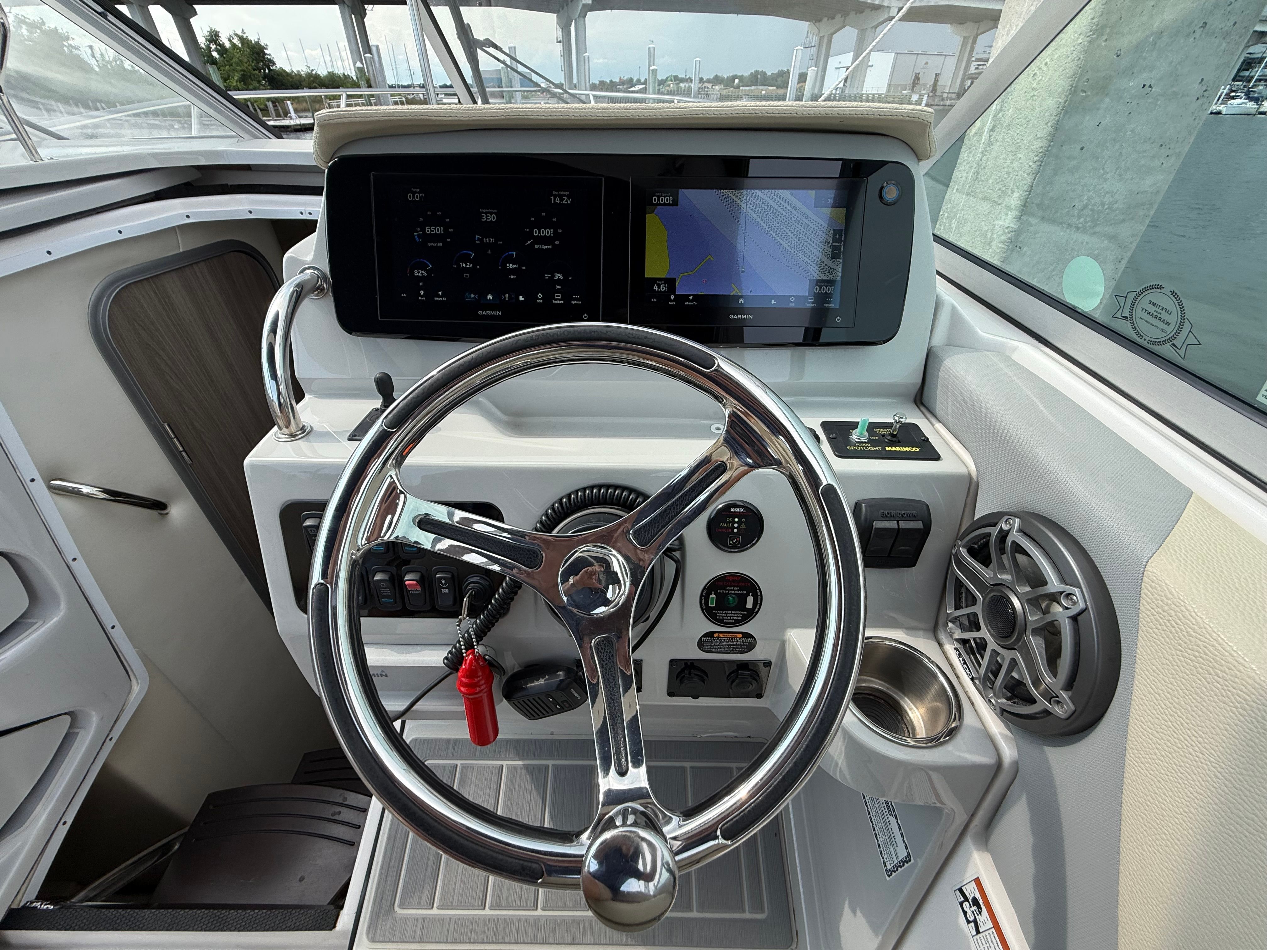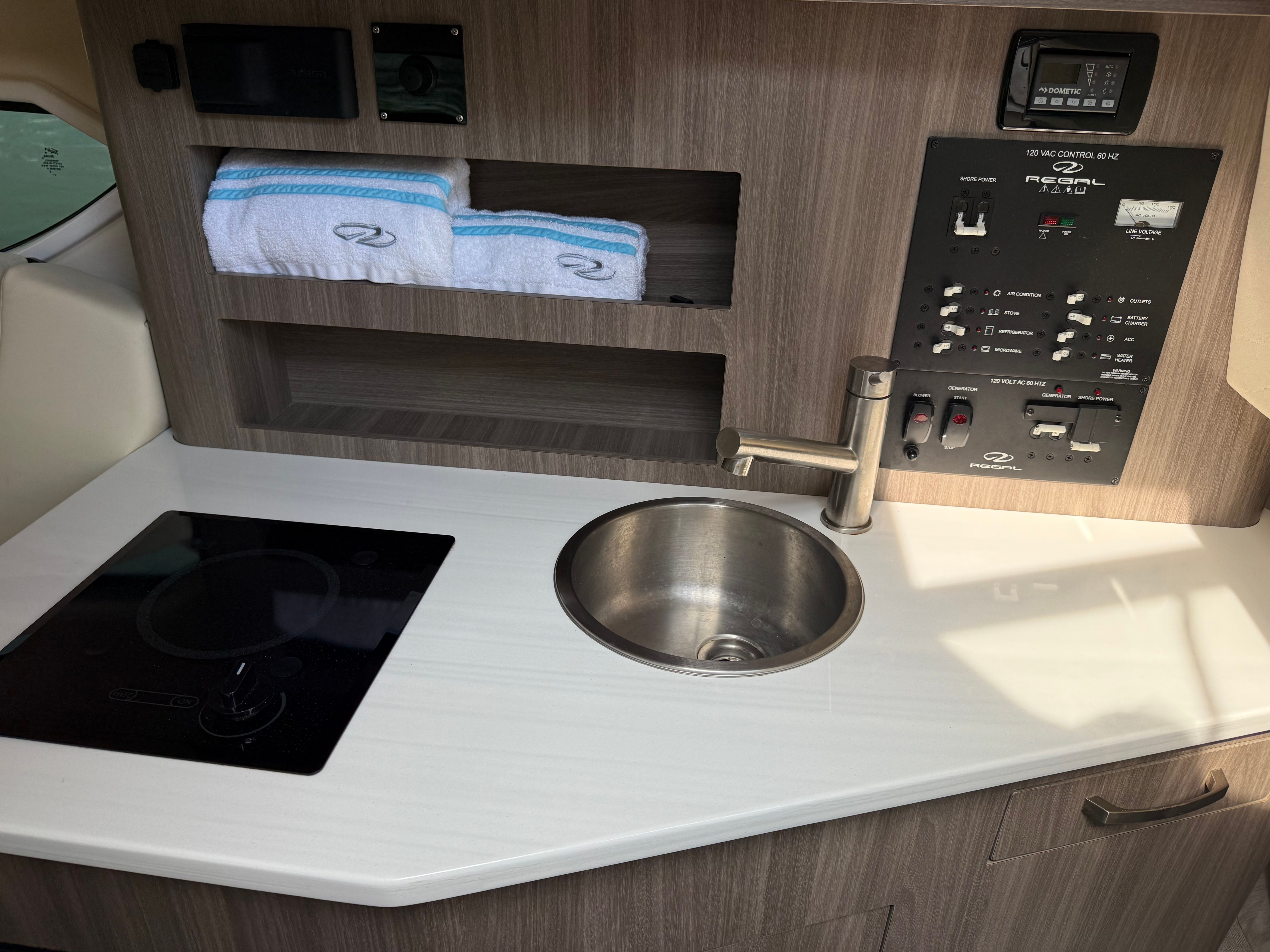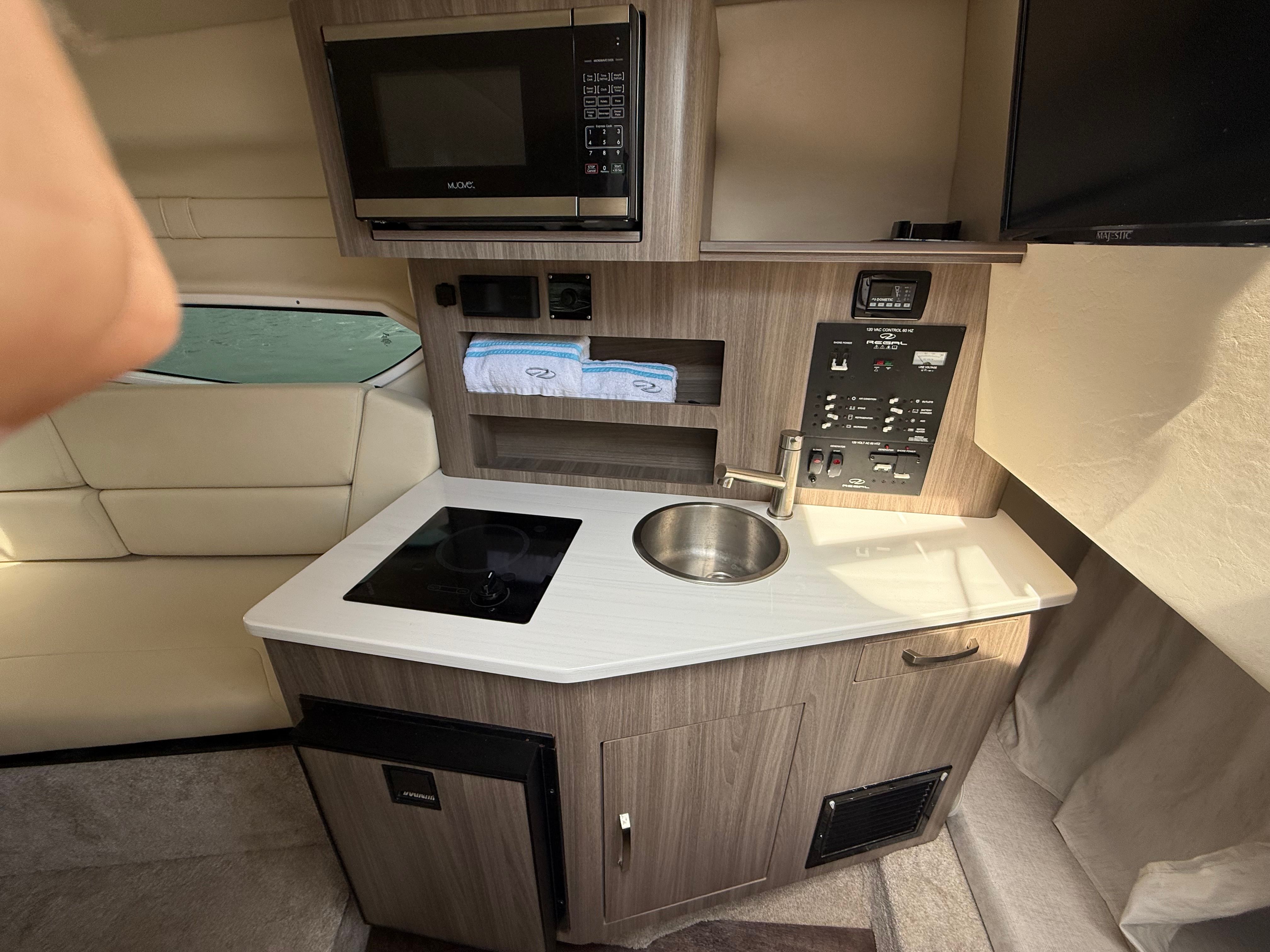 Under the hood, the Regal 26 XO is powered by a single robust engine delivering an impressive 300 horsepower. With 329 engine hours, this cruiser demonstrates a well-balanced blend of reliability and proven performance. The powerful engine ensures smooth acceleration, responsive handling, and the ability to cruise effortlessly at a variety of speeds. Whether you’re gliding across calm lakes or tackling coastal waters, the 26 XO’s performance capabilities inspire confidence and excitement. The efficient powertrain also contributes to a pleasurable driving experience, making every journey as enjoyable as the destination.
