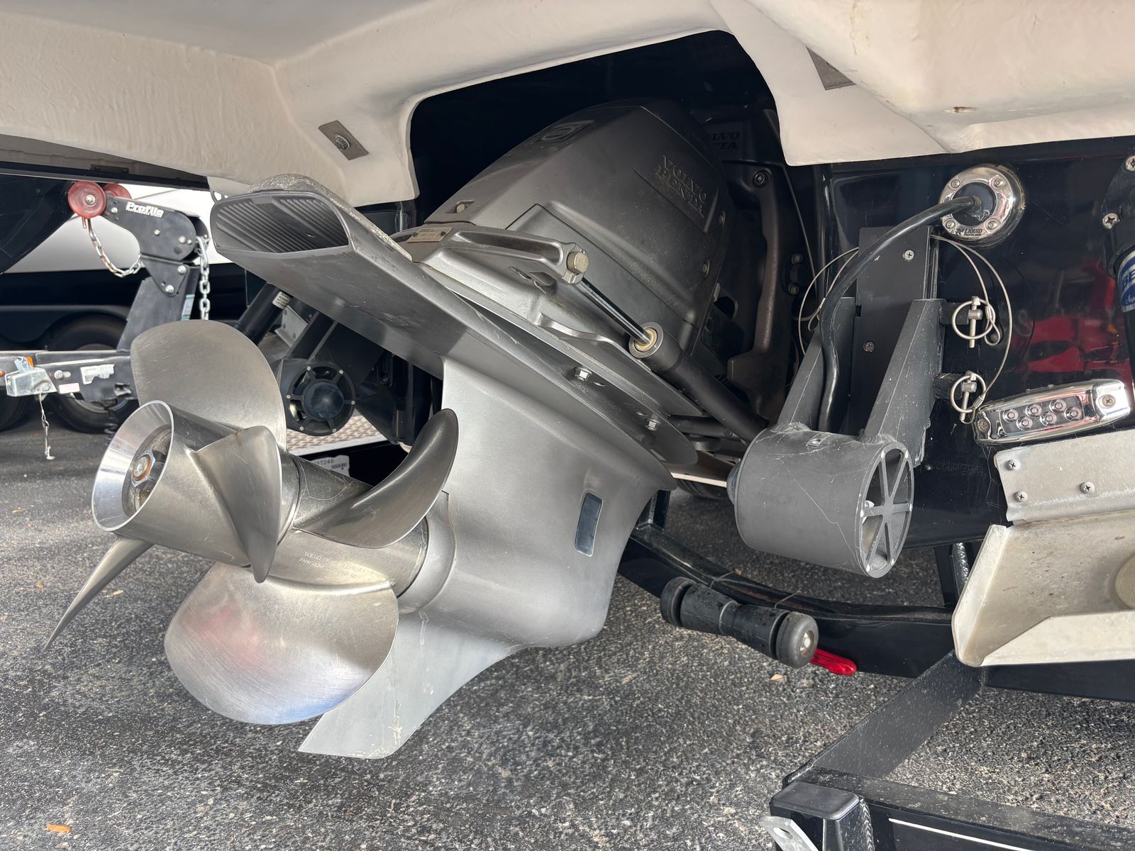Beautiful Regal 28 Express sitting on a triple axle trailer powered by a Volvo Penta V8 350 with only 124 fresh water hours! Loaded with gas generator, Power Tower, AC and Heat, Windlass anchor, bow thruster, aft thrusters, full enclosure, stereo performance and lighting package, salon TV flat screen, underwater lighting, foredeck sun pad, remote control spotlight. This boat will be fully serviced and lake ready to go! Financing is available.