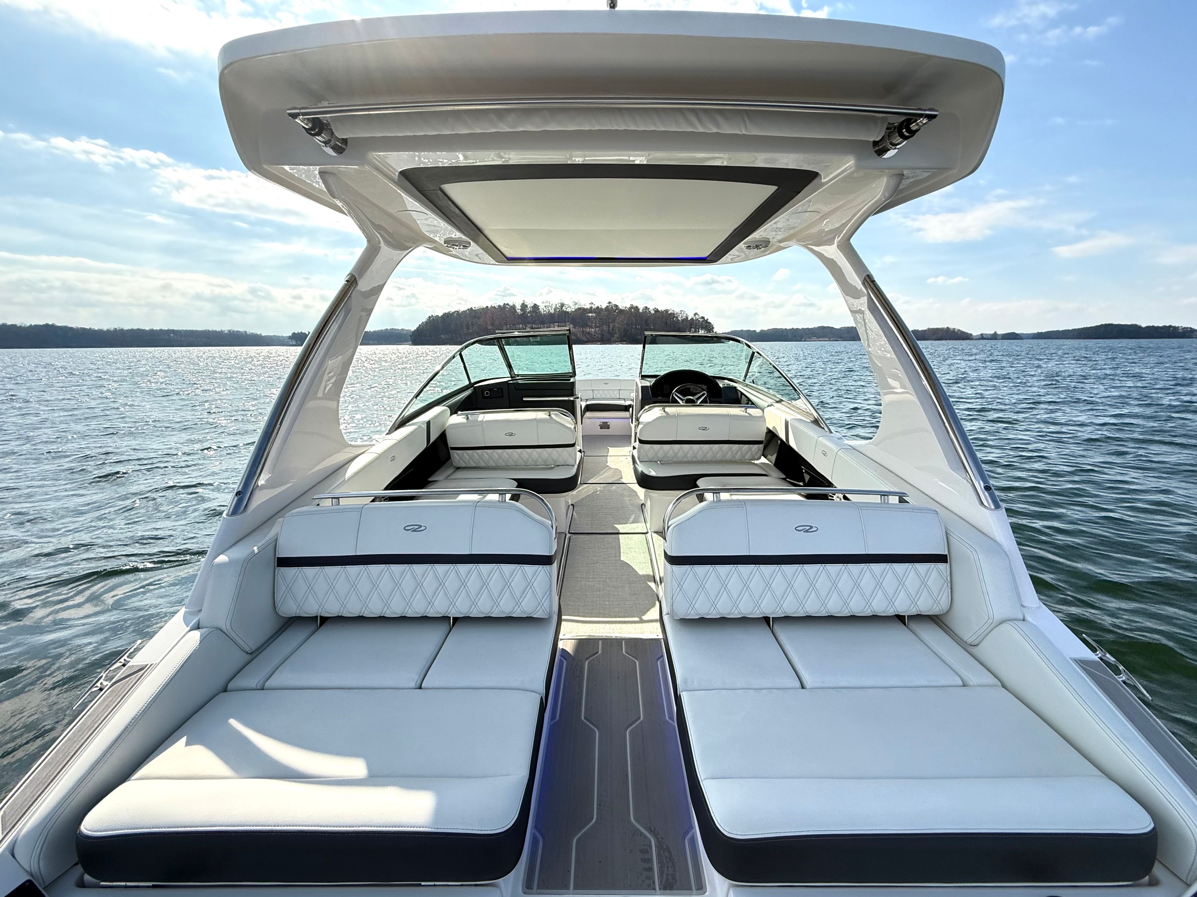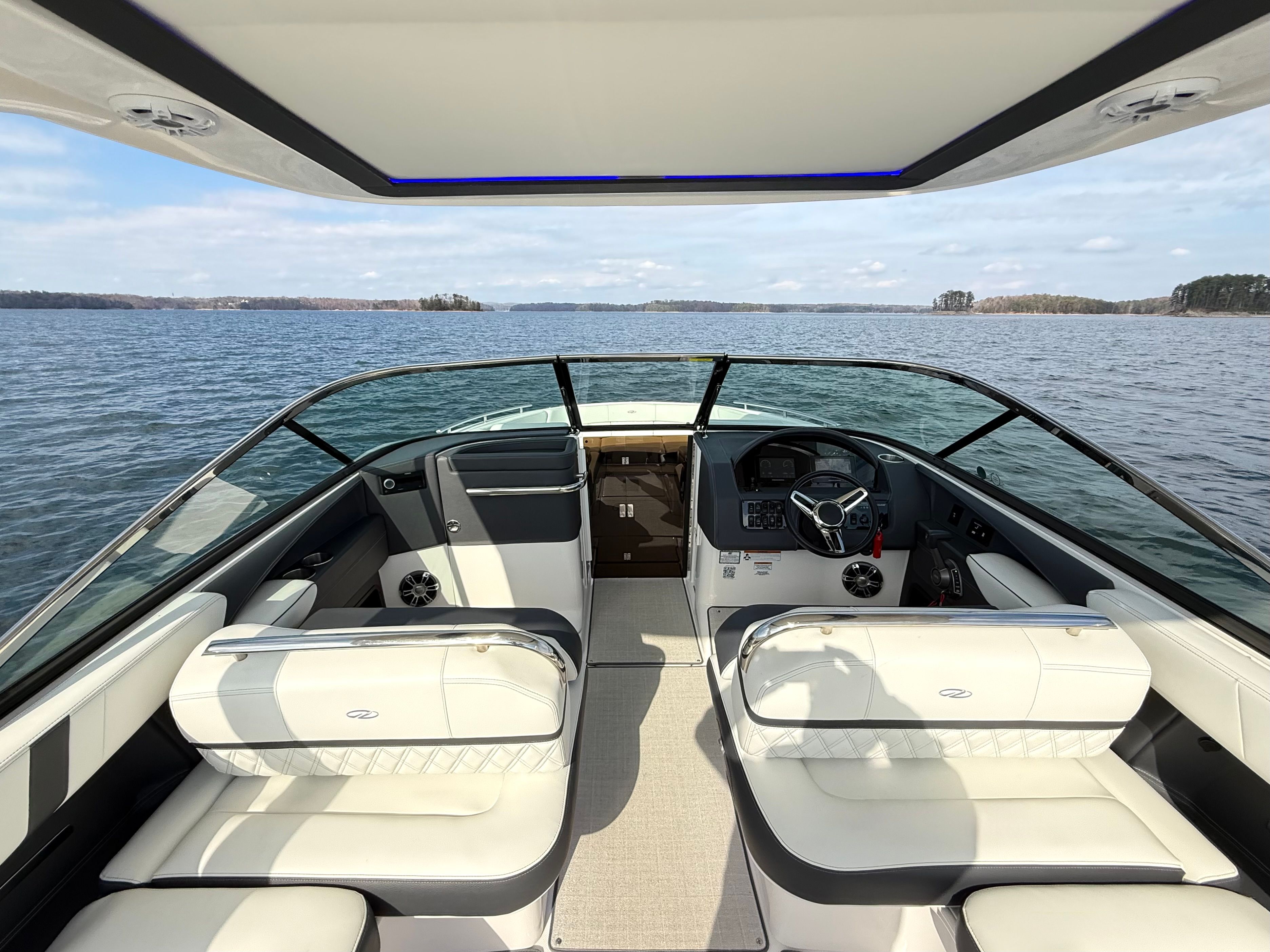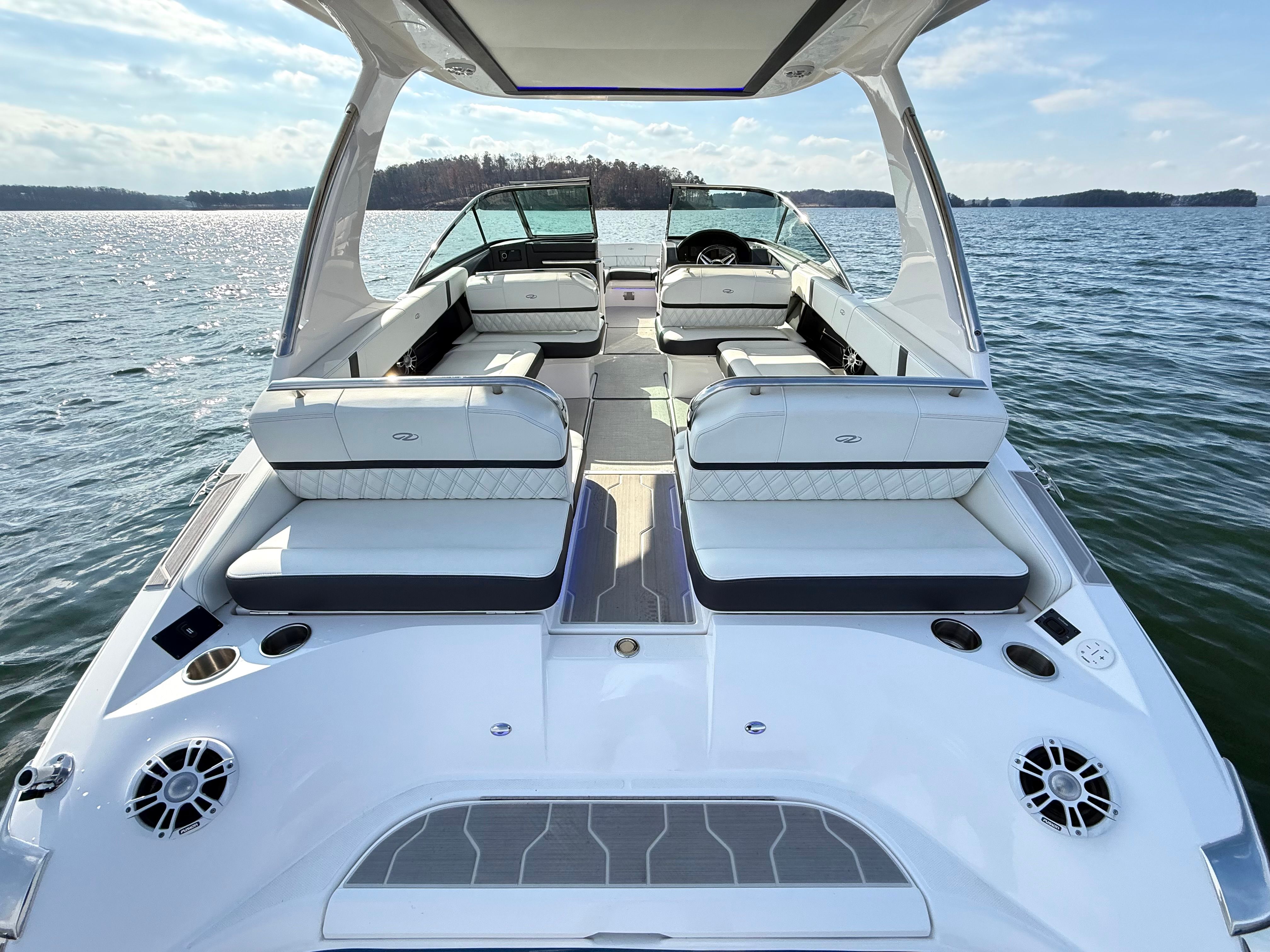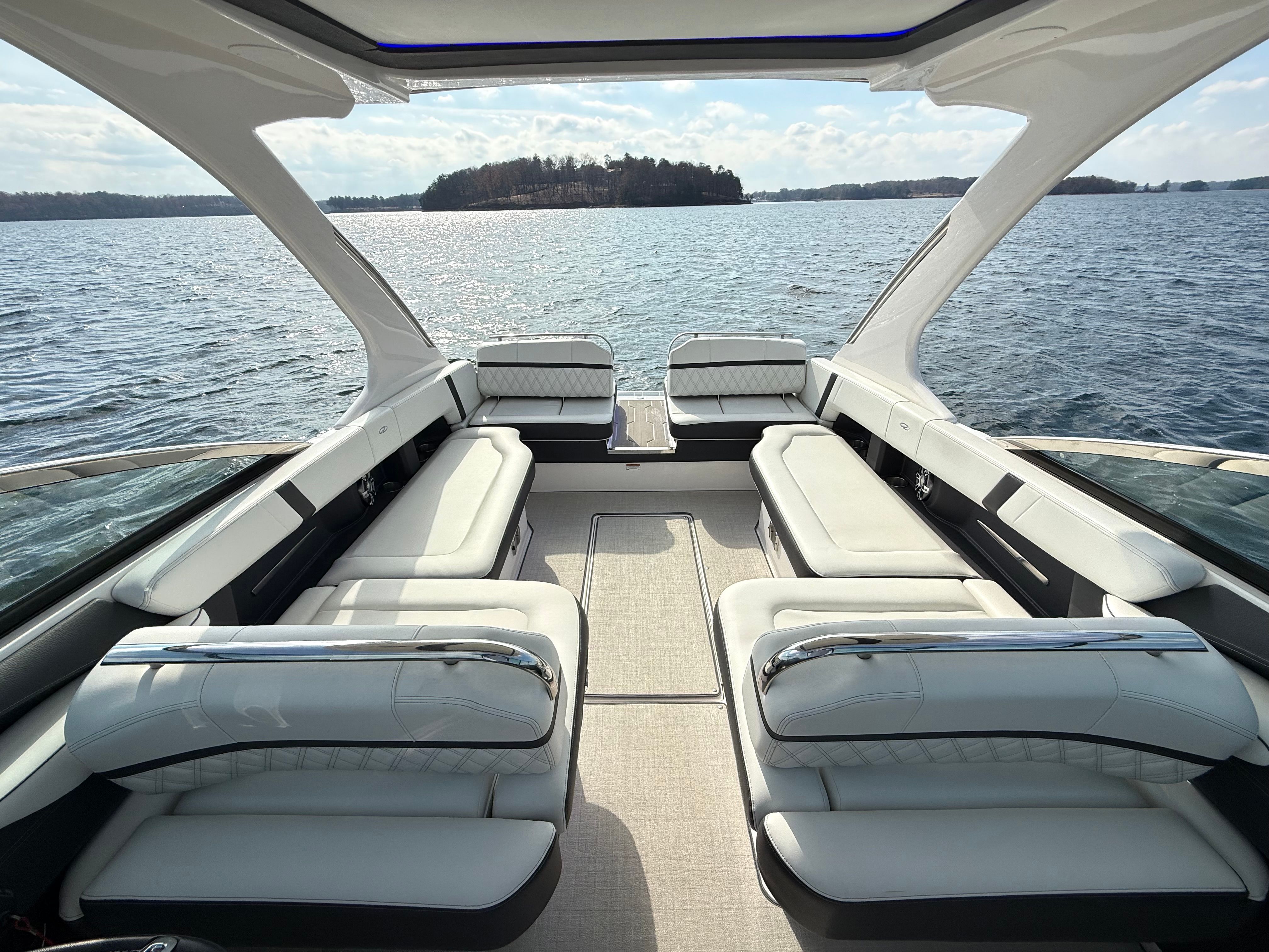 • Technology Package: 110V Battery Charger, Underwater Lights, Electric Helm Seat, Lighting Package, Docking Lights, High-Performance Stereo
