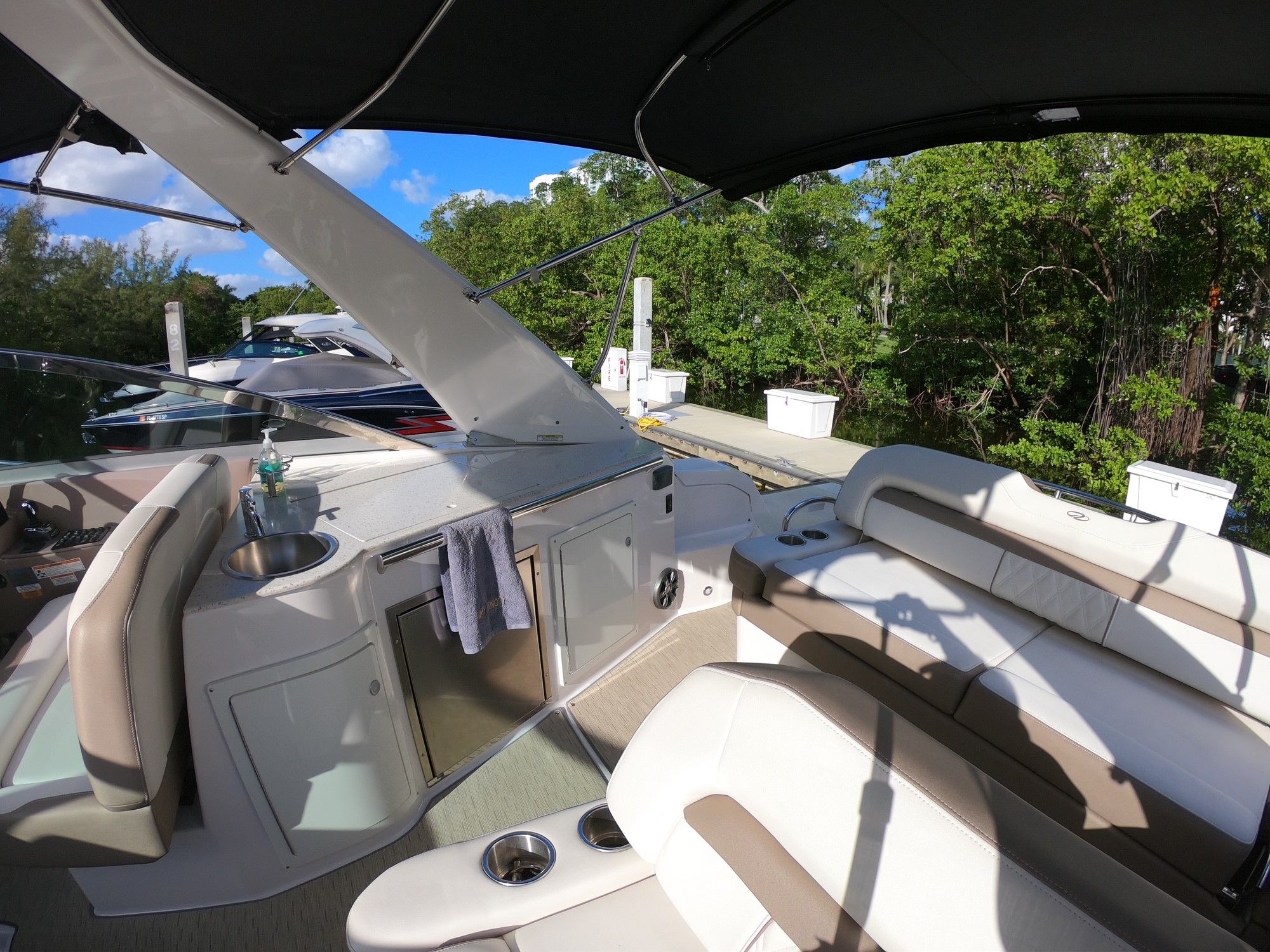 • Power Tower, electric folder sport arch with folding Bimini Top (Black Sunbrella)