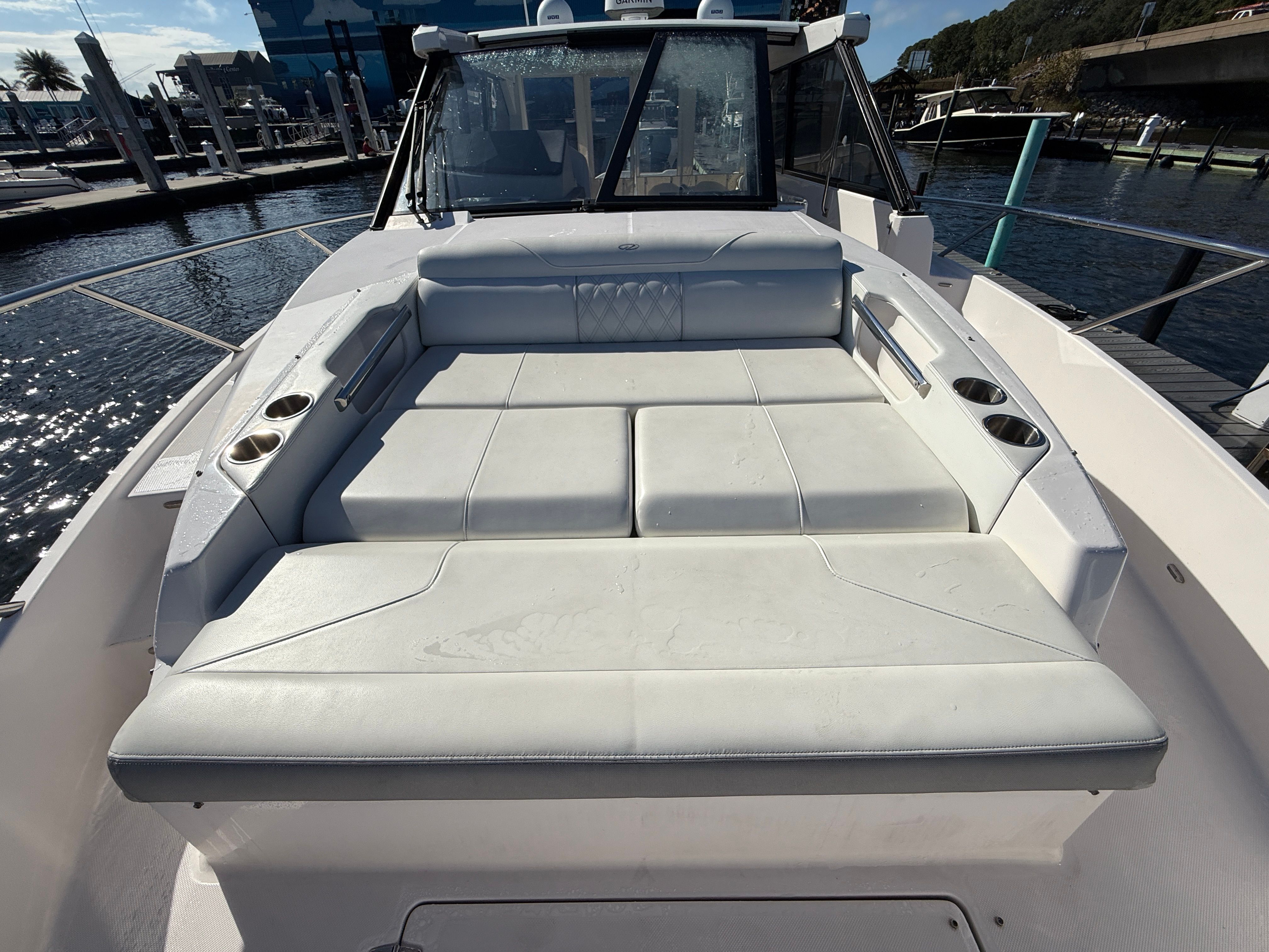 The Regal 36 Grande Coupe is thoughtfully equipped to maximize your enjoyment on the water. Its spacious cockpit and open layout create an inviting atmosphere for socializing, dining, or simply soaking up the sun. The generous length of over 37 feet provides plenty of room for guests to move about comfortably, while the stylish interior finishes add a touch of elegance to every journey. The dual engines not only enhance performance but also contribute to the boat’s overall reliability and maneuverability, making it a pleasure to operate in a variety of conditions.