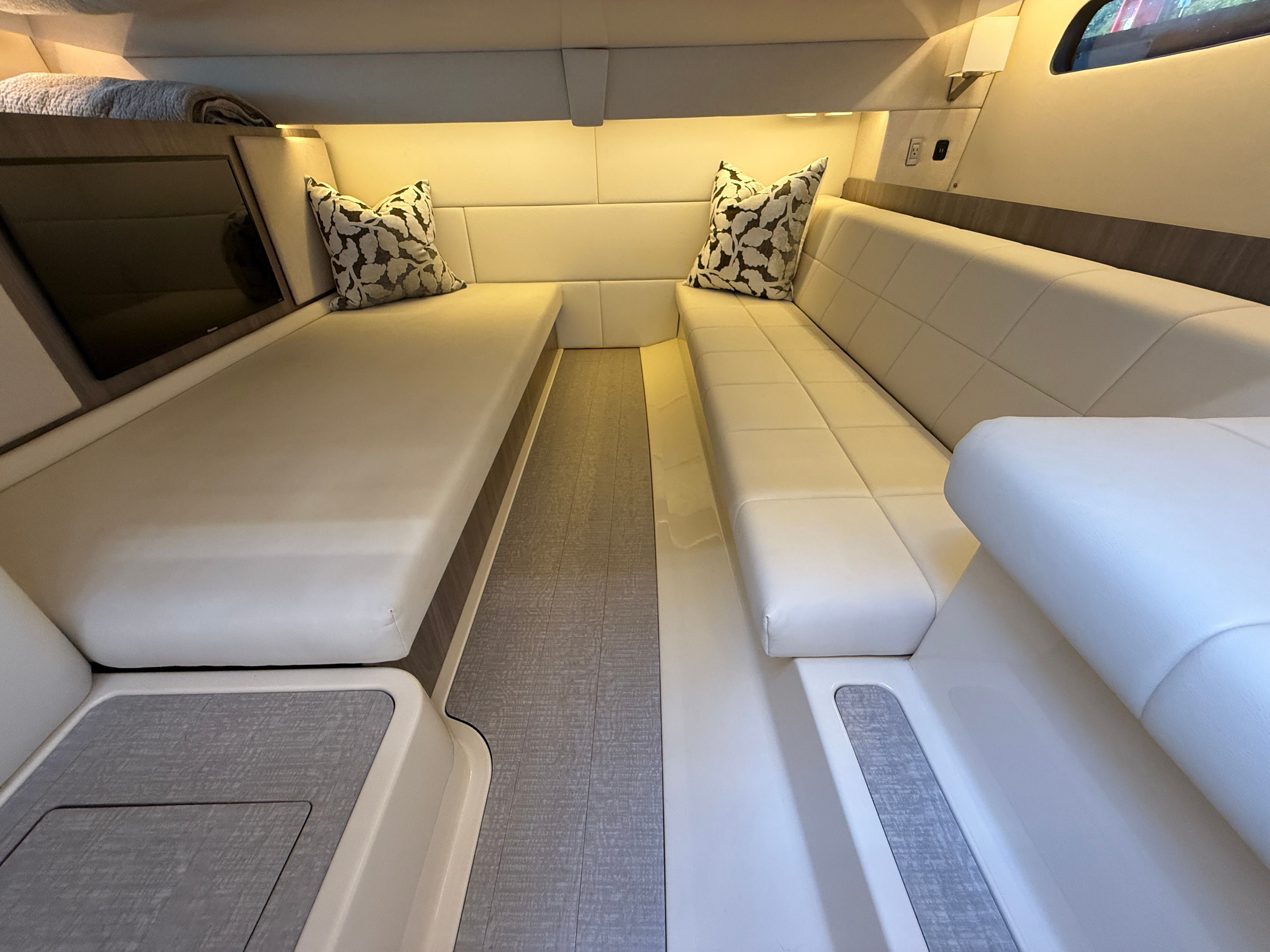 Owning a Regal 36 Grande Coupe means embracing a lifestyle of fun, relaxation, and adventure. This cruiser is designed for those who appreciate the finer things in life, offering a perfect balance of comfort and excitement. The spacious deck is ideal for hosting gatherings, enjoying alfresco meals, or lounging with family and friends. The smooth ride and powerful engines ensure that every outing is both thrilling and enjoyable, while the refined interior provides a welcoming retreat after a day of fun in the sun. With its impressive size and thoughtful layout, the 36 Grande Coupe is perfect for creating lasting memories on the water.