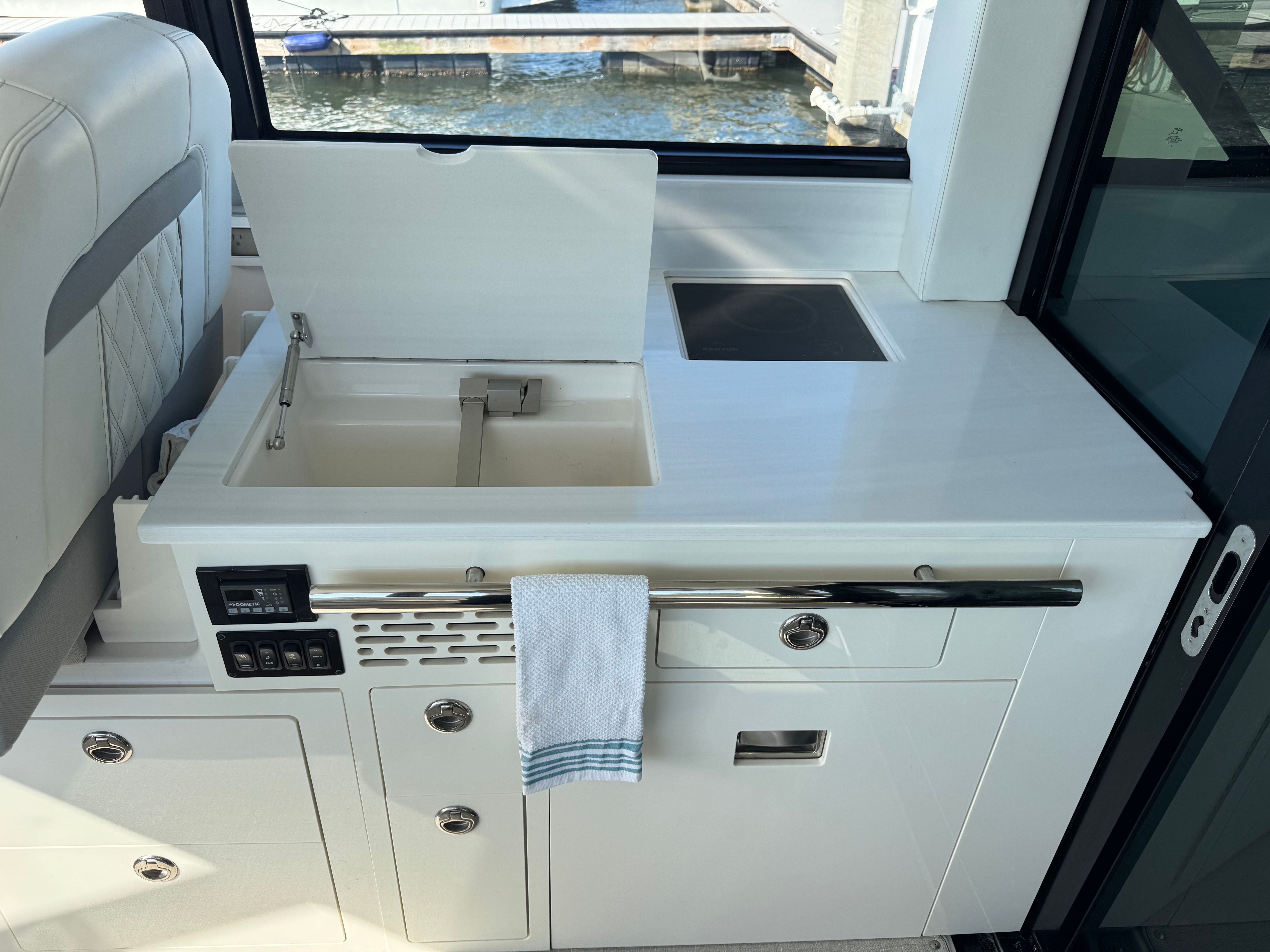 Practicality meets luxury in the Regal 36 XO. The yacht’s thoughtful design includes ample storage for gear, water toys, and provisions, ensuring everything you need is within easy reach. Docking is made simple with the responsive twin engines, allowing for smooth arrivals and departures even in tight spaces. The yacht’s efficient powertrain helps optimize fuel usage, making longer trips more economical and environmentally friendly. Maintenance is straightforward, thanks to Regal’s reputation for quality engineering and accessible systems. Whether you are planning a day trip or an extended cruise, the Regal 36 XO offers the convenience and reliability you need for worry-free boating.