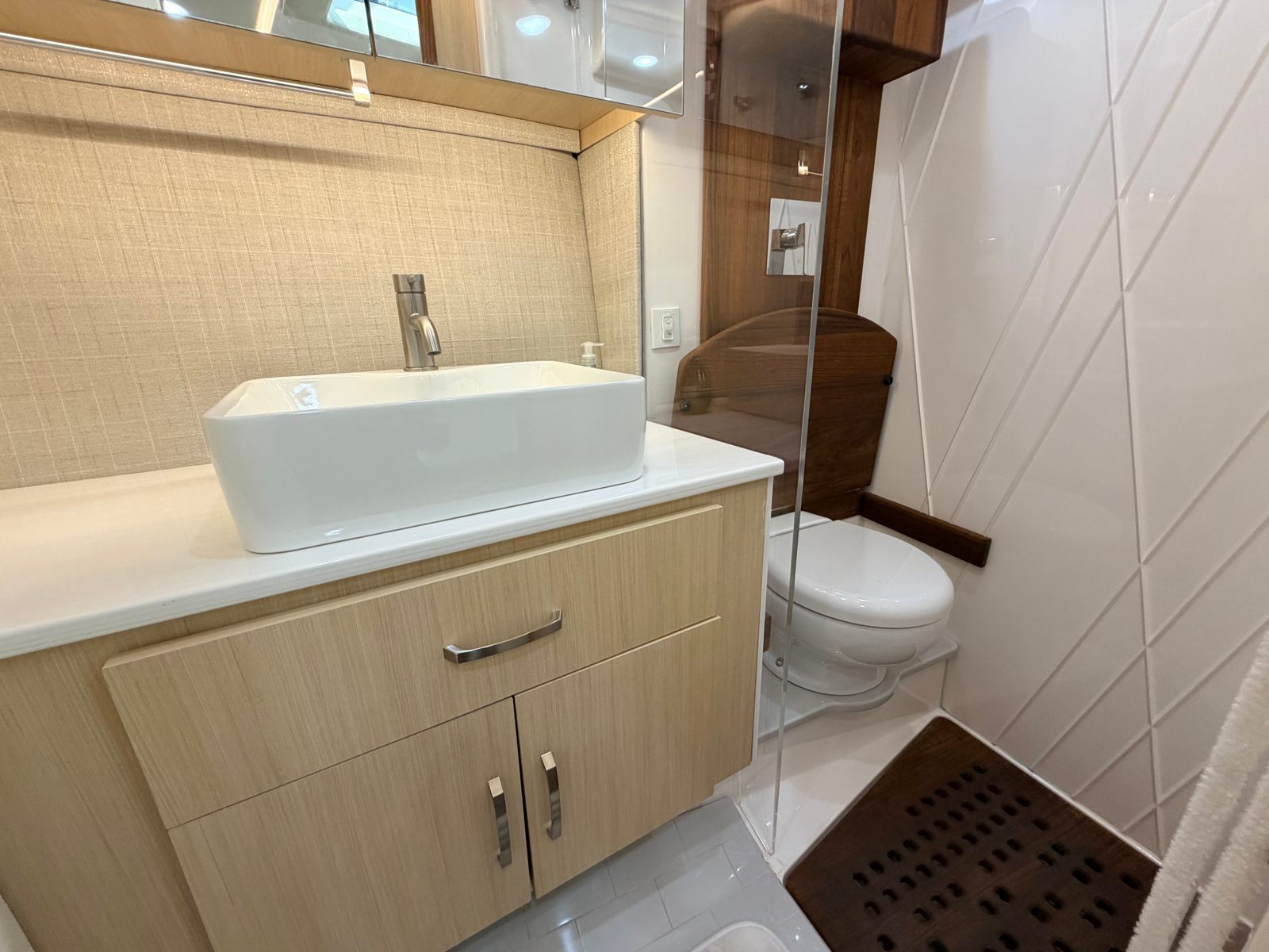 Enclosed head with walk‑in shower
