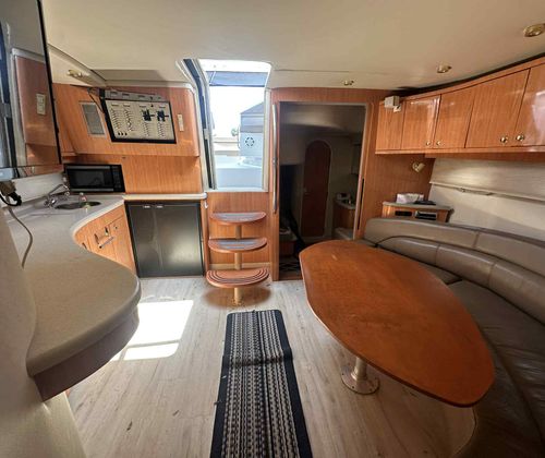 In addition to its recreational appeal, the Regal 4160 Commodore is designed with practical features that make ownership a breeze. The ample storage throughout the vessel allows you to bring along all the gear and supplies you need for extended trips, while the thoughtful layout makes it easy to access everything you need. Docking is simplified by the responsive handling provided by the twin engines, giving you confidence in tight spaces.Fuel efficiency is another key benefit, with the engines designed to deliver strong performance without excessive consumption. This means you can spend more time enjoying the water and less time worrying about refueling. The durable construction and quality materials used throughout the boat ensure that it will stand up to the rigors of regular use, providing years of reliable enjoyment.