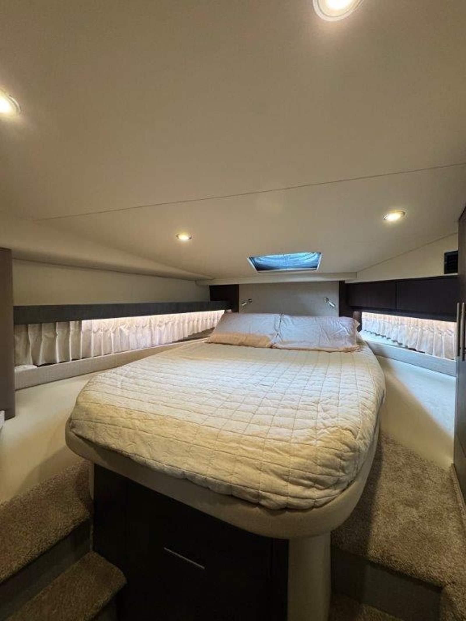 Forward stateroom: innerspring queen bed, cedar-lined lockers