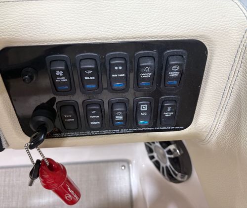 At the heart of this Bowrider is a powerful single engine delivering 350 horsepower, ensuring exhilarating acceleration and smooth cruising. With only 251 engine hours, this Regal LS6 has plenty of life left for countless adventures. The robust engine provides the muscle you need for watersports, fast cruising, or simply enjoying a spirited ride across the lake. Regal’s engineering ensures that the LS6 handles with precision and confidence, making it a joy to pilot whether you’re navigating tight turns or cruising at higher speeds. The combination of power and efficiency makes this Bowrider boat for sale a standout in its class.