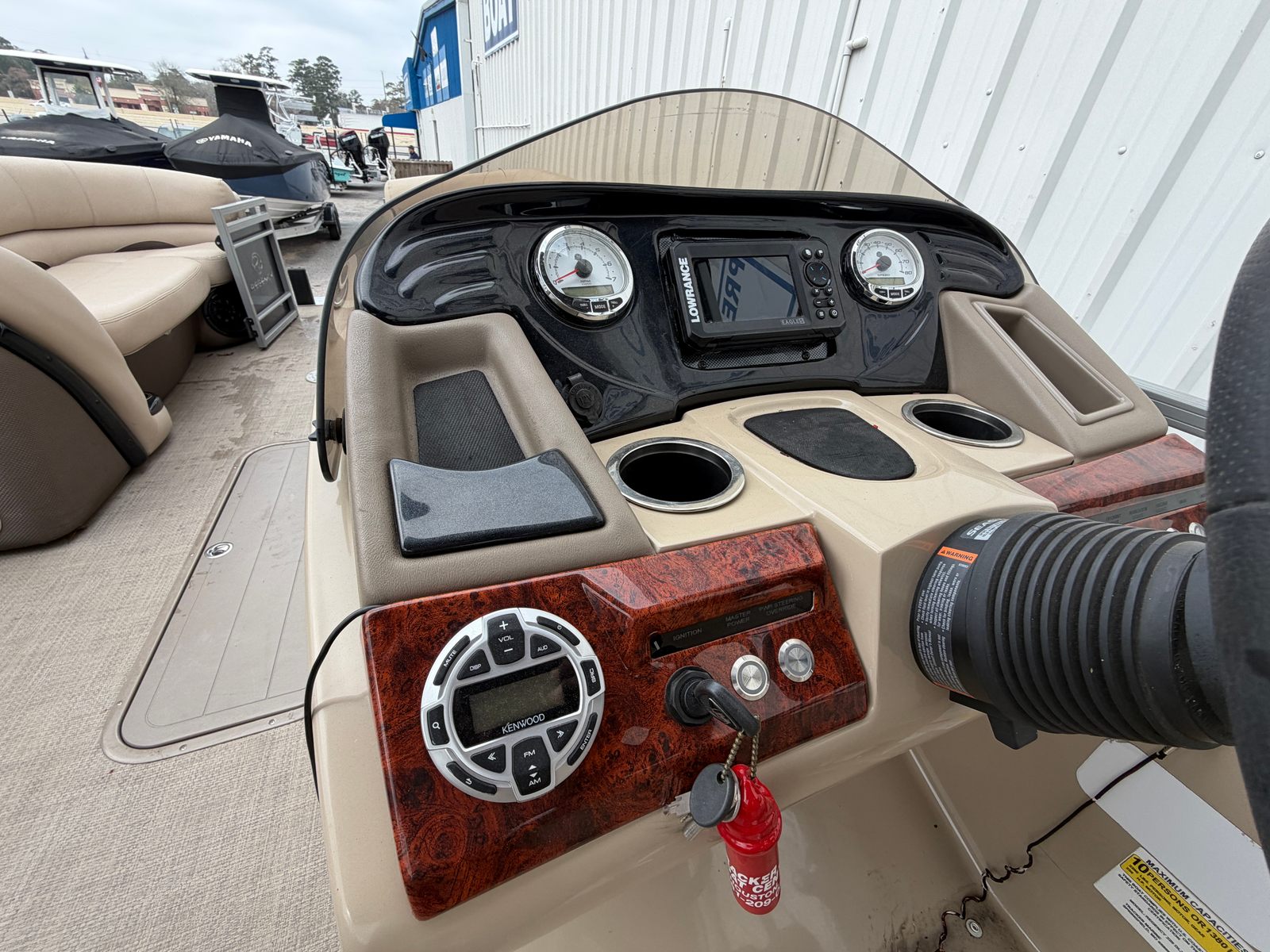 The 2016 Regency 220 DL3 is a 25-foot pontoon boat designed to deliver maximum enjoyment and versatility. Its generous length provides ample space for passengers, making it ideal for social gatherings, family outings, or leisurely cruises. This used pontoon boat for sale has been well maintained and features 269 engine hours, ensuring plenty of life left for future adventures. The Regency brand is renowned for its commitment to quality and luxury, and the 220 DL3 model exemplifies these traits with its elegant styling and thoughtful layout.