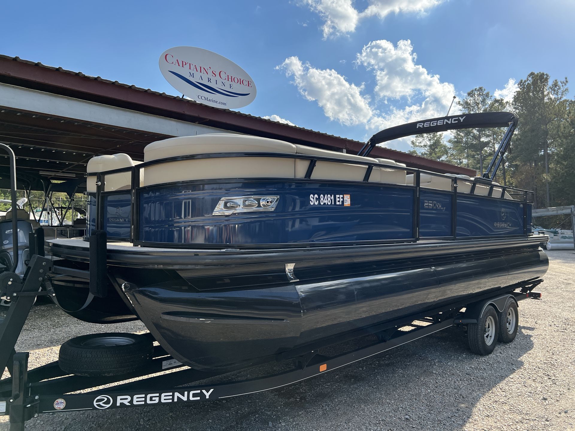 The 2023 Regency 250DL3 Sport Regency is a 25-foot pontoon boat that perfectly blends sophistication with recreational fun. As a used Regency boat for sale, this model offers the rare opportunity to own a nearly new vessel with only 228 engine hours, ensuring plenty of life and adventure ahead. Its impressive length provides ample space for friends and family, making it an ideal choice for social gatherings, relaxing cruises, or action-packed days on the water.