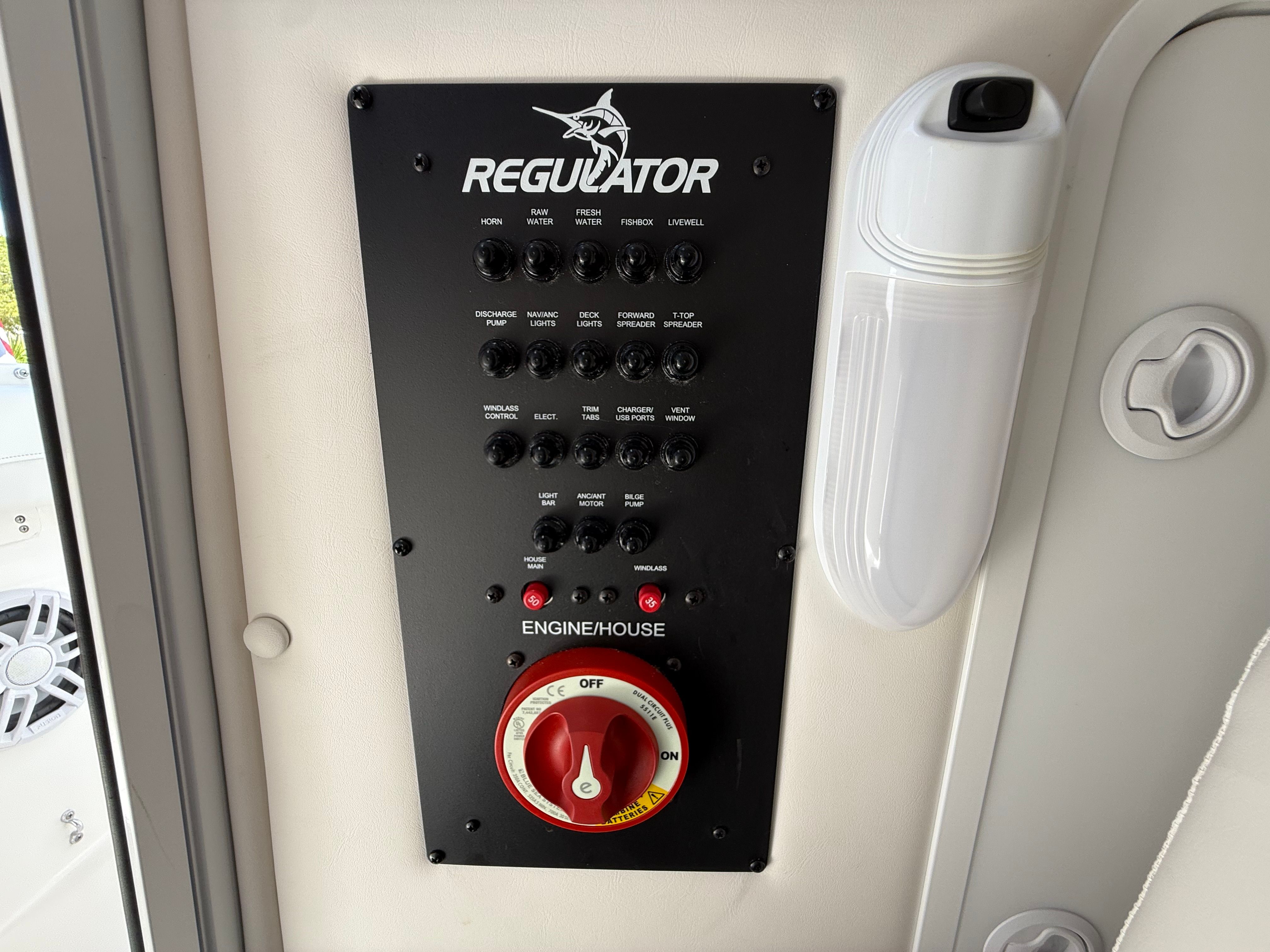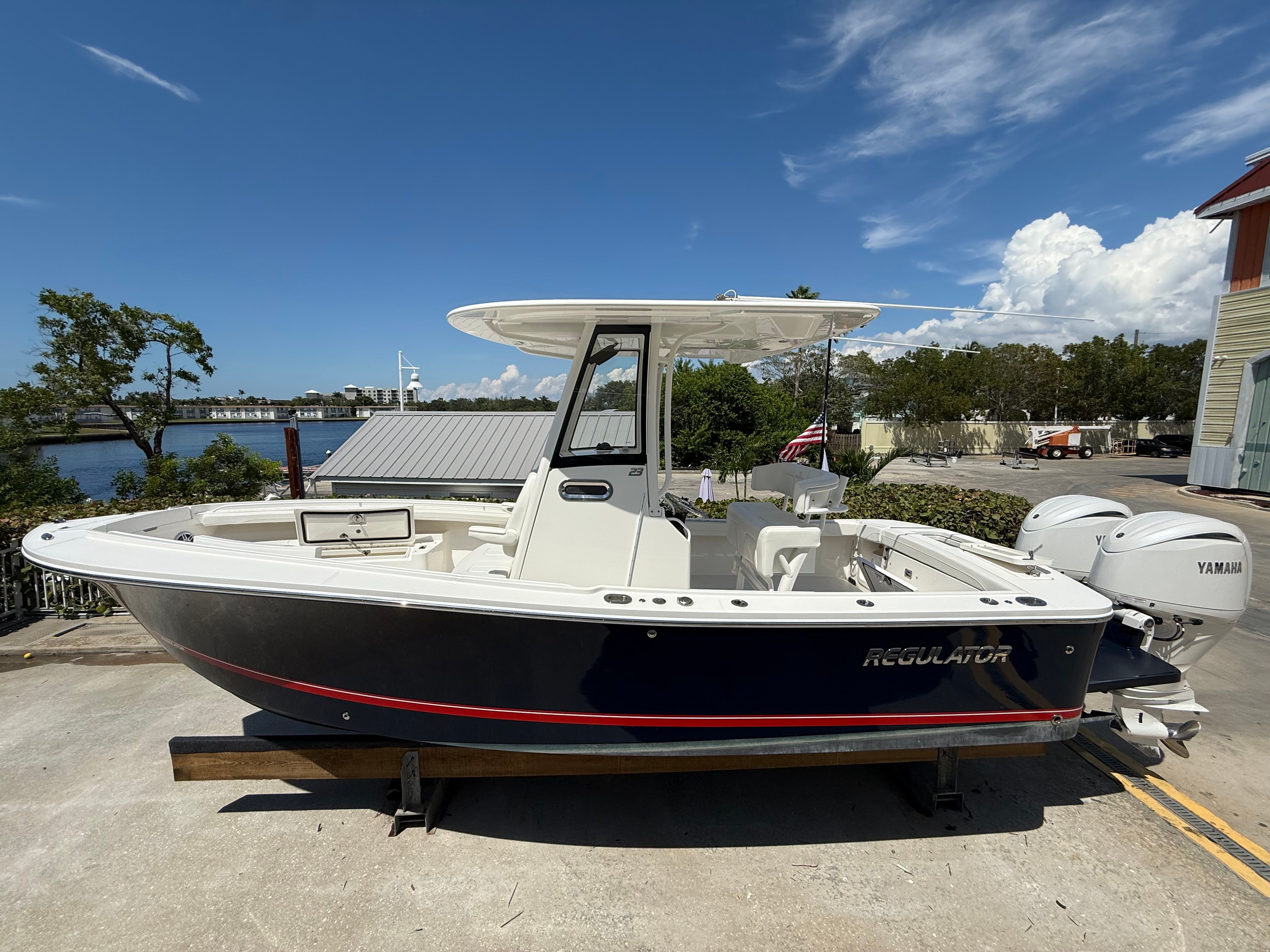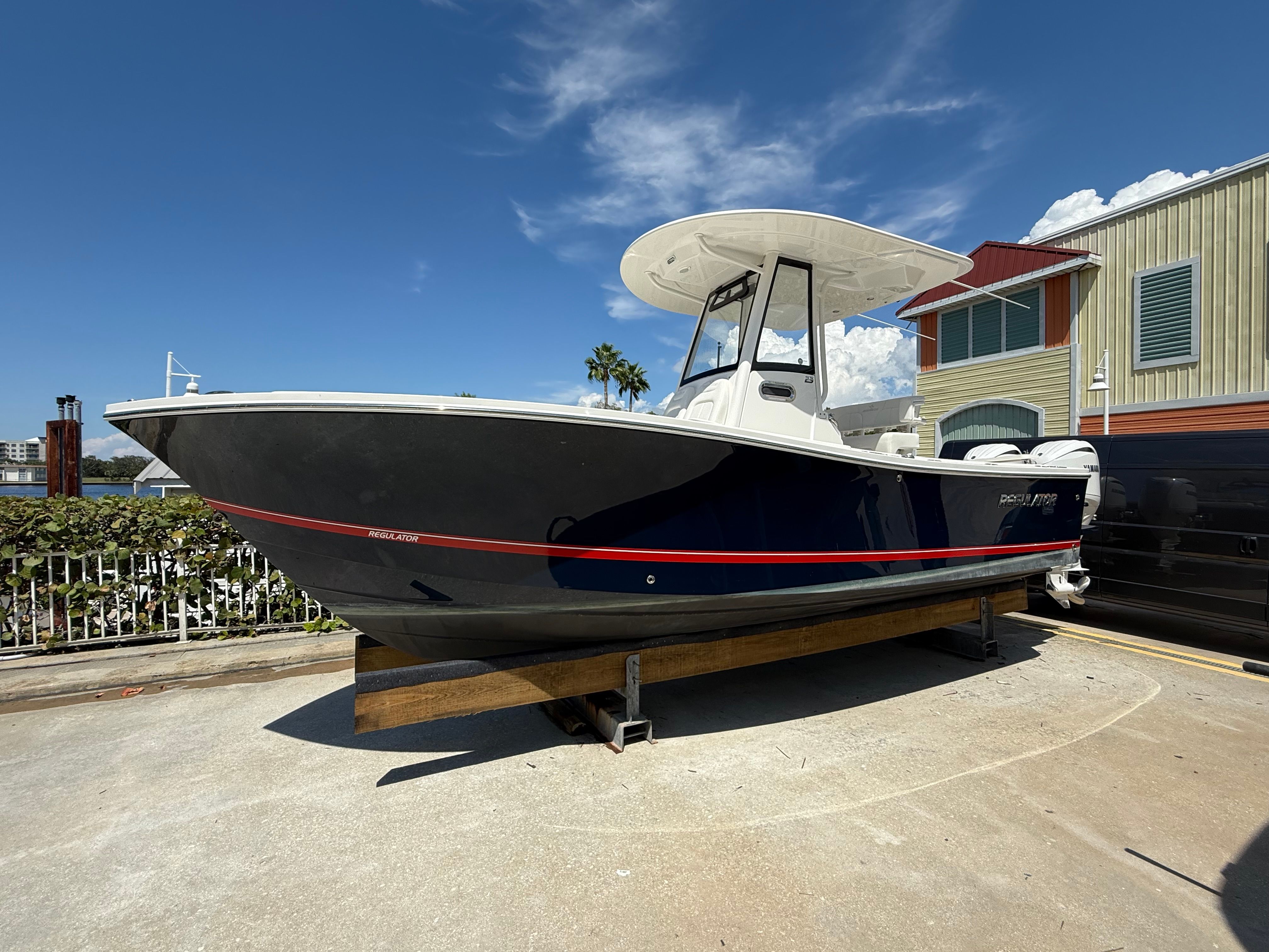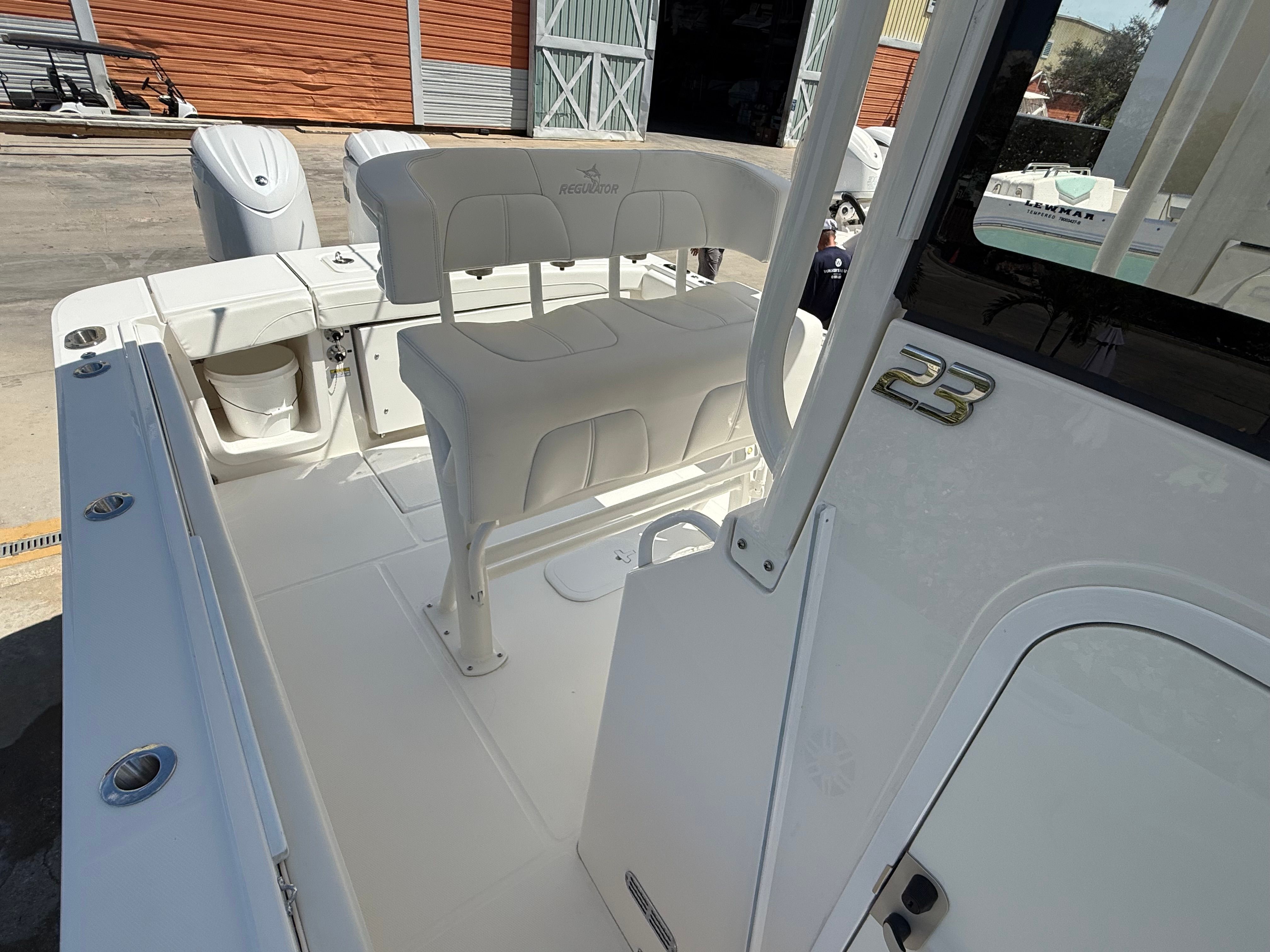 Practicality is at the heart of the Regulator 23 FS. The Center Console design provides ample storage for gear, tackle, and personal items, keeping the deck clutter-free and organized. Docking and maneuvering are made easier by the boat’s responsive handling and manageable size, making it suitable for both seasoned captains and those new to boating. The efficient hull design contributes to better fuel economy, allowing you to extend your adventures without frequent stops at the pump.Maintenance is straightforward, thanks to the high-quality materials and thoughtful engineering that Regulator is known for. The dual engines not only enhance performance but also offer peace of mind when venturing farther from shore. Whether you are planning a quick day trip or a longer excursion, the 23 FS is equipped to handle a variety of boating scenarios with ease.