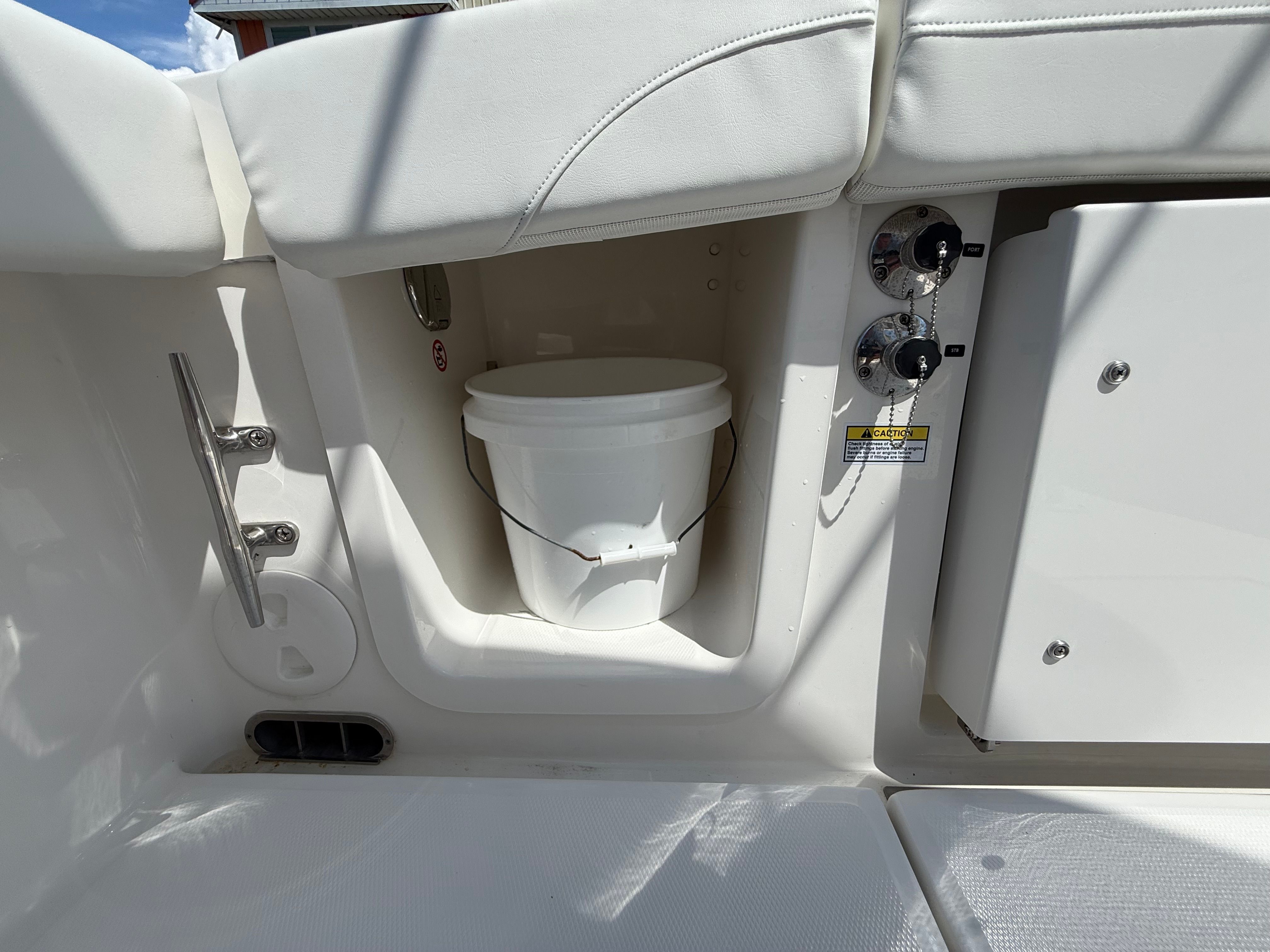 Powering the Regulator 23 FS are twin engines, each delivering a combined 300 horsepower. This setup ensures that the boat is not only quick off the mark but also maintains impressive cruising speeds with ease. Whether you are navigating coastal waters, heading offshore, or simply enjoying a day on the bay, the 23 FS offers responsive handling and a smooth, stable ride. The engines’ 95 hours reflect careful use and maintenance, promising many more seasons of reliable performance. The power and agility of this Center Console make it a top choice for those who demand both speed and control on the water.