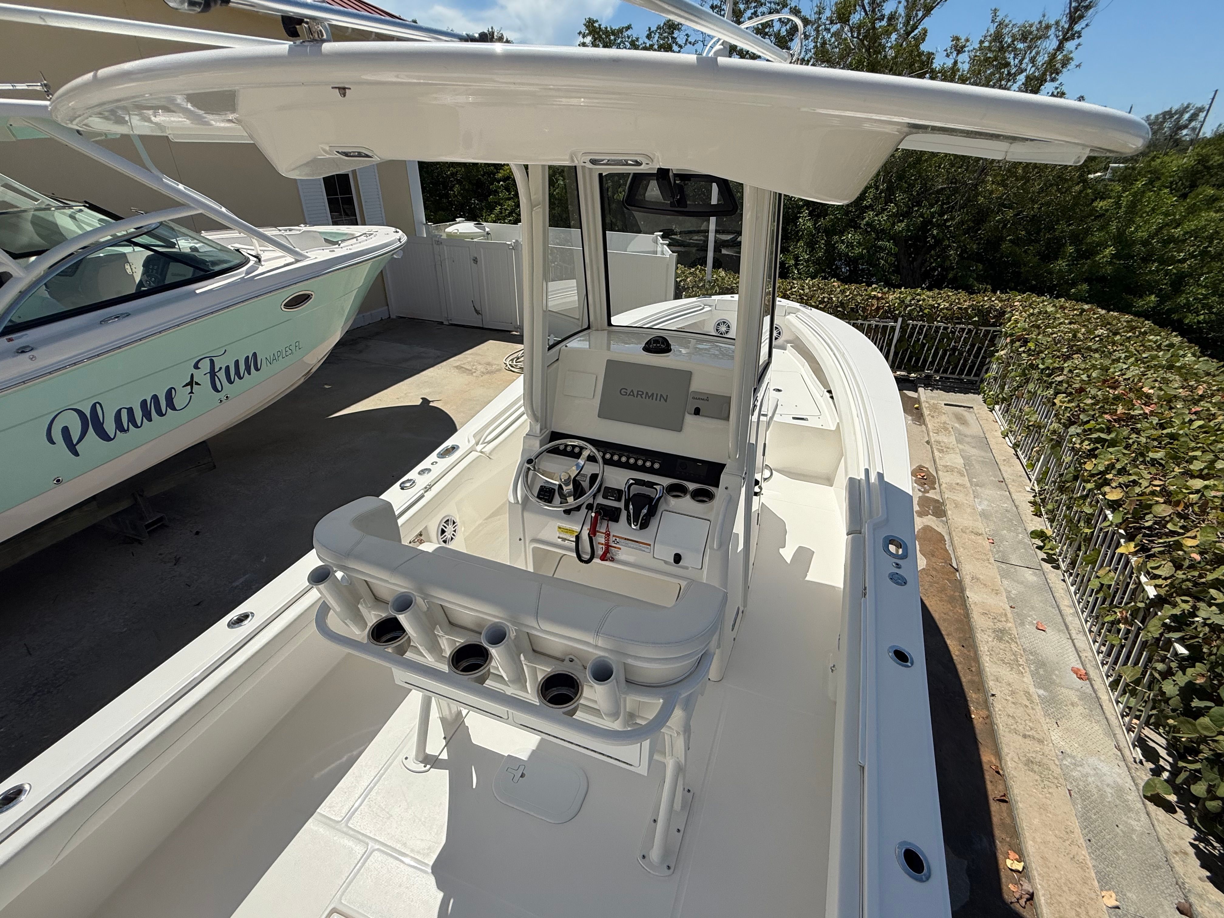 The 2024 Regulator 23 FS is packed with features that enhance both functionality and comfort. As a Center Console boat, it offers an open deck layout that maximizes space for fishing, entertaining, or relaxing. The console is thoughtfully designed for easy access to controls and electronics, ensuring that the captain can navigate with confidence. The 23-foot length strikes the perfect balance between maneuverability and ample deck space, making it ideal for a variety of activities.Special features of this model include its dual-engine configuration, which not only boosts performance but also adds a layer of safety and redundancy for offshore excursions. The hull design is optimized for stability and efficiency, providing a dry and comfortable ride even in choppy conditions. With its modern styling and practical layout, the Regulator 23 FS stands out as a versatile and attractive Center Console boat for sale.