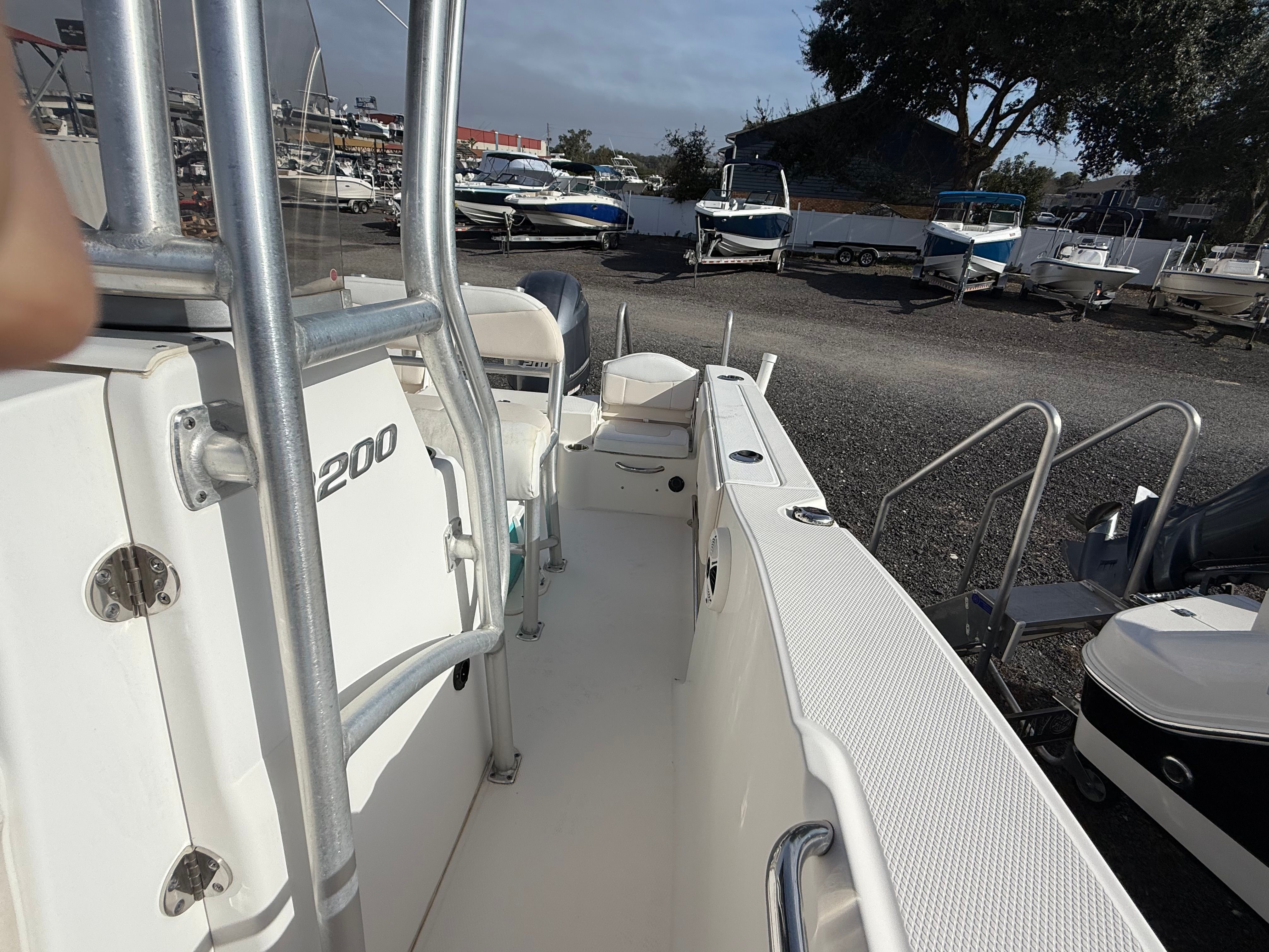 Powered by a single 200-horsepower engine, the Robalo 200 CC delivers an exhilarating ride with impressive speed and agility. The engine’s low hours—just 24—mean you are getting a boat that is practically new in terms of performance and longevity. The powerful outboard ensures quick acceleration, smooth cruising, and the ability to handle a variety of water conditions with confidence. Whether you are navigating coastal waters, exploring inland lakes, or heading offshore for a day of fishing, this Center Console boat for sale offers the performance you need to make the most of every outing.