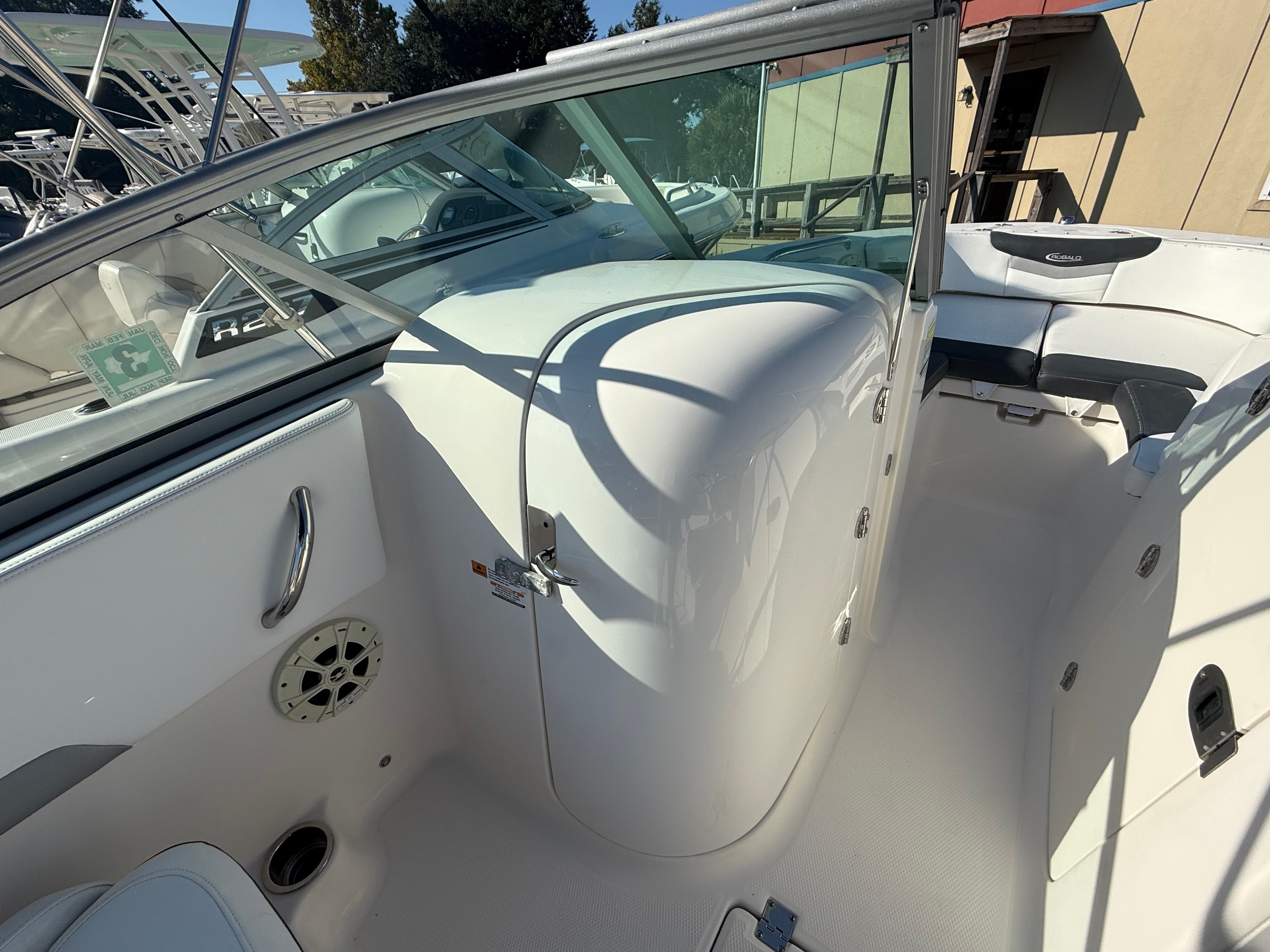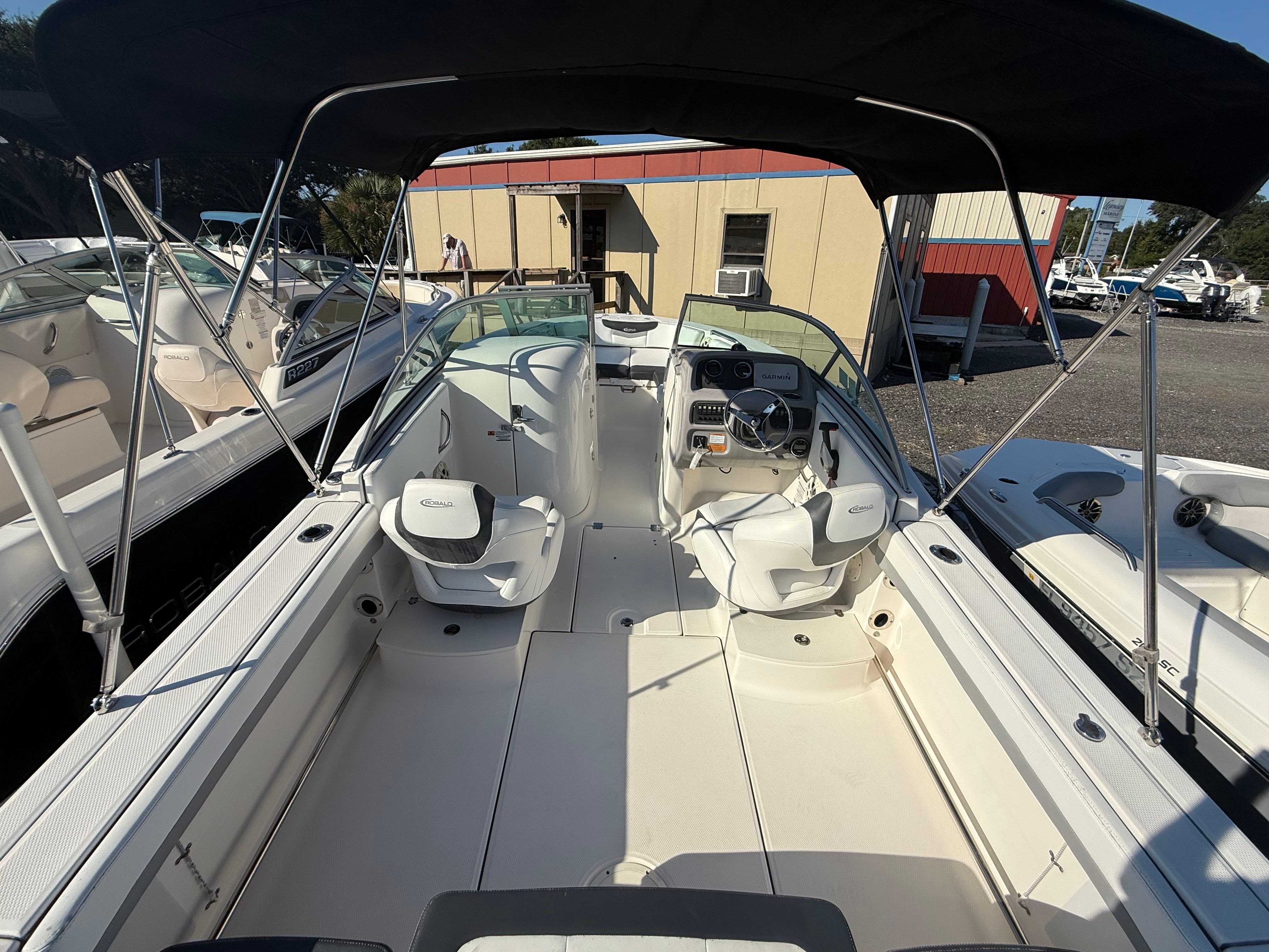The Robalo 207 DC is packed with features that enhance both functionality and comfort. Its dual console layout provides a spacious and flexible cockpit, allowing for easy movement and socializing. The well-designed seating arrangement offers comfort for all passengers, while the ample storage compartments keep your gear organized and accessible. The boat’s thoughtful design ensures that every inch of space is utilized efficiently, making it perfect for both relaxation and adventure.Special features of this Robalo boat for sale include a versatile dual console configuration, which offers protection from the elements and convenient access to both the bow and stern. The ergonomic helm station is equipped with intuitive controls, ensuring a confident and enjoyable driving experience. The 20-foot length provides stability and a smooth ride, even in choppier waters, while the robust hull construction reflects Robalo’s commitment to quality and safety.