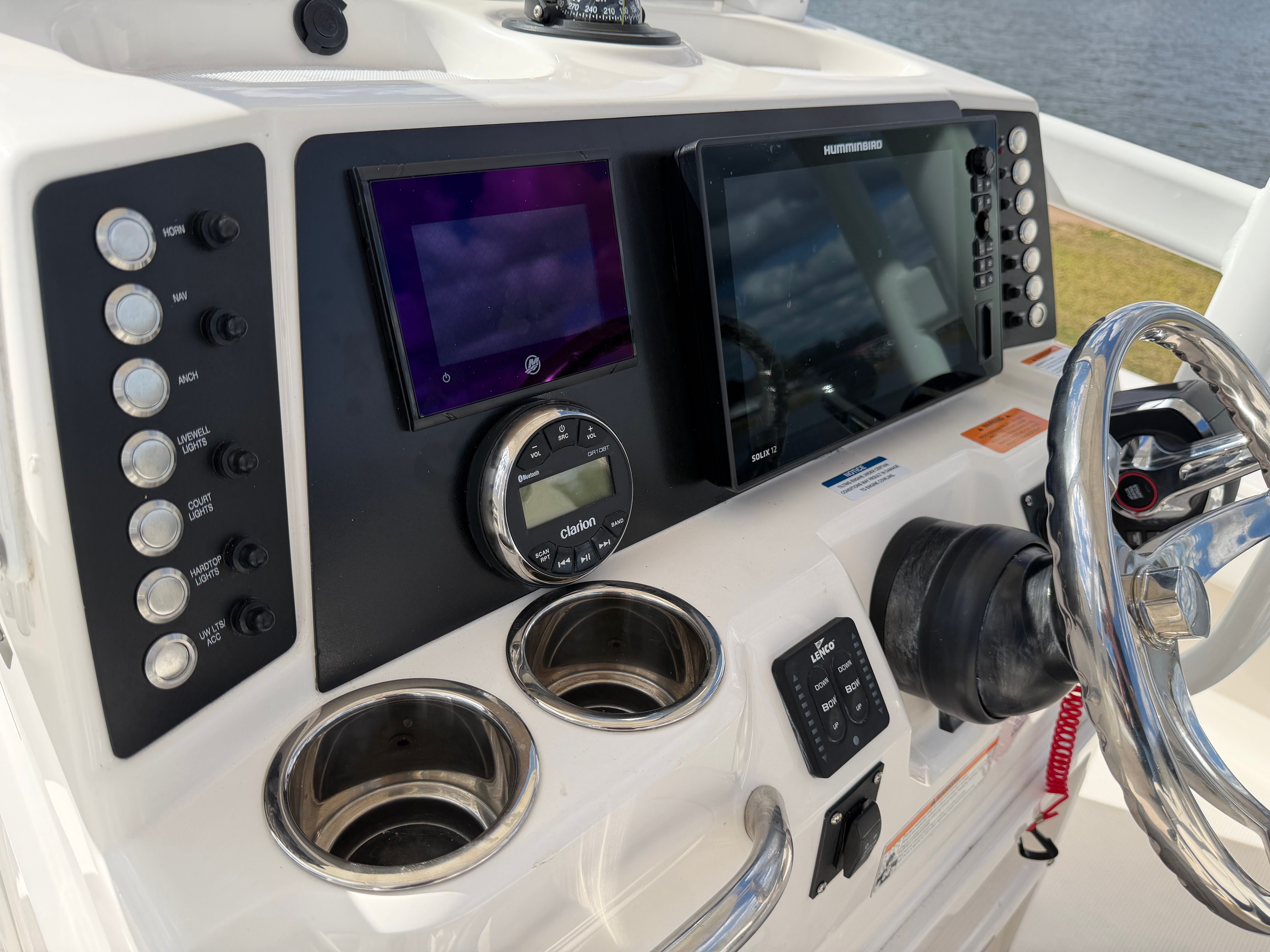 Powering the Robalo 246 Cayman is a single, high-performance engine delivering an impressive 300 horsepower. With just 10 hours of use, this engine promises reliability and longevity, ensuring you can embark on countless adventures with confidence. The powerful engine provides quick acceleration, smooth cruising, and responsive handling, making it easy to navigate both shallow bays and open waters. Whether you are chasing the next big catch or enjoying a leisurely cruise, the Robalo 246 Cayman’s performance capabilities set it apart from other Bay Boat boats for sale.