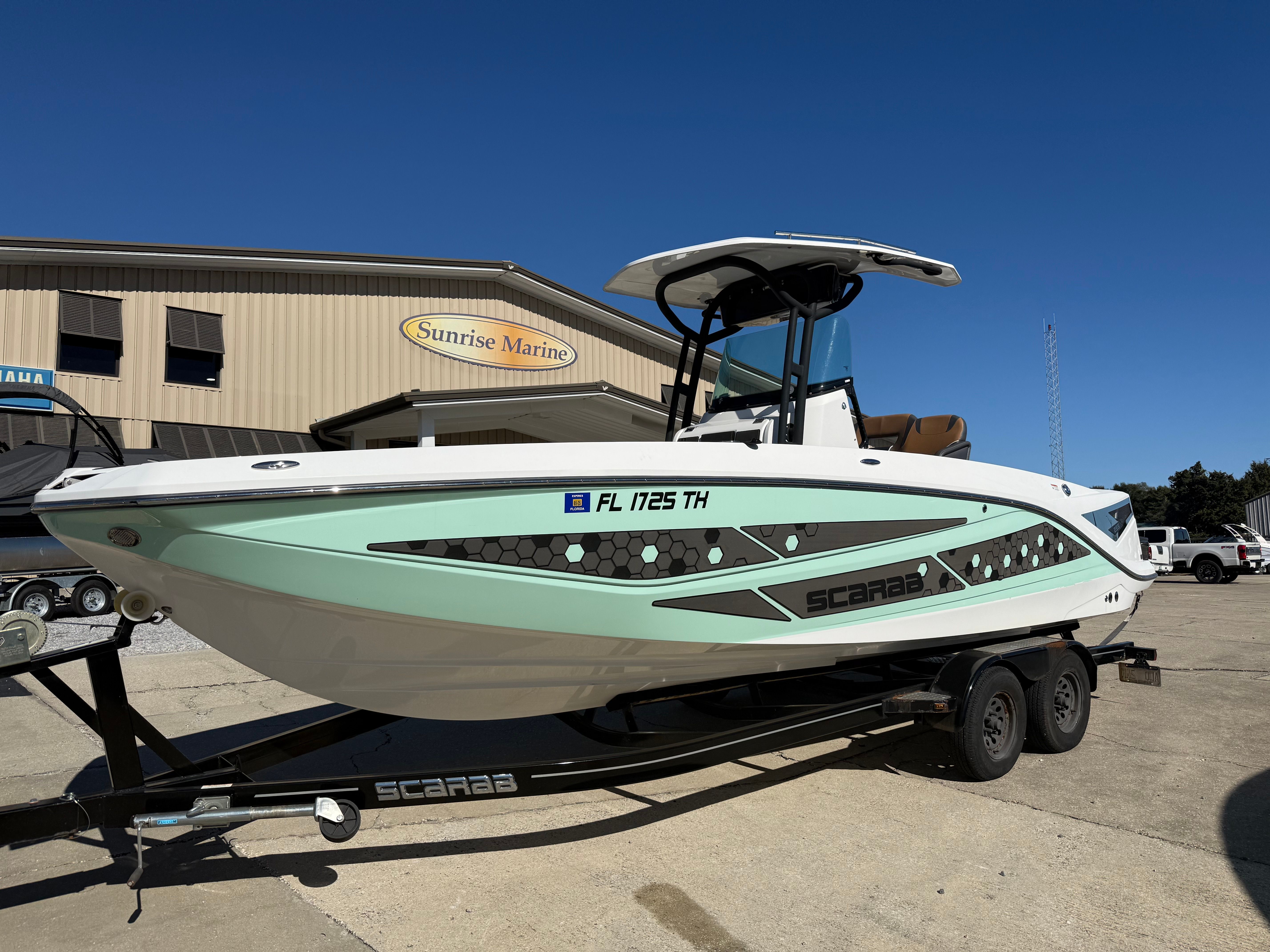 The 2021 Scarab 255 Center Console is a 25-foot vessel that perfectly balances size and maneuverability. As a used boat in excellent condition, it offers remarkable value for those seeking a high-quality center console boat for sale. With its sleek lines, modern design, and robust construction, the Scarab 255 stands out on the water and promises years of dependable service. This model is ideal for boaters who want a vessel that is both spacious enough for group outings and agile enough for solo excursions.