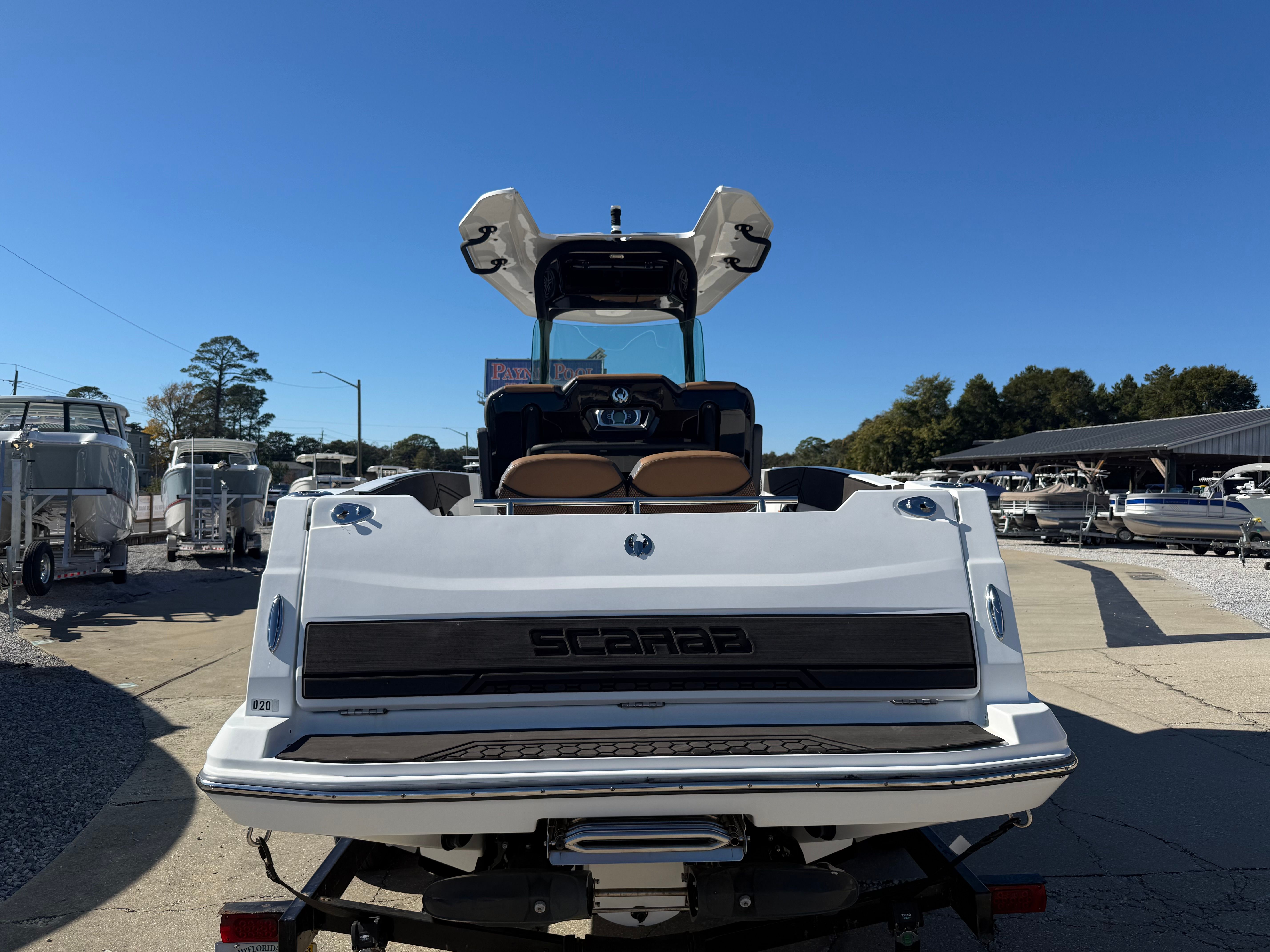 The 2021 Scarab 255 Center Console is thoughtfully designed with features that enhance both functionality and comfort. Its center console layout maximizes deck space, allowing for easy movement and unobstructed access to all areas of the boat. The open design is perfect for anglers who need room to cast and maneuver, as well as families and friends who want to relax and socialize on the water.The Scarab 255’s helm is ergonomically arranged, providing intuitive control and excellent visibility. The spacious bow and aft seating areas offer plenty of room for passengers to stretch out and enjoy the ride. Ample storage compartments are integrated throughout the boat, ensuring that gear, safety equipment, and personal items are always within reach yet neatly stowed away.