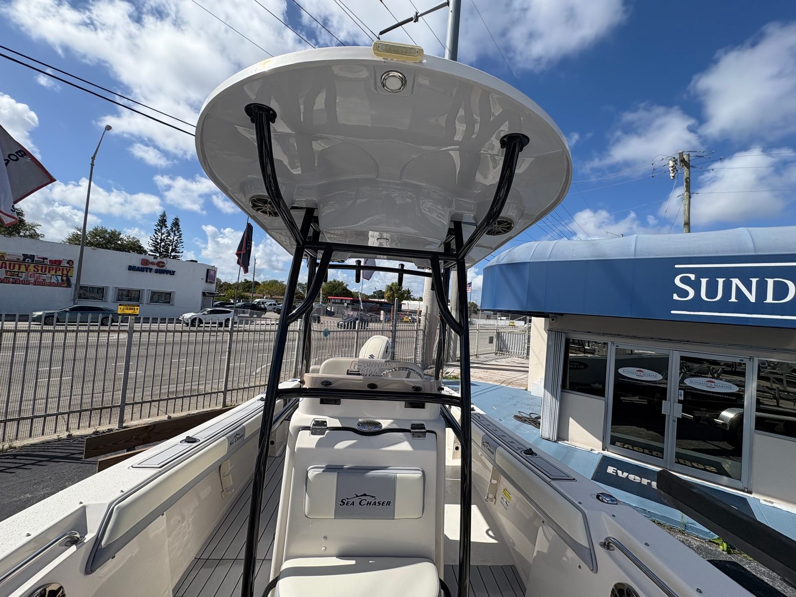 Built by Carolina Skiff, the 2019 Sea Chaser 22 HFC (Hybrid Fish and Cruise) is designed to perfectly balance serious angling capabilities with family-friendly comfort. Whether you're pushing offshore for dolphin, anchoring up at the local sandbars, or taking a sunset cruise down the Intracoastal, this 21' 9" center console handles it all.