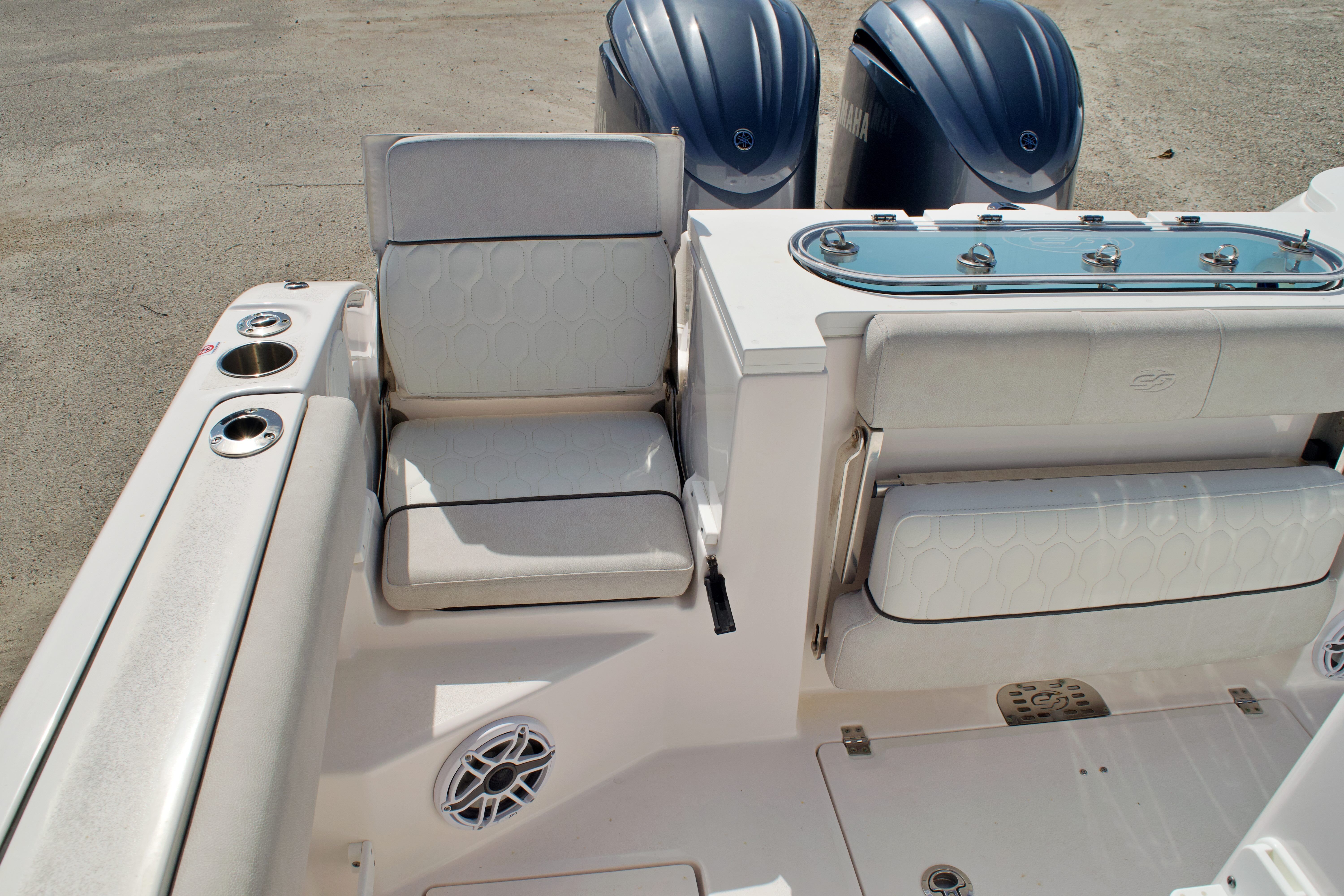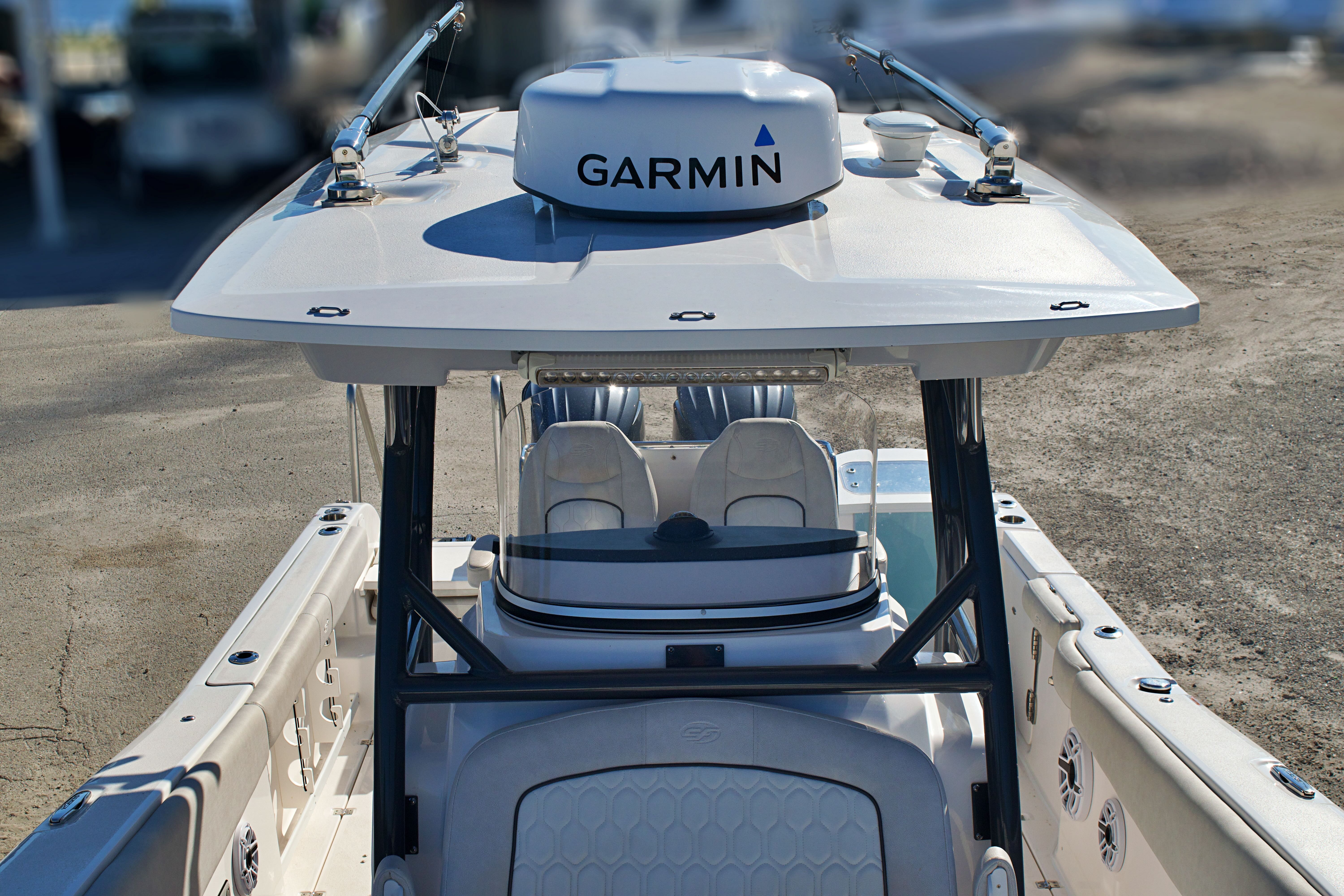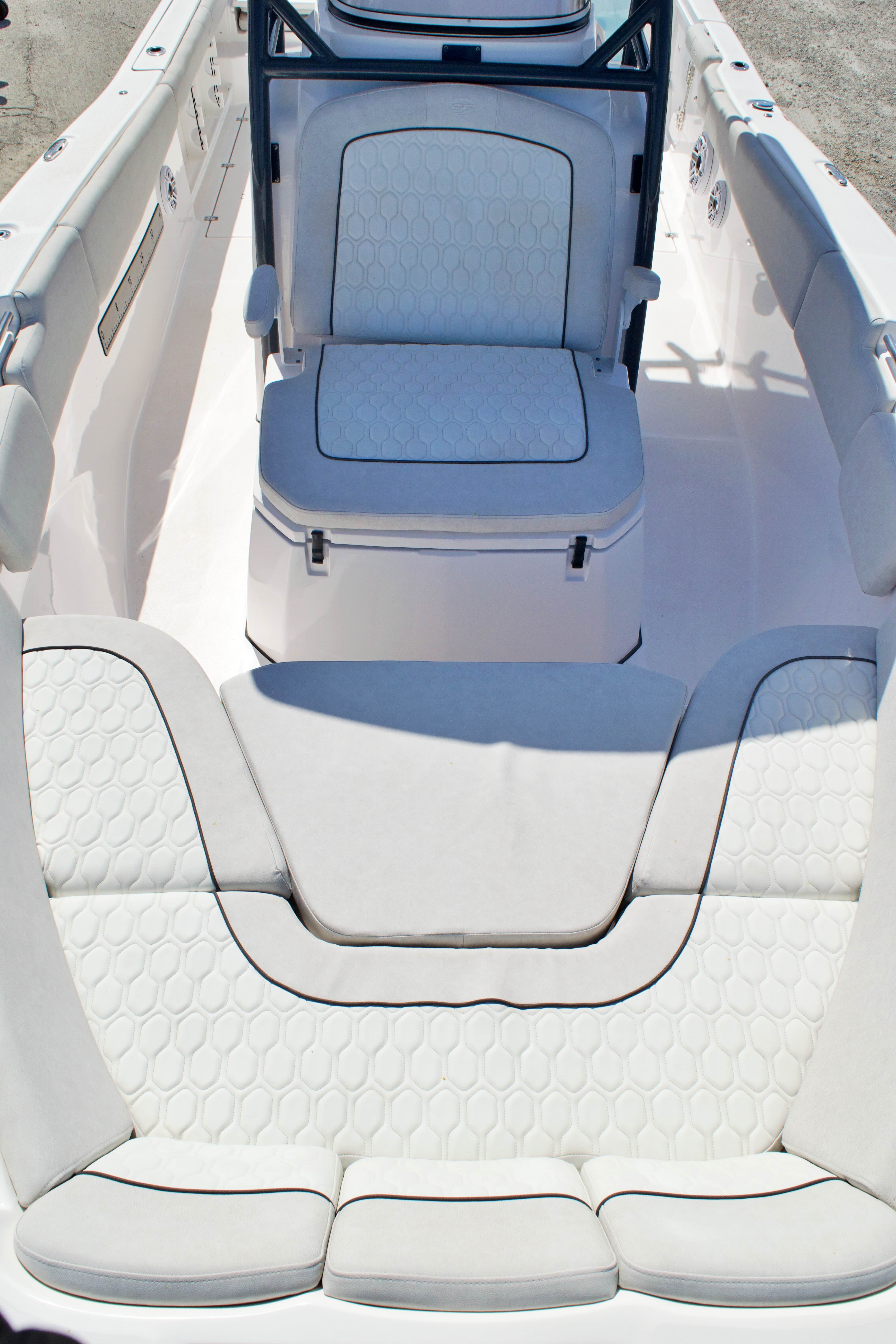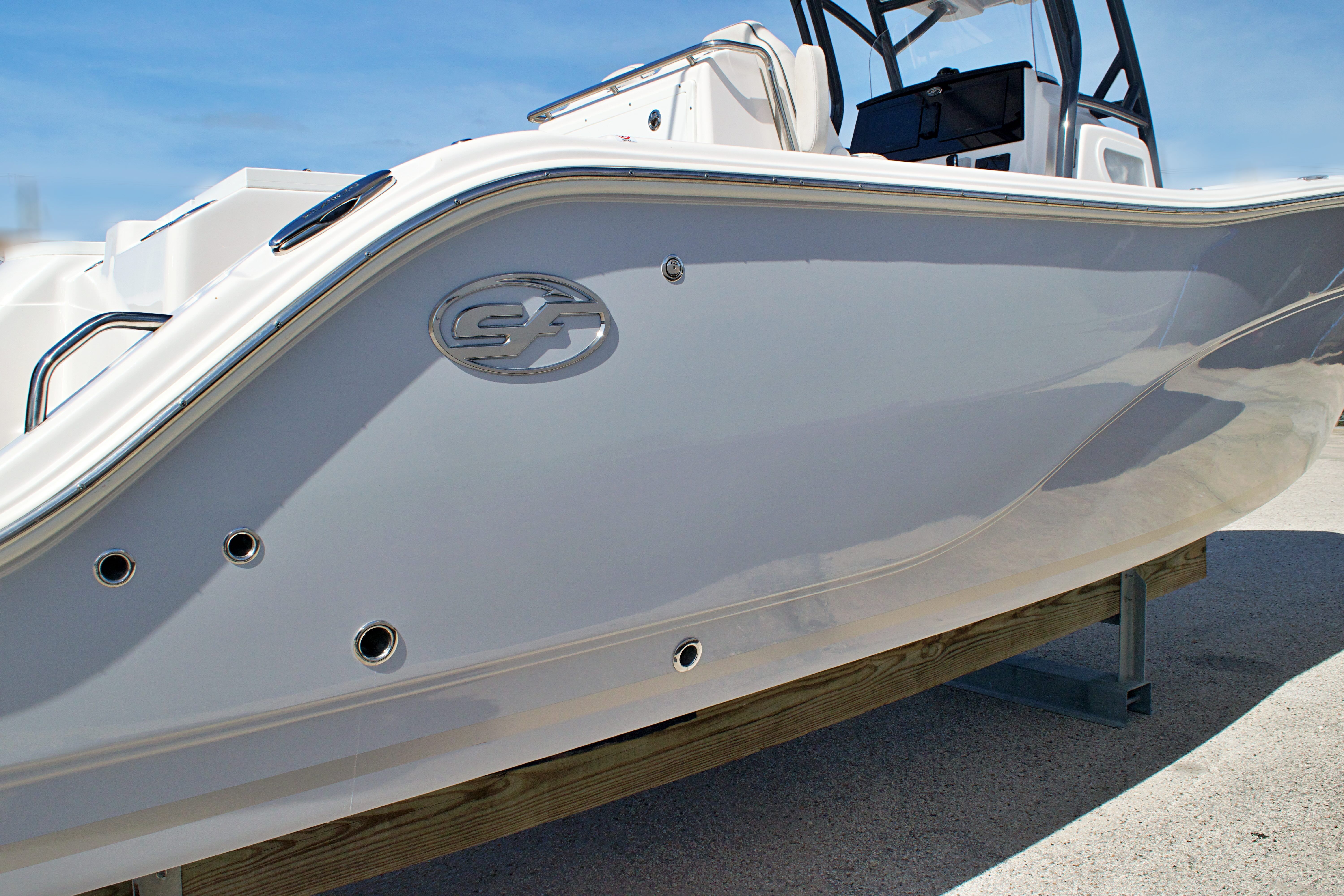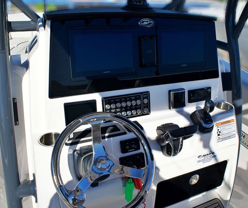 Features and Specifications: The Sea Fox 288 Commander is packed with features designed to enhance your time on the water. Its spacious center console layout provides ample room for movement, making it easy to transition from fishing to entertaining. The helm is ergonomically designed for comfort and control, with intuitive instrumentation and easy access to all controls. The 28-foot length offers generous deck space, perfect for casting lines, lounging in the sun, or hosting friends and family.Special features on this model include a robust twin-engine configuration, which not only boosts performance but also adds a layer of safety for offshore excursions. The boat’s modern design incorporates high-quality materials and attention to detail, ensuring durability and a premium feel throughout. Storage compartments are thoughtfully placed to keep gear organized and out of the way, while the center console provides protection from the elements and a commanding view of your surroundings.
