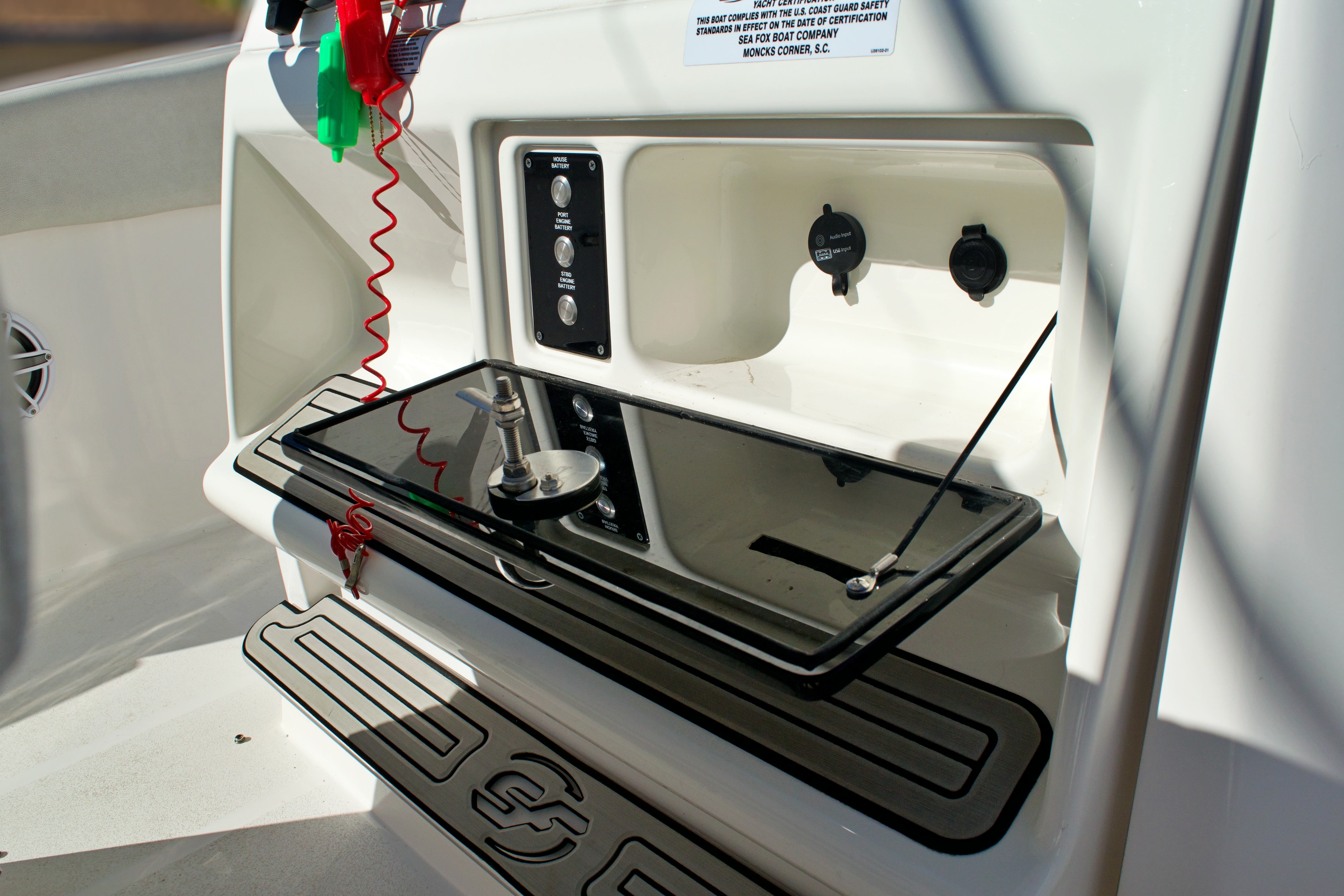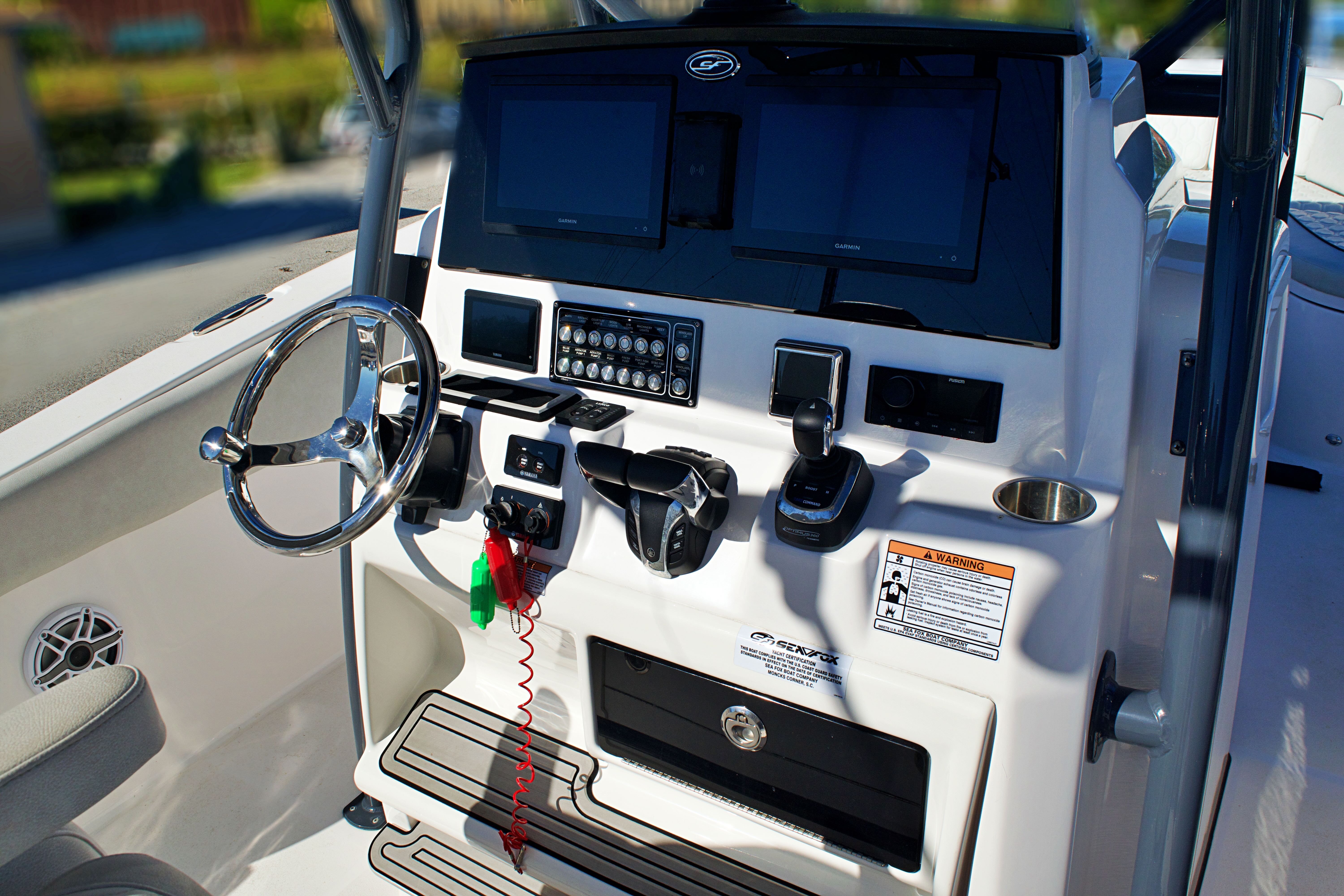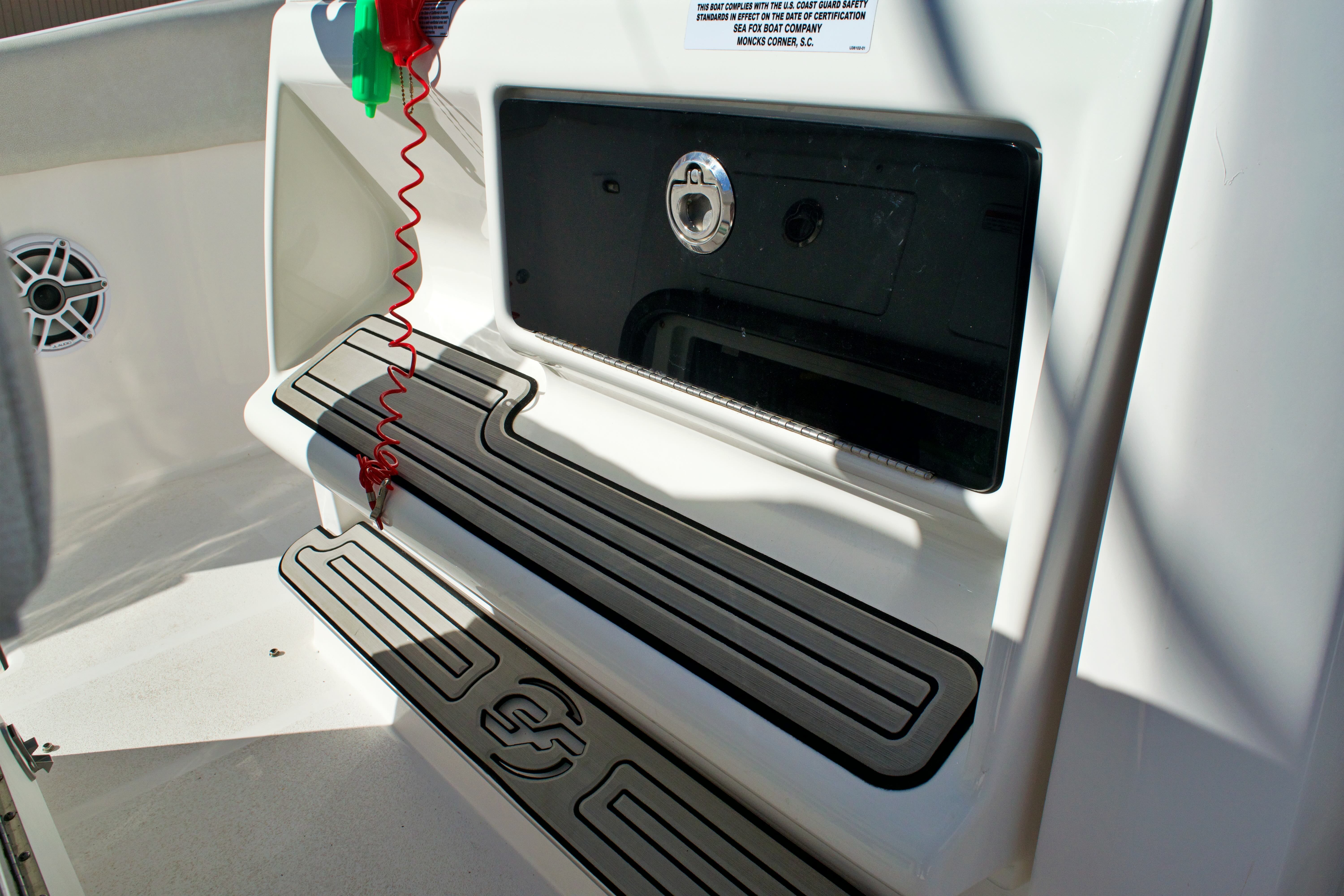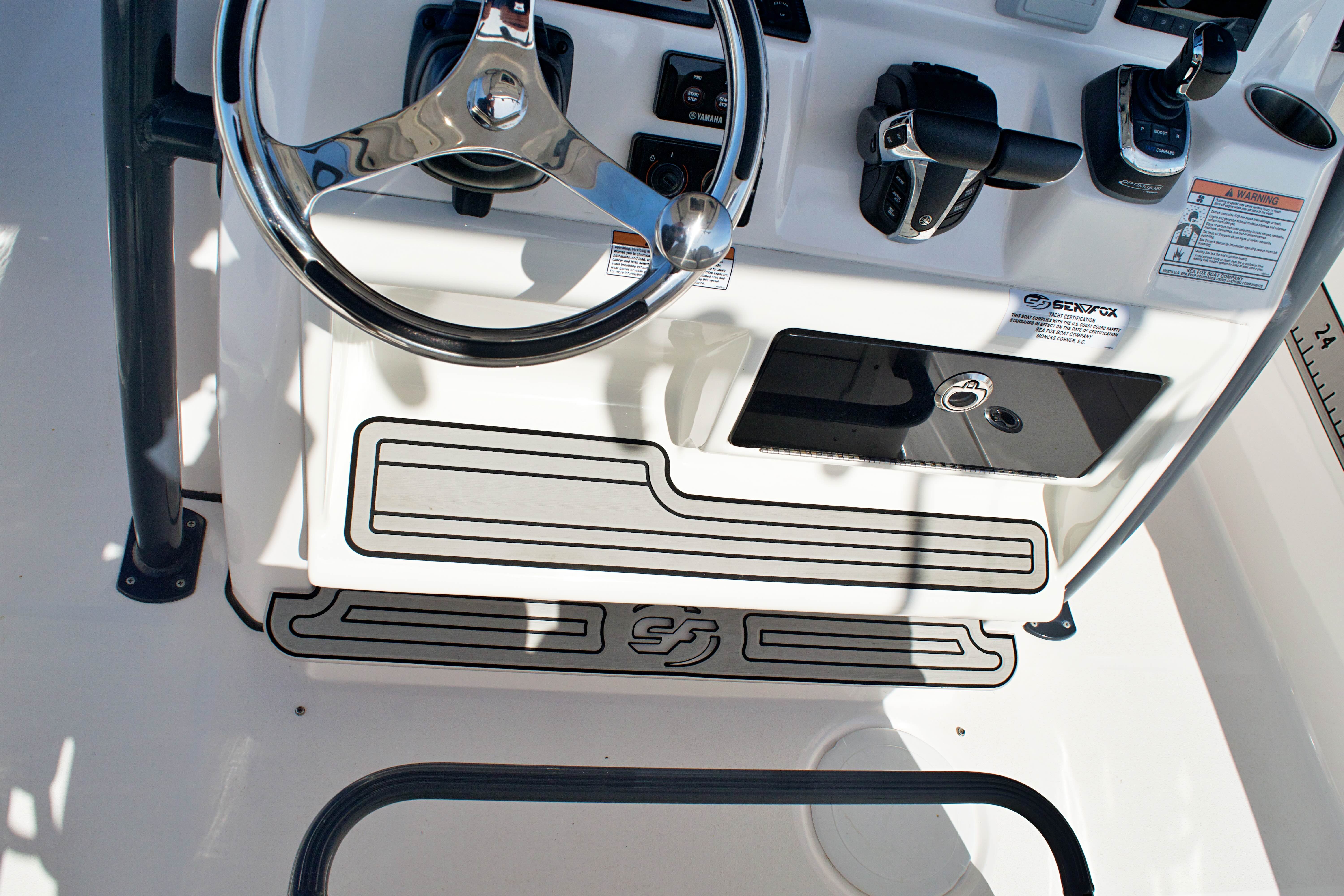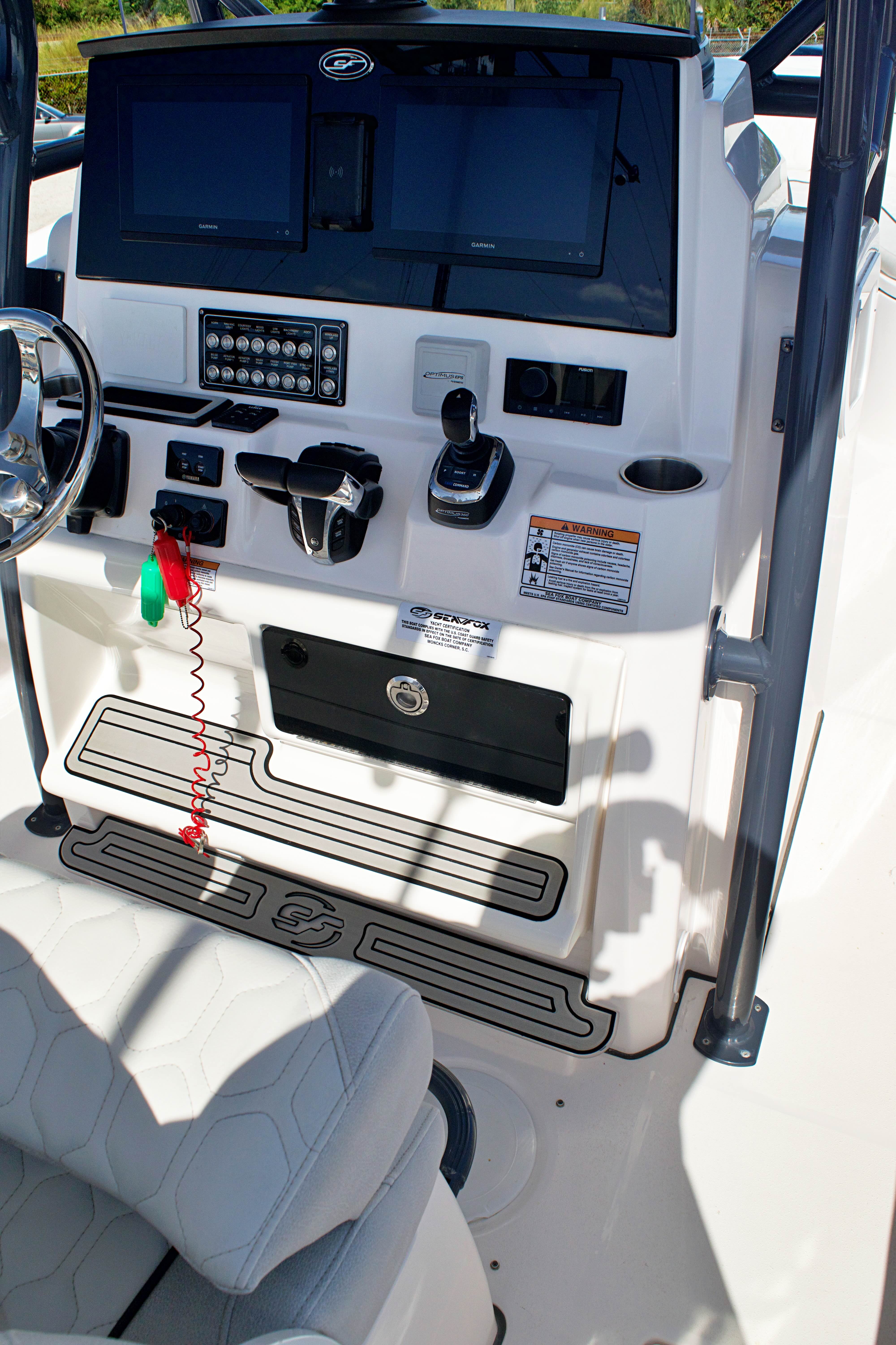 Utility: Practicality is at the heart of the Sea Fox 288 Commander’s design. The boat’s ample storage ensures that all your gear, supplies, and personal items have a dedicated space, keeping the deck clutter-free and organized. Docking is made easier by the responsive twin engines, allowing for precise maneuvering in tight spaces. Fuel efficiency is a hallmark of Sea Fox engineering, so you can spend more time on the water and less time at the pump.The center console layout also provides excellent visibility and protection from the elements, making it a great choice for both sunny days and unexpected weather. Whether you’re heading out for a quick fishing trip or planning a full day of boating, the Sea Fox 288 Commander adapts to your needs, offering comfort, convenience, and reliability.