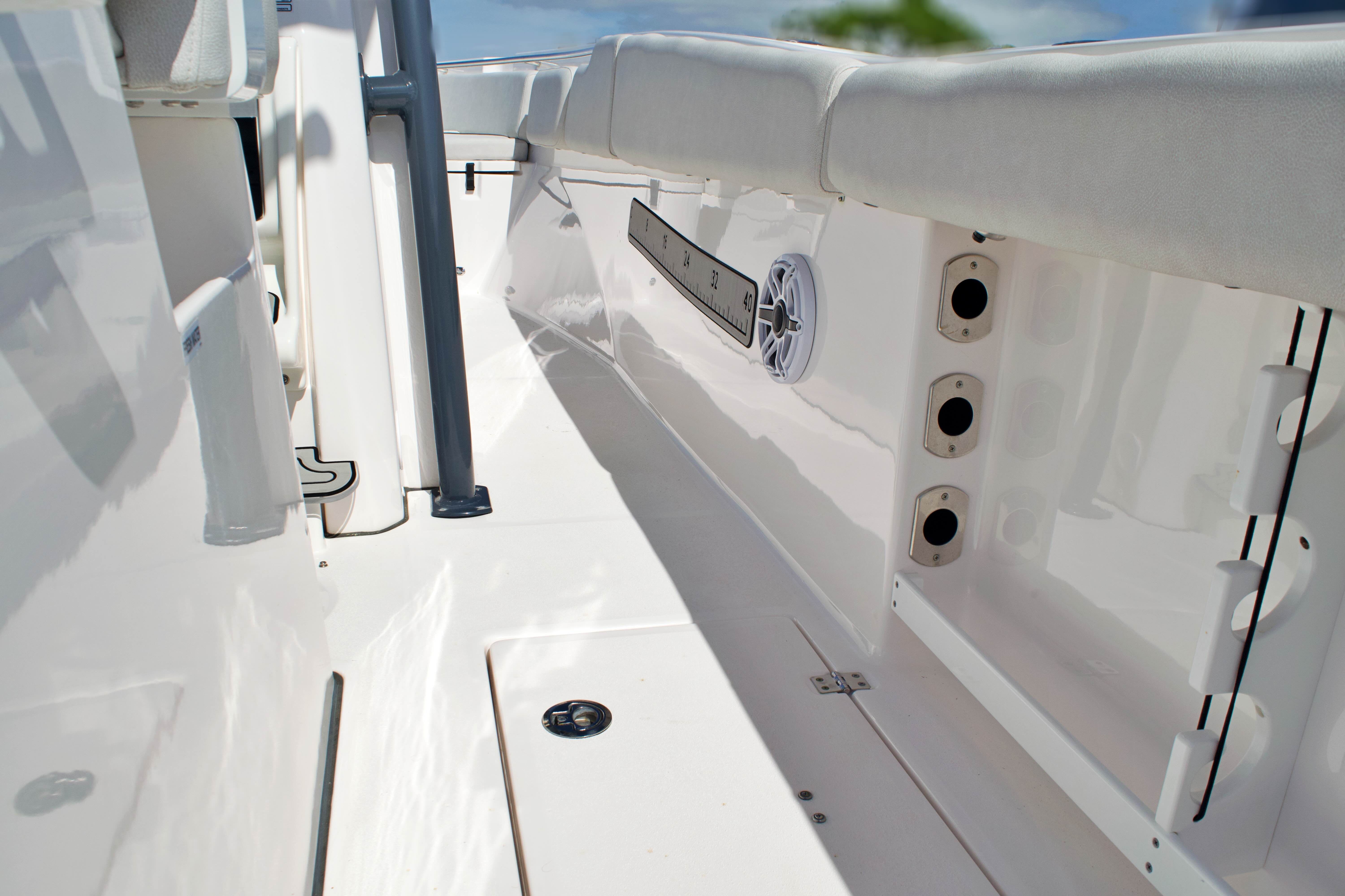 Performance: Under the hood, the 288 Commander boasts twin engines delivering a combined 600 horsepower. This impressive power ensures smooth acceleration, reliable cruising, and the ability to tackle a variety of water conditions with confidence. Whether you’re heading offshore for a day of fishing or cruising along the coastline with family and friends, the dual-engine setup provides enhanced maneuverability, stability, and peace of mind. With only 156 engine hours, these engines are primed for many more seasons of reliable performance, making this Center Console boat for sale a smart investment for those who value both speed and efficiency.