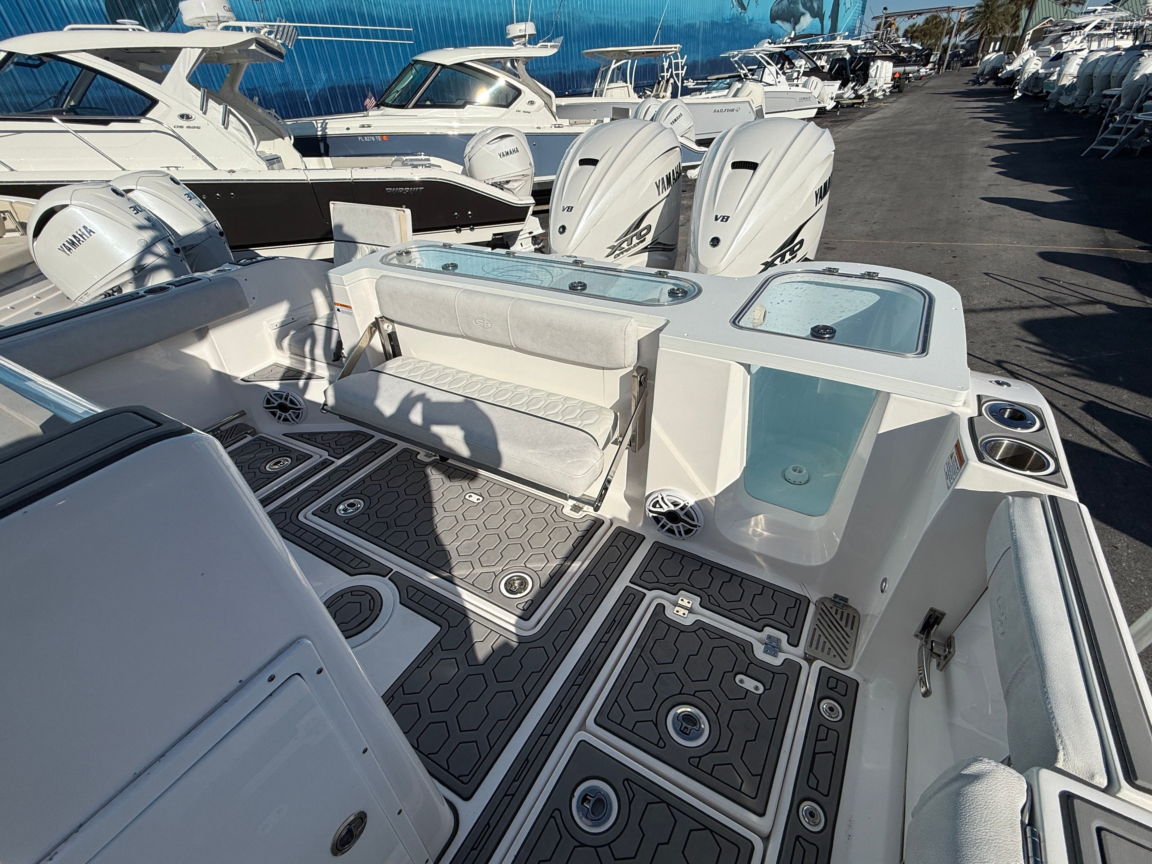 Under the hood, the Sea Fox 328 Commander is powered by twin engines, delivering a combined 850 horsepower. This impressive power setup ensures that you have the speed and agility needed for a variety of activities, from high-speed runs to leisurely cruises. The dual-engine configuration not only enhances performance but also provides added reliability and peace of mind when venturing farther from shore. Whether you are chasing the horizon or navigating tight marinas, the responsive handling and robust acceleration of this center console boat make every outing a memorable experience.