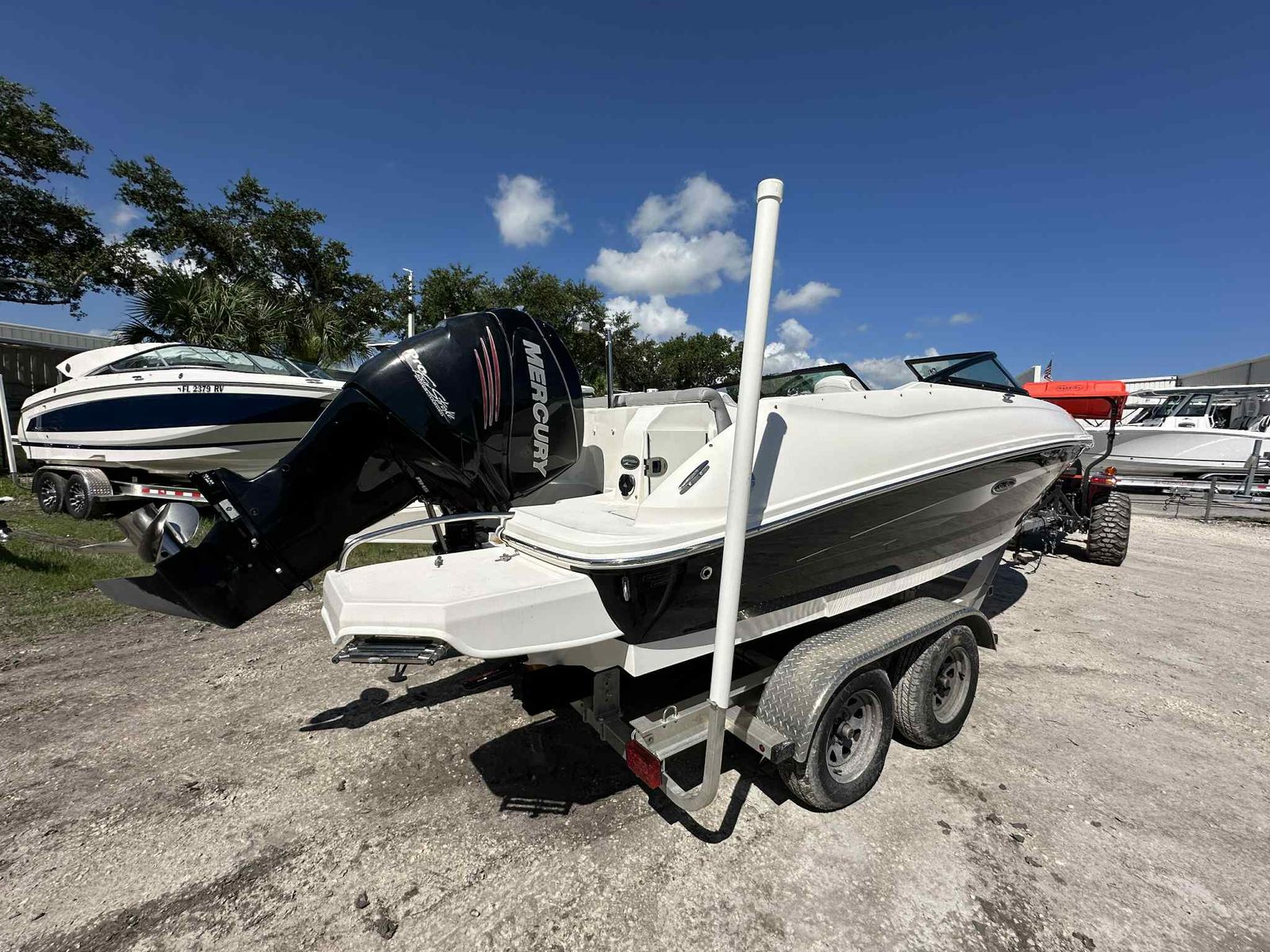 This Sea Ray boat for sale is as versatile as it is stylish, making it suitable for a wide range of activities. The generous storage compartments are perfect for stowing life jackets, water toys, and picnic supplies, keeping the deck clutter-free and ready for fun. The swim platform and easy boarding ladder make it simple to enjoy swimming, snorkeling, or just lounging by the water’s edge. When it’s time to dock, the SDX 220’s responsive handling and compact footprint make maneuvering in tight spaces a breeze.Fuel efficiency is another highlight of this bowrider, allowing you to spend more time on the water and less time at the pump. The thoughtful design also makes cleaning and maintenance straightforward, so you can focus on what matters most—enjoying your time on the water.