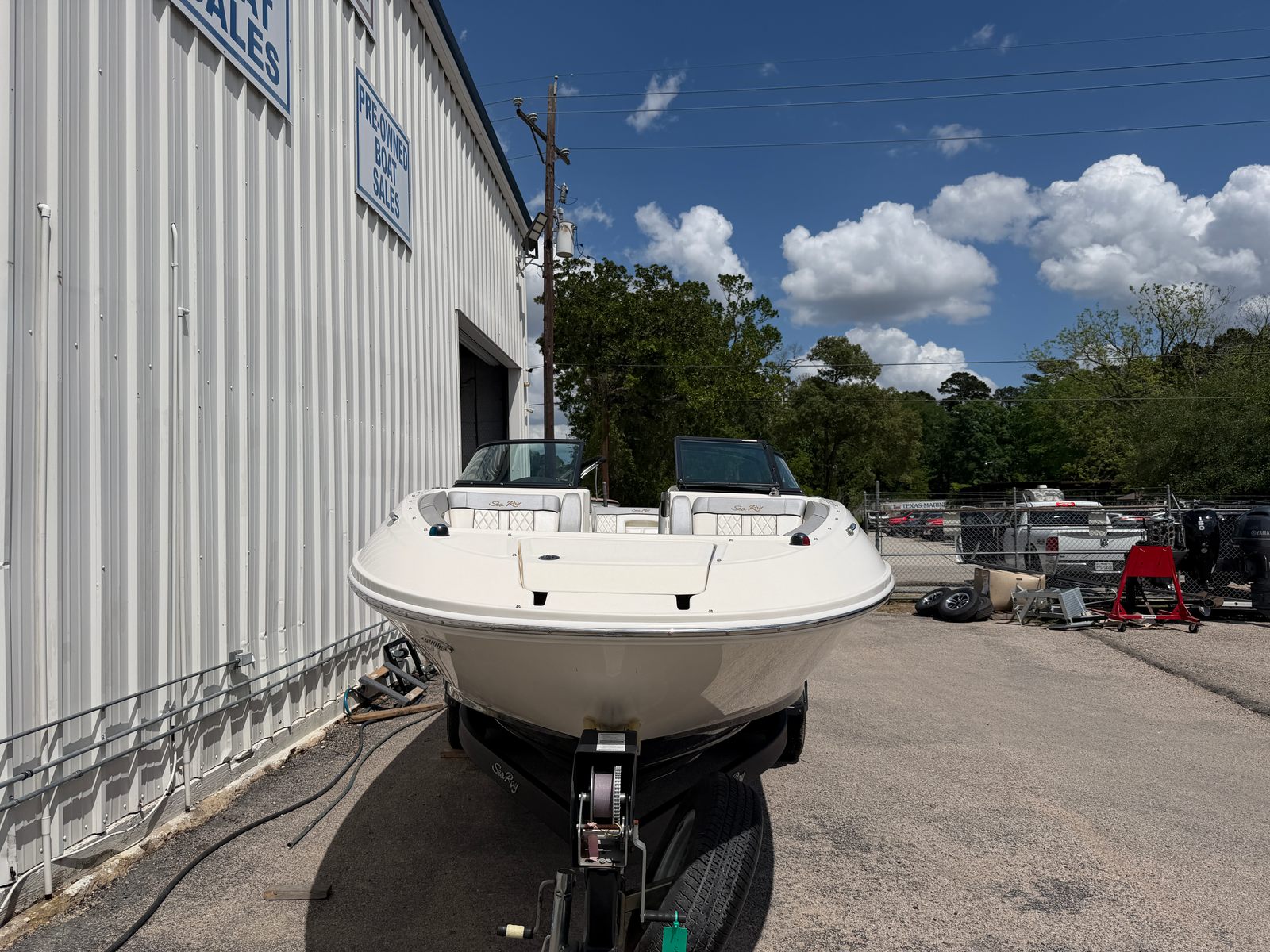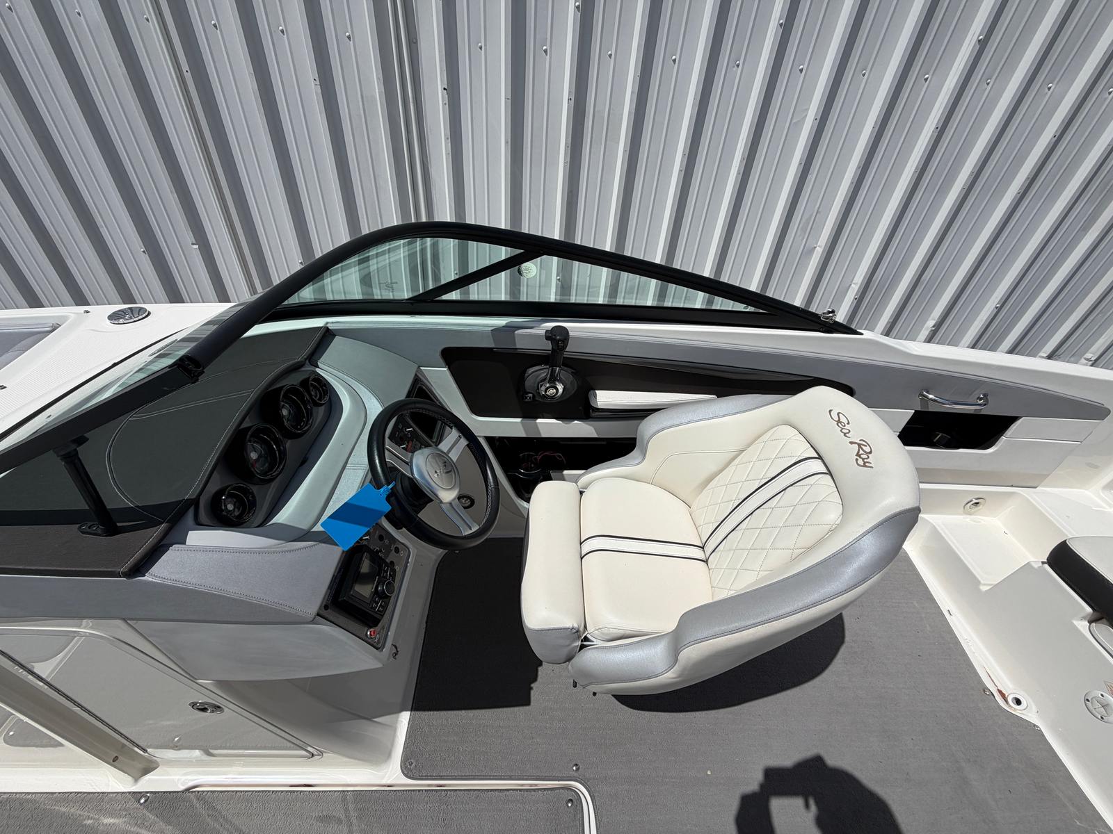 This Sea Ray boat for sale comes loaded with special features designed to enhance your boating experience. The Bimini top provides shade and protection from the sun, allowing you to stay comfortable during long days on the water. The Bluetooth stereo system lets you set the perfect soundtrack for your adventures, whether you’re relaxing or celebrating with friends. A cover helps protect your investment when the boat is not in use, keeping it looking its best season after season. The tandem axle trailer with swing tongue makes transportation and storage a breeze, offering flexibility and convenience for owners who want to explore new waterways. Dual prop technology improves handling and efficiency, while annual service ensures the boat is always ready for action.
