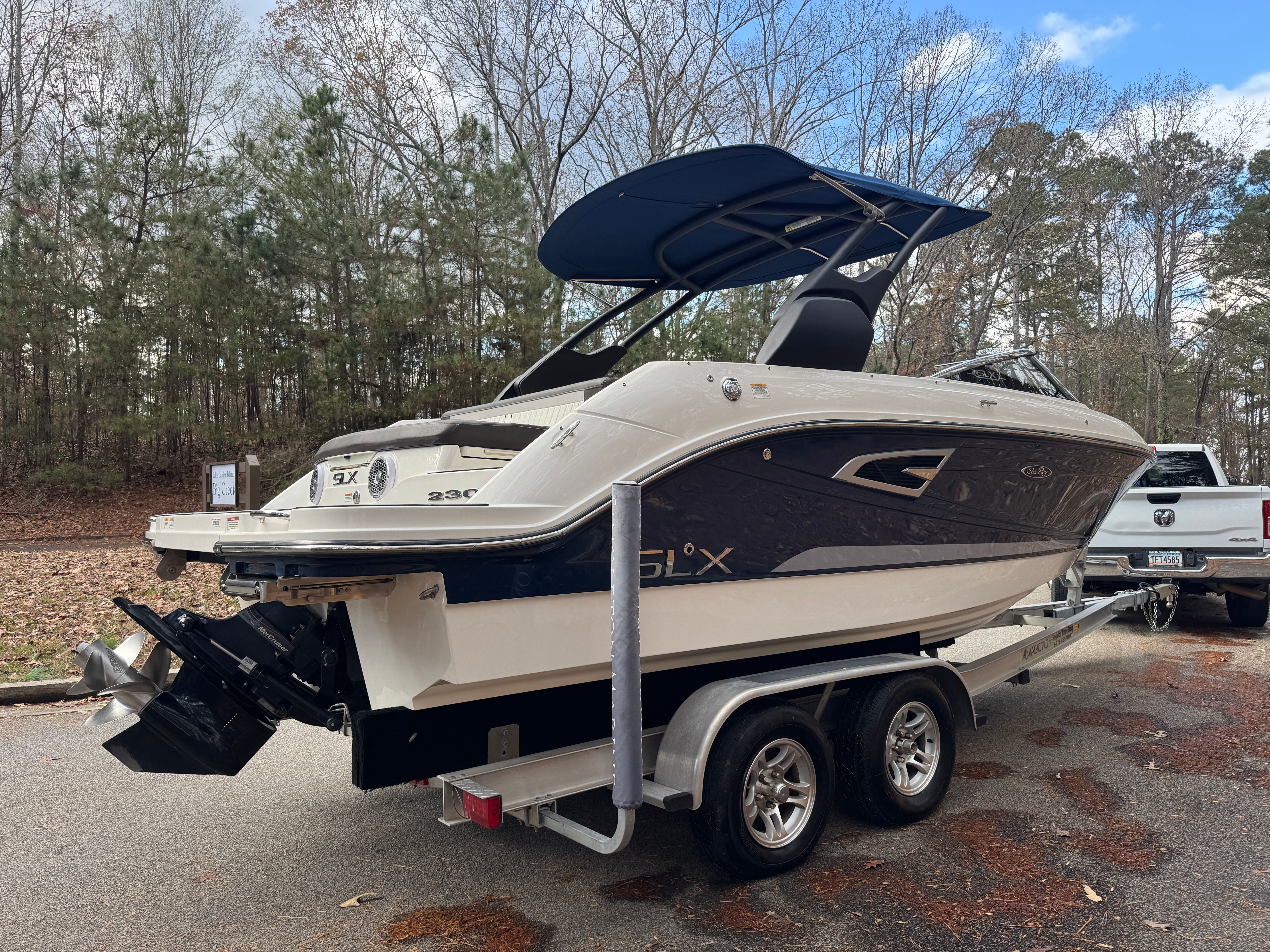 The 2016 Sea Ray 230 SLX is a 23-foot Bowrider that perfectly balances sporty aesthetics with practical functionality. With its spacious layout and modern lines, this used Sea Ray boat for sale is designed to impress both on the dock and out on the open water. The 230 SLX’s length provides ample room for passengers to relax, socialize, and enjoy the ride, making it an ideal vessel for those who value comfort and style. As a used boat, it has been well cared for, with 230 engine hours that reflect responsible ownership and regular use.
