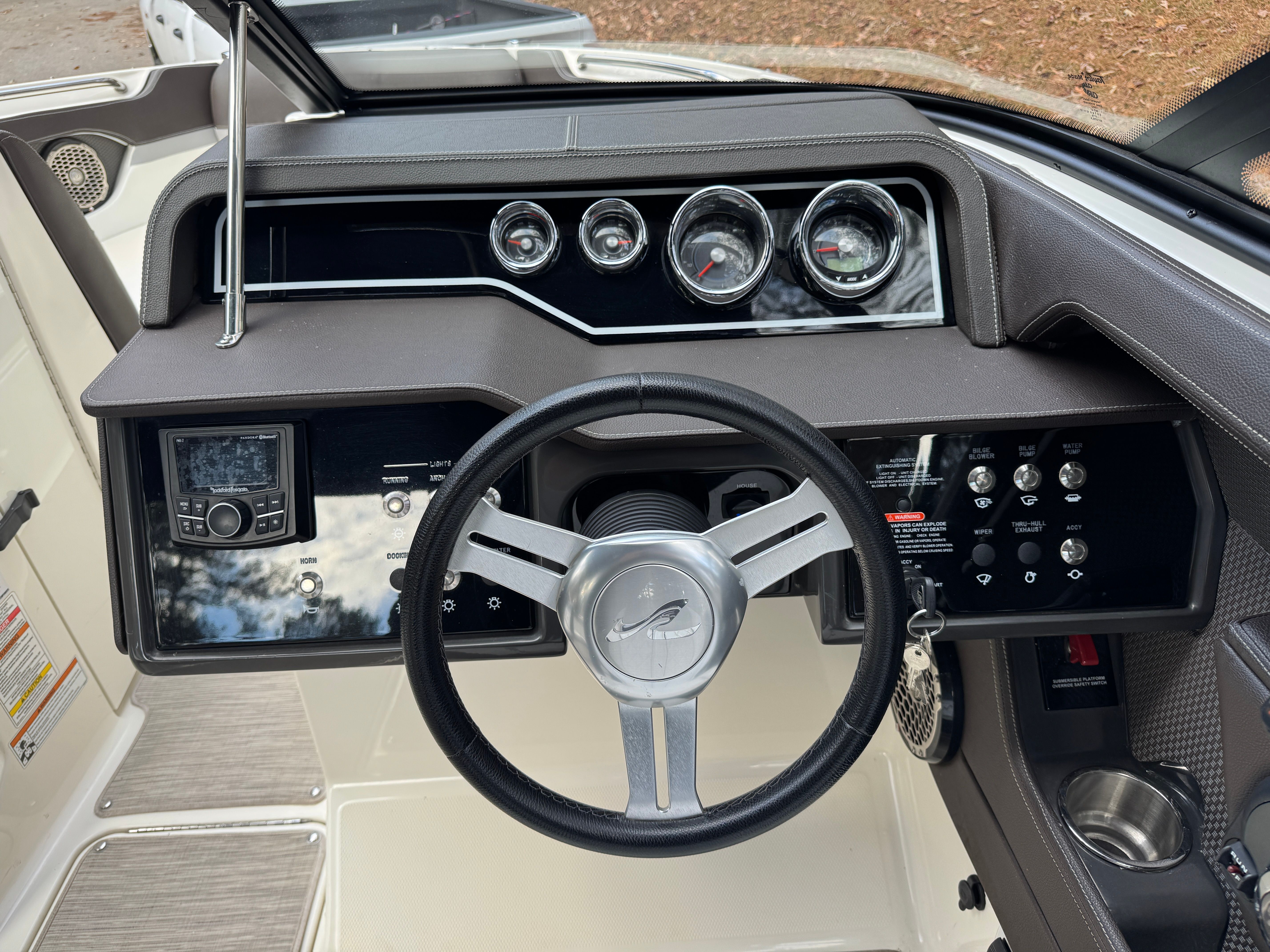 The Sea Ray 230 SLX Bowrider is packed with features that enhance both convenience and enjoyment. Its spacious cockpit layout allows for easy movement and comfortable seating, making it perfect for entertaining guests or spending quality time with family. The ergonomic helm ensures that the captain has everything within reach, while the intuitive controls make piloting the boat a breeze. The 23-foot length provides ample space for lounging, sunbathing, or enjoying a picnic on the water. With a stylish exterior and attention to detail throughout, the 230 SLX offers a premium boating experience.