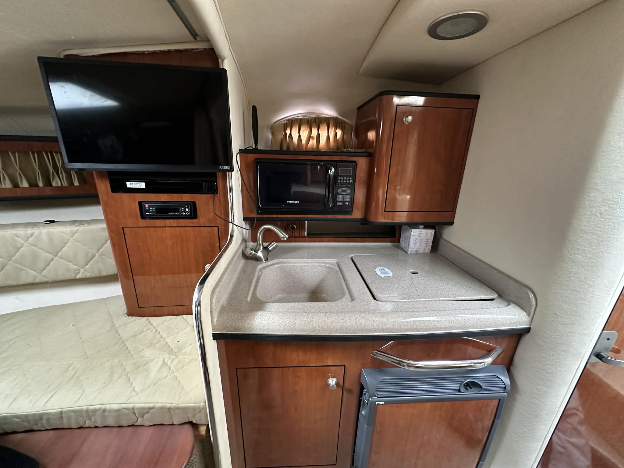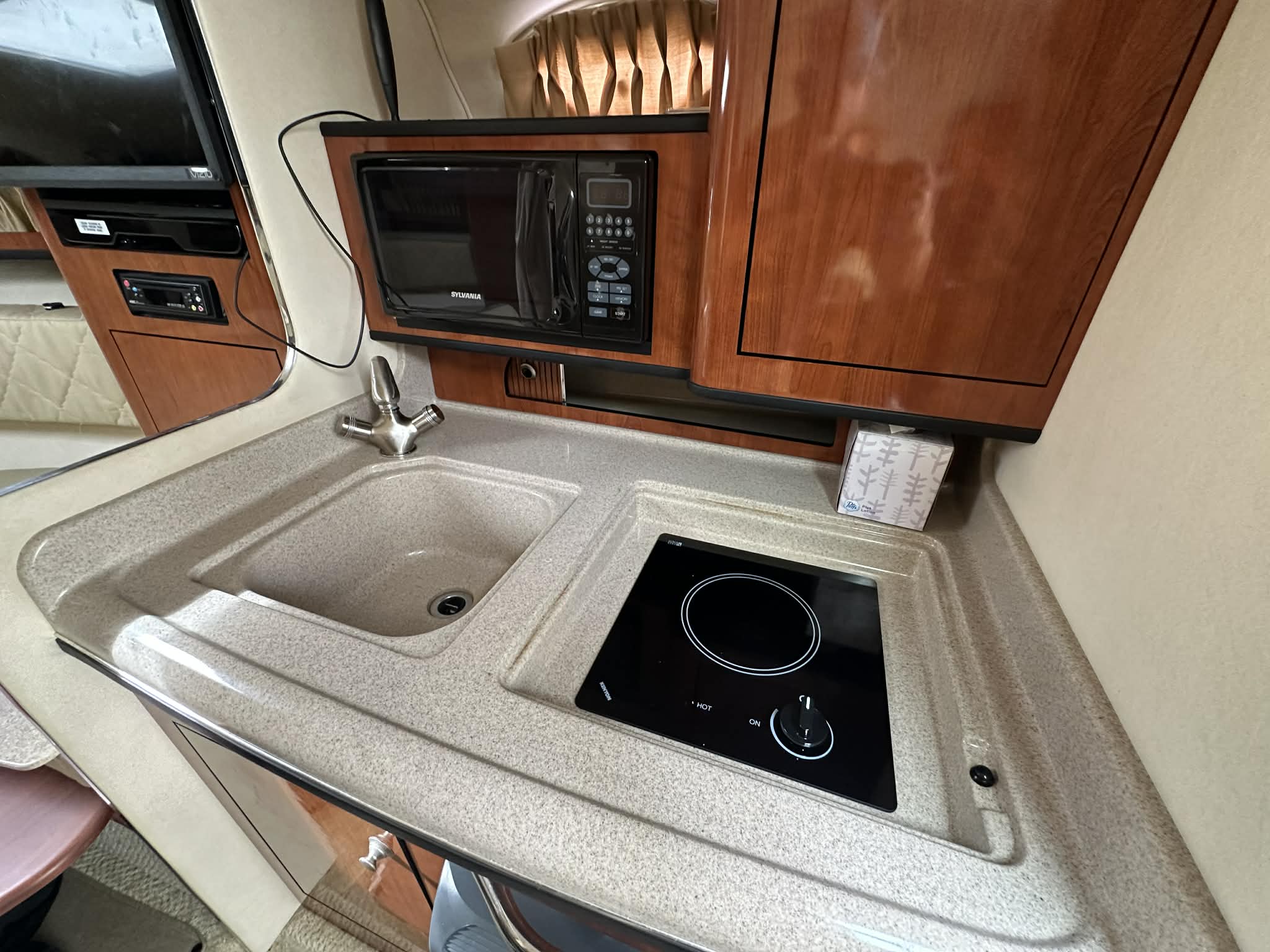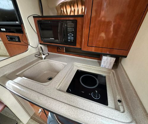 Powering the Sundancer 280 are two robust engines delivering a combined 520 horsepower. This twin-engine setup ensures smooth acceleration, responsive handling, and plenty of power for cruising at higher speeds. Whether you’re navigating open waters or maneuvering into a marina, the Sundancer 280’s performance capabilities make every journey enjoyable and stress-free. The dual engines also provide added peace of mind, offering redundancy and reliability for longer trips or adventurous excursions. With this level of horsepower, you’ll experience the thrill of boating while maintaining control and stability in a variety of conditions.